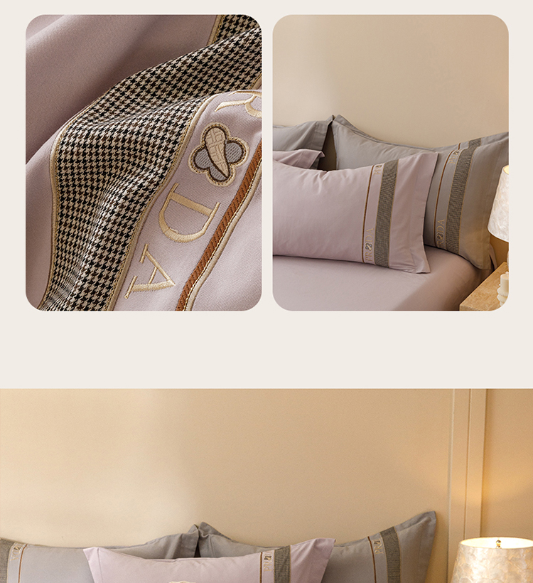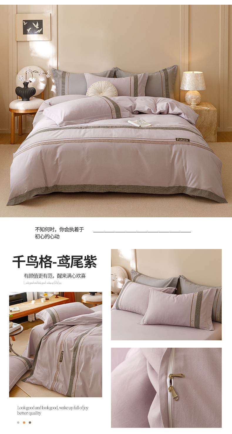 商品名称:2024新款A类云柔棉加密柔顺磨毛四件套千鸟格系列 千鸟格-鸢尾紫