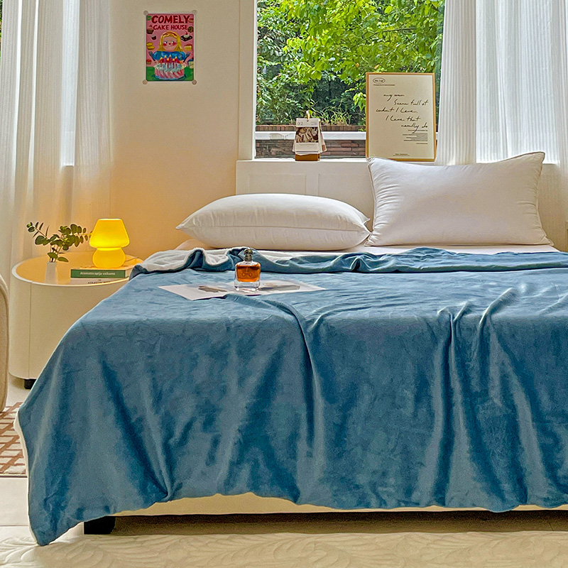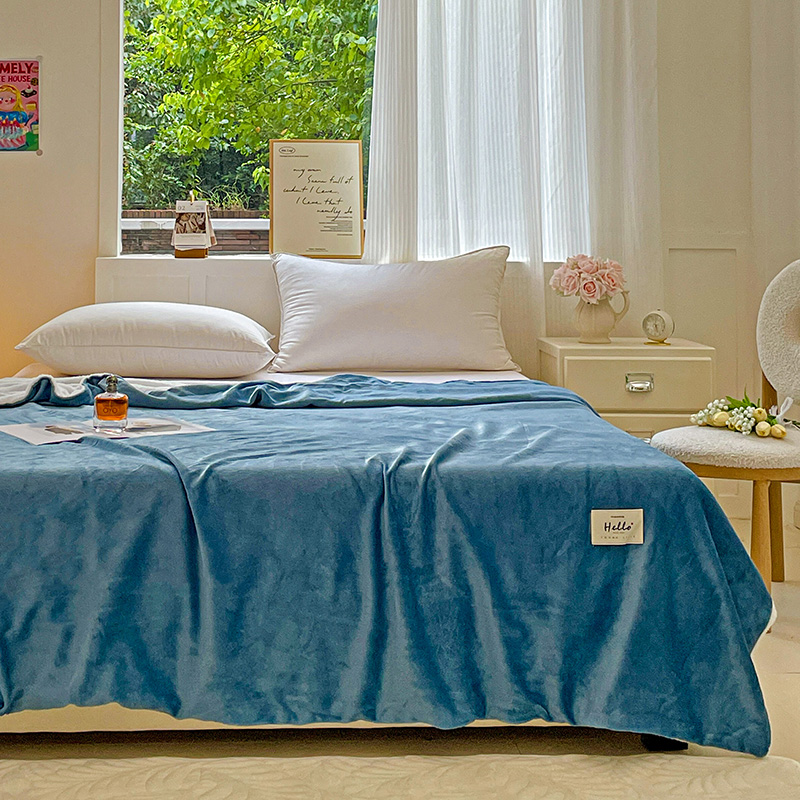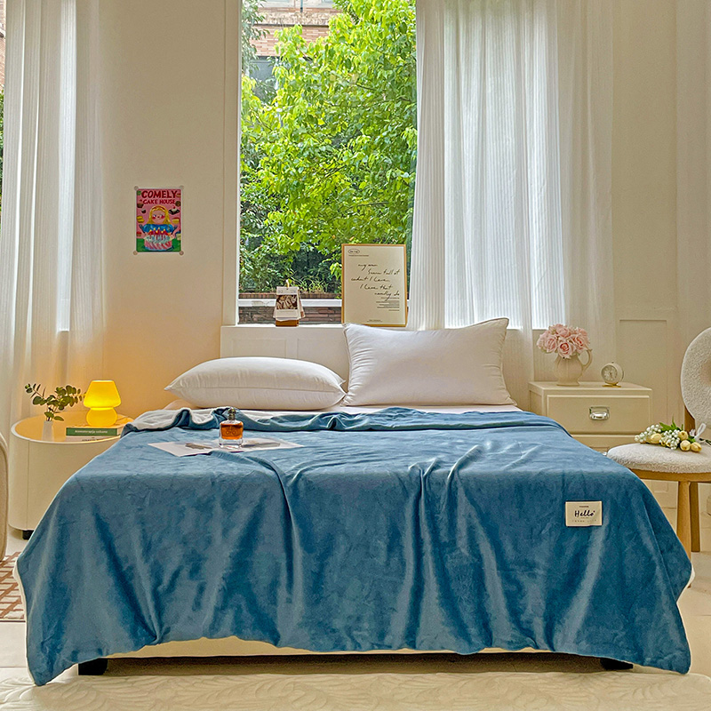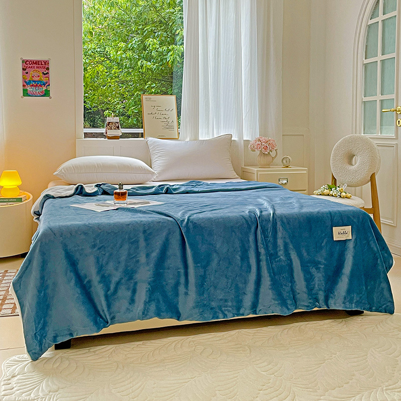 亚龙工厂店 2024新款牛奶绒盖毯被 蓝色