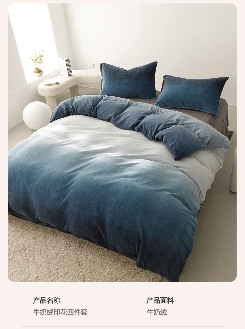 当前位置: 91家纺网 > 商品网购 > 床品套件 > 四件套 > 牛奶绒四件套 > 2025新款小清新双面牛奶绒四件套 渐变蓝