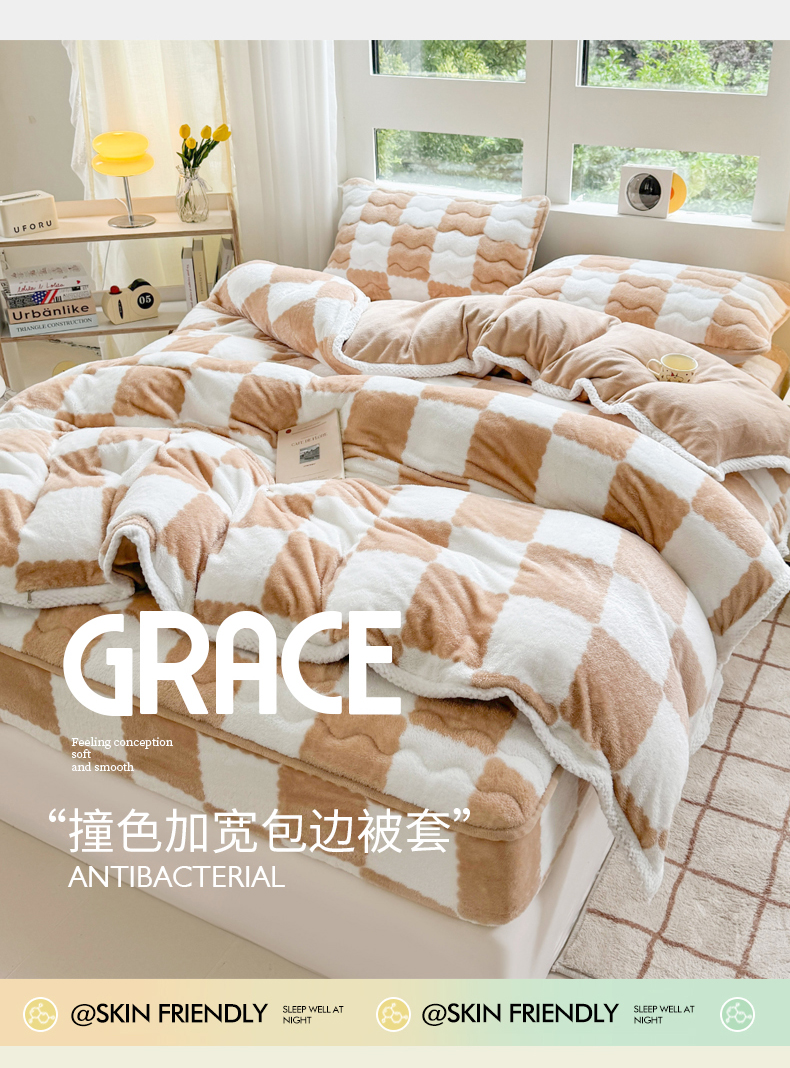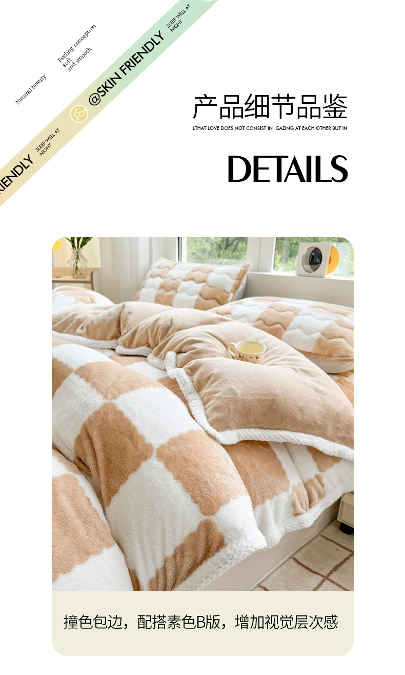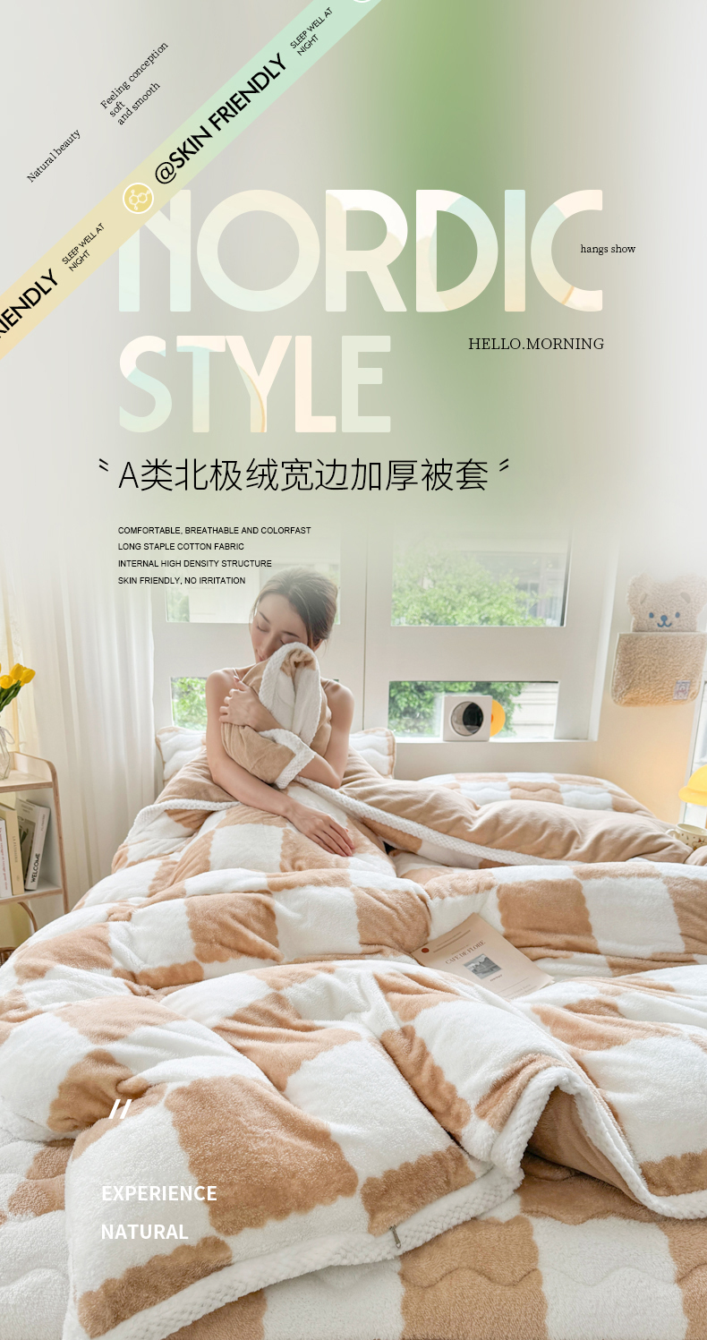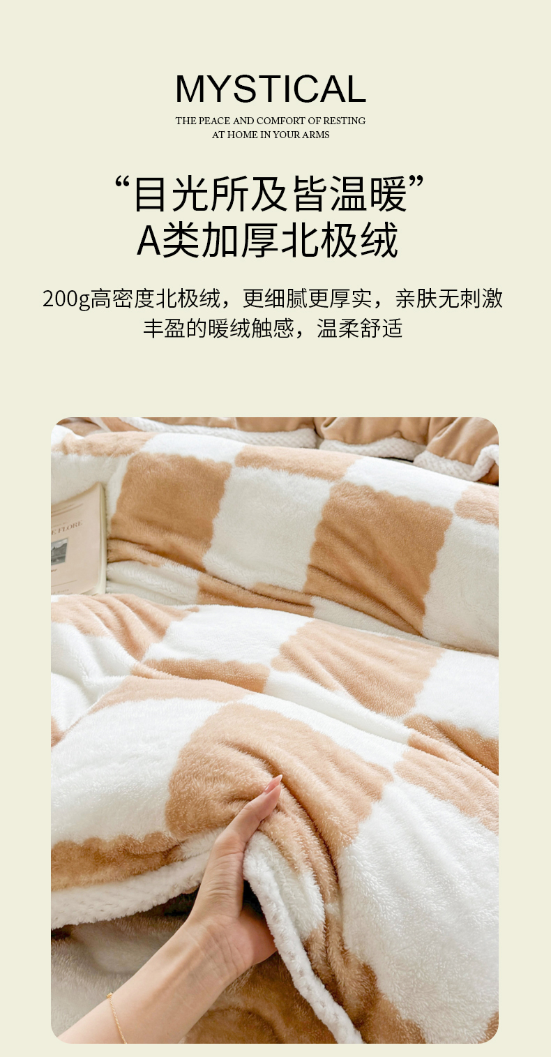 商品名称:2024新款A类北极绒格子-条纹系列宽包边加厚被套(自然光图) 棋盘格-奶咖