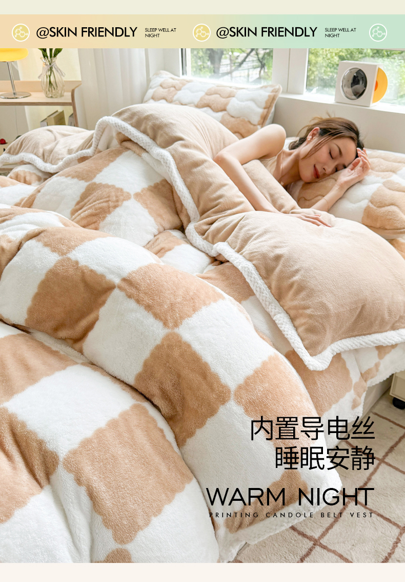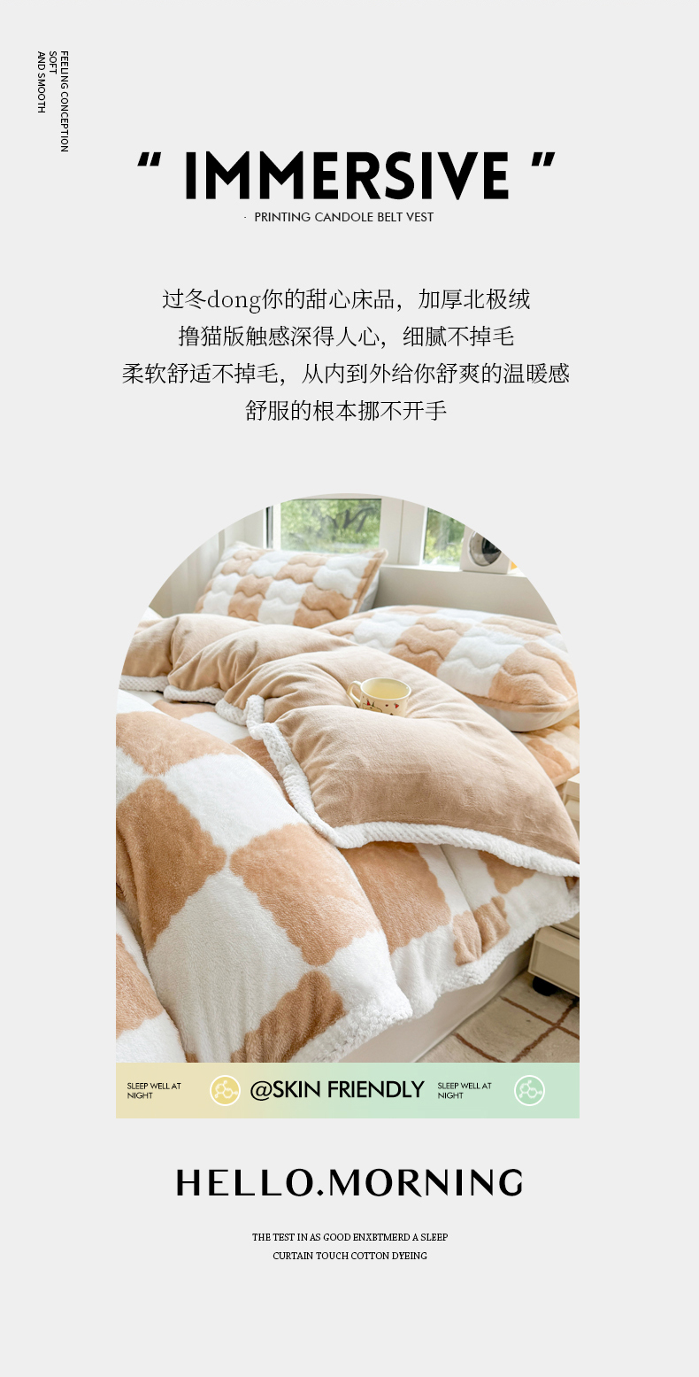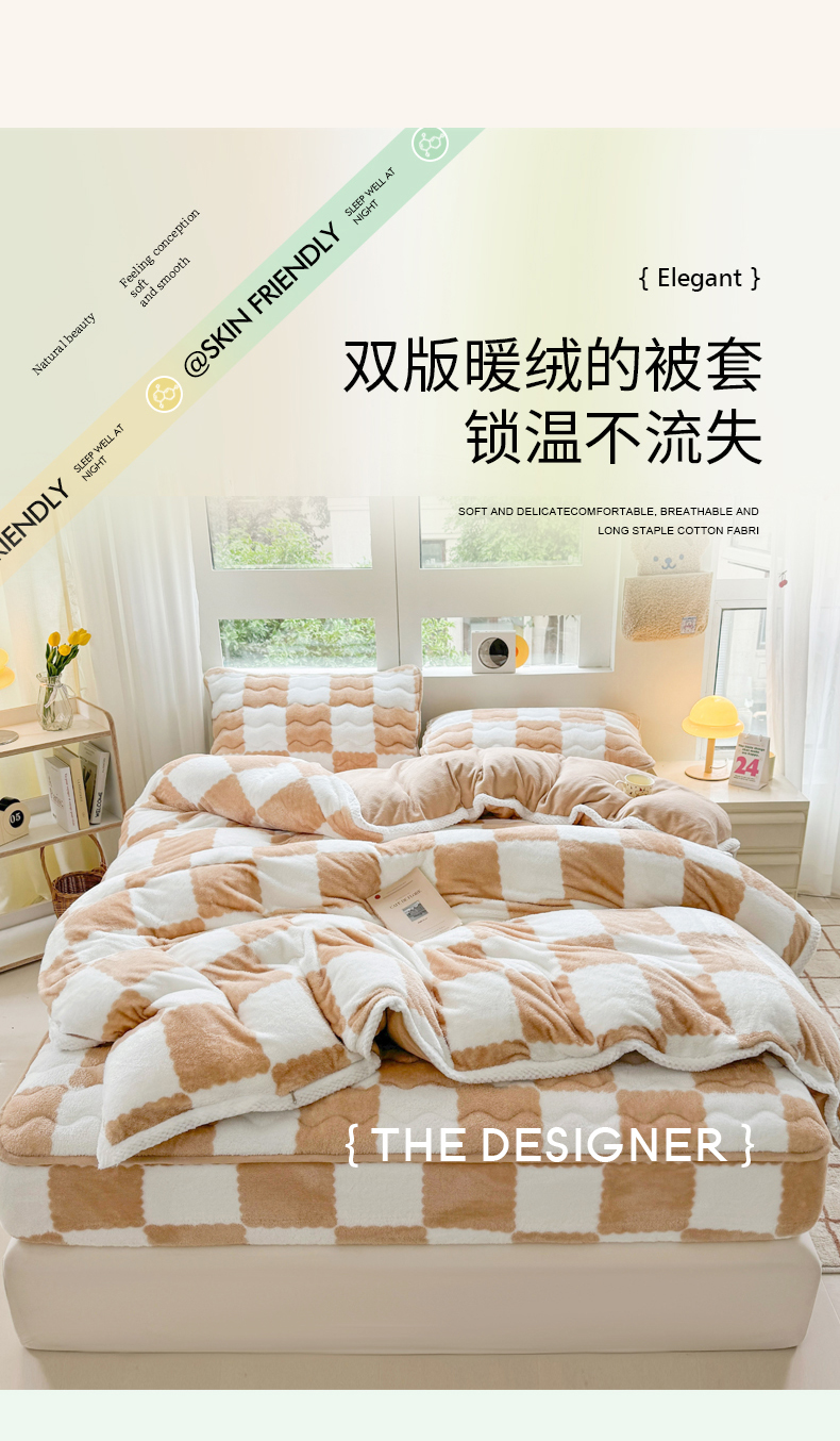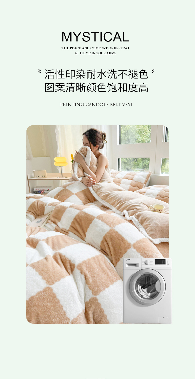 商品名称:2024新款A类北极绒格子-条纹系列宽包边加厚被套(自然光图) 棋盘格-奶咖