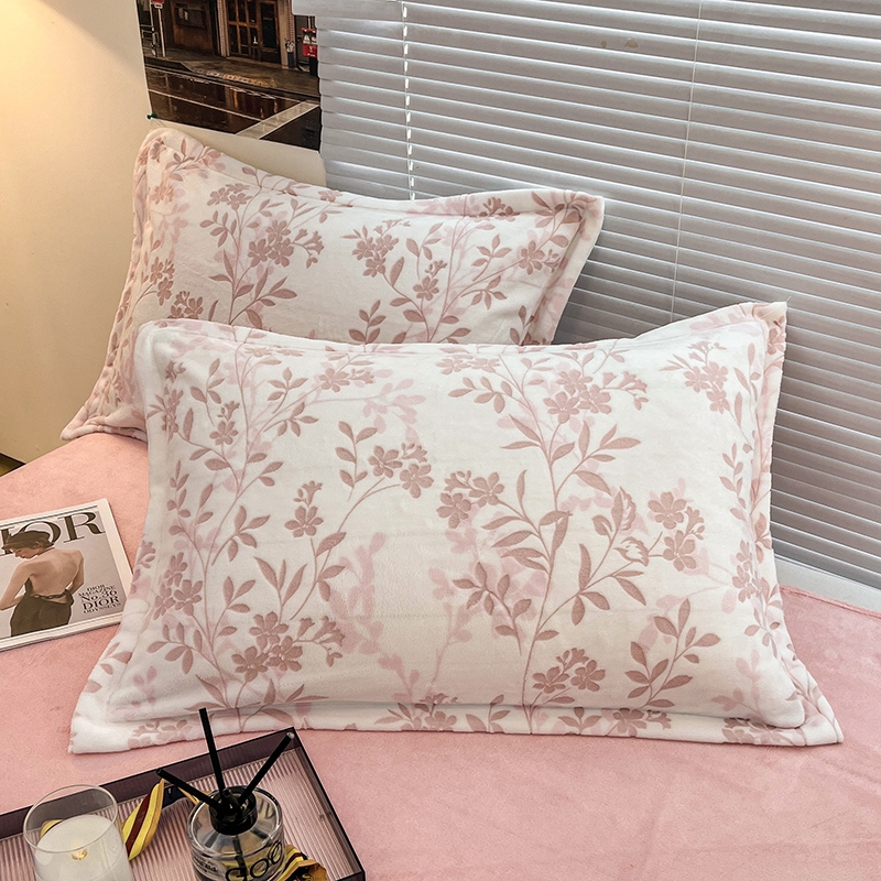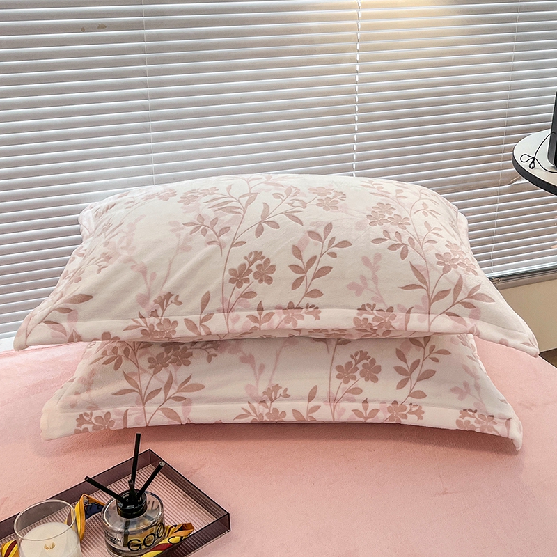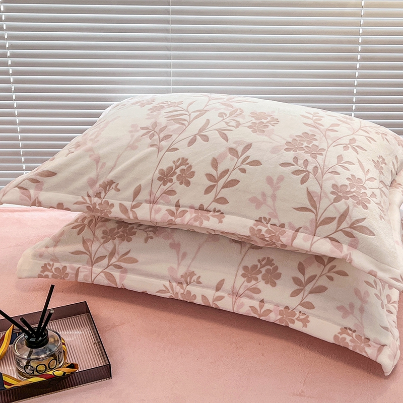 慕尚 2025新款高克重保暖双色雕花绒枕套单件 羽叶-粉