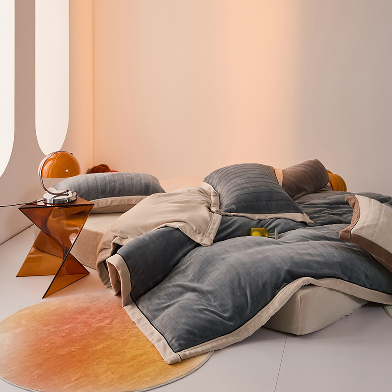 (总)LADYCOCO可可家居 2025新款三开口贡缎夹棉四件套 优易套/U易套 三开口被套,唯一专利发明单位,全球专利布局(控价不低于410元),浅粉+浅灰,浅紫+浅灰,浅灰+卡其