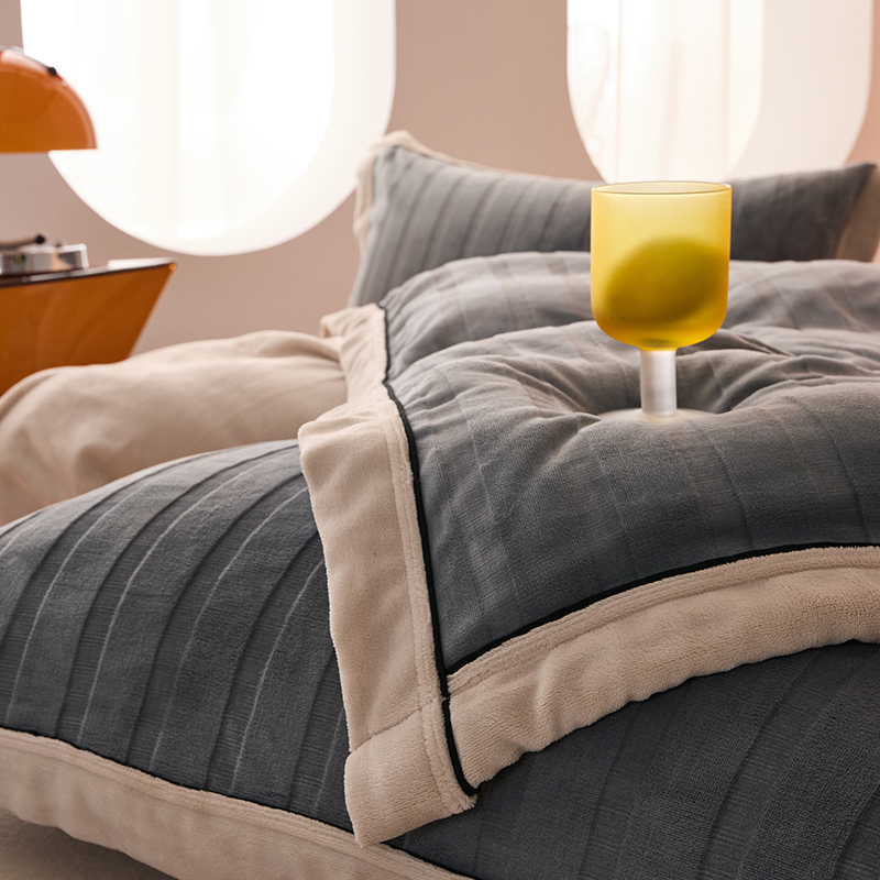 LADYCOCO可可家居 2024新款牛奶3D绒立体雕花剪花单品系列-单被套 灰色+卡其色