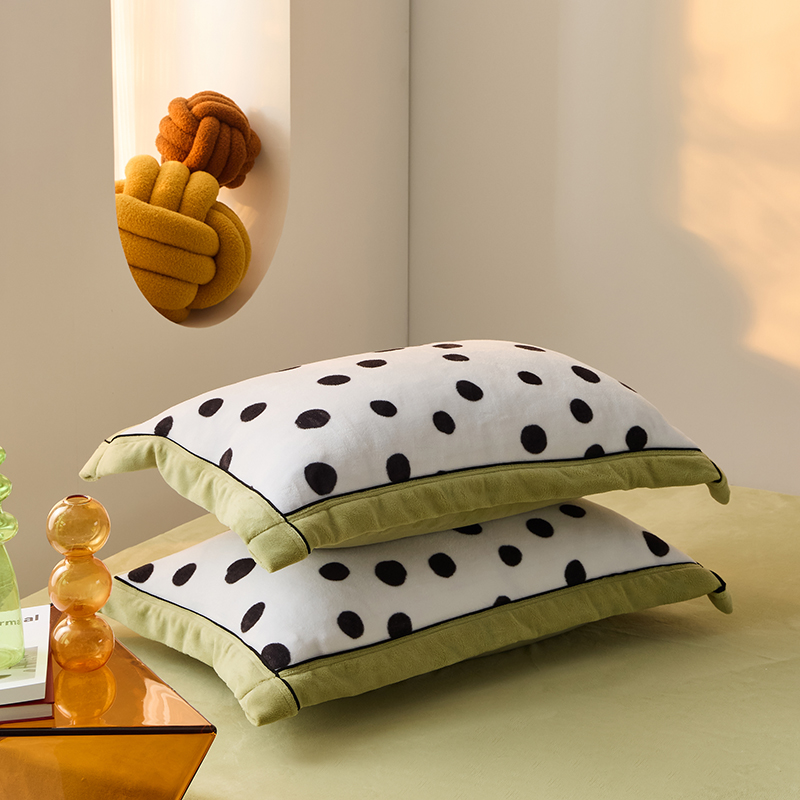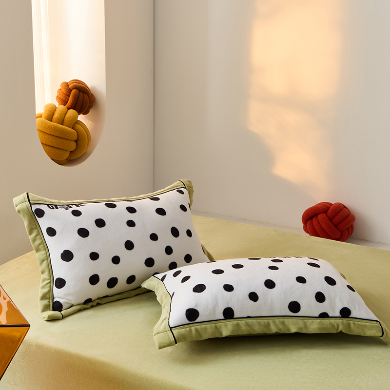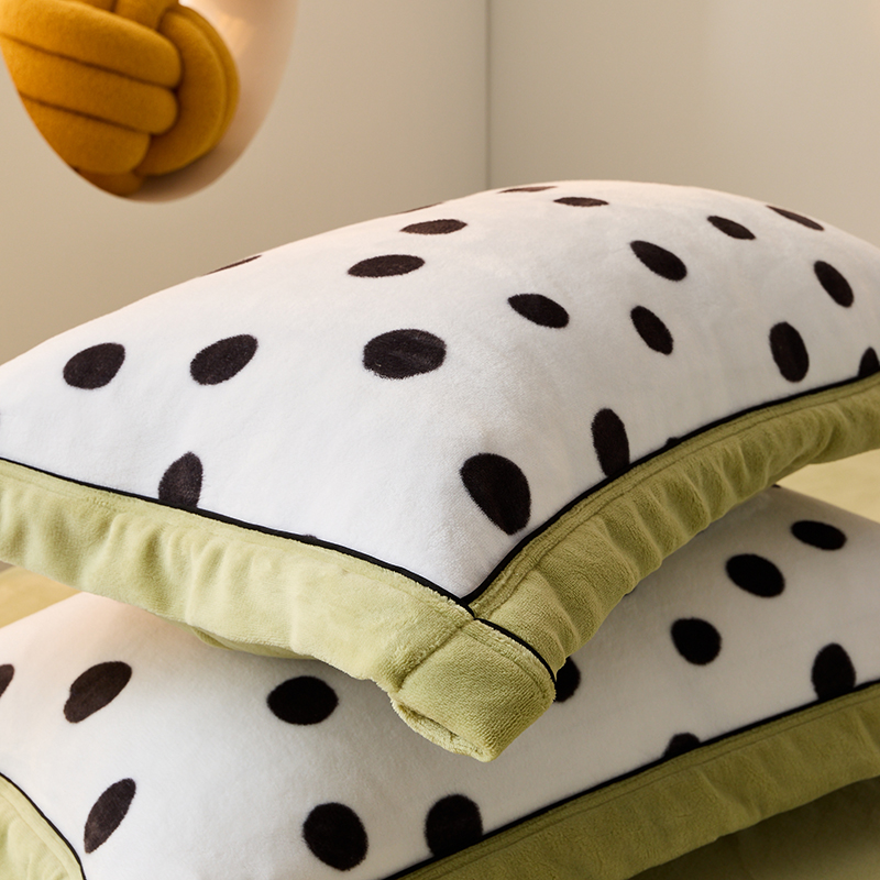 LADYCOCO可可家居 单枕套-2024新款牛奶绒数码印花单品系列 波点小熊+果绿