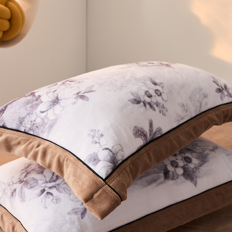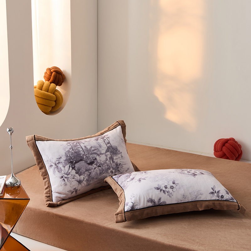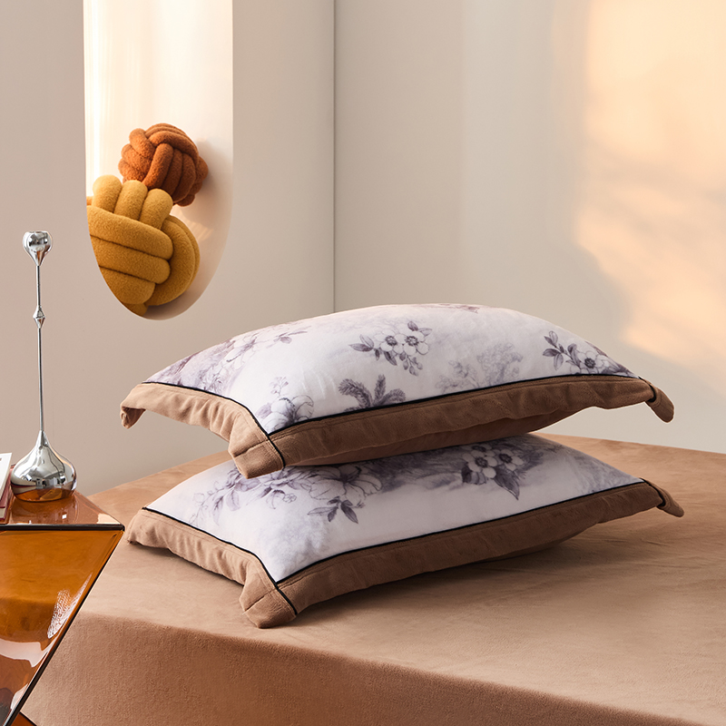 LADYCOCO可可家居 单枕套-2024新款牛奶绒数码印花单品系列 山林浅驼+深咖