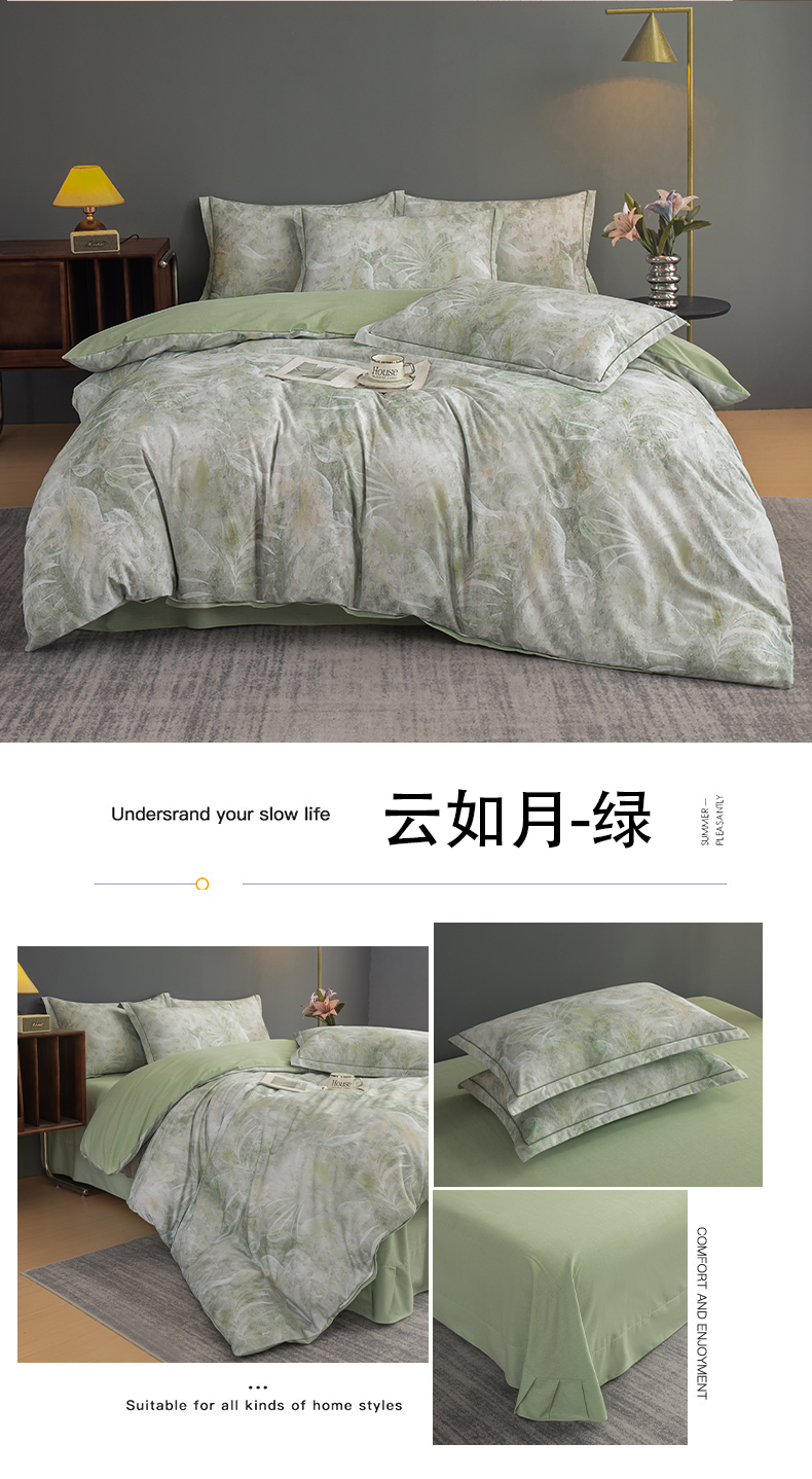 商品名称:2024新款全棉加厚长绒棉数码印花四件套 云如月-绿