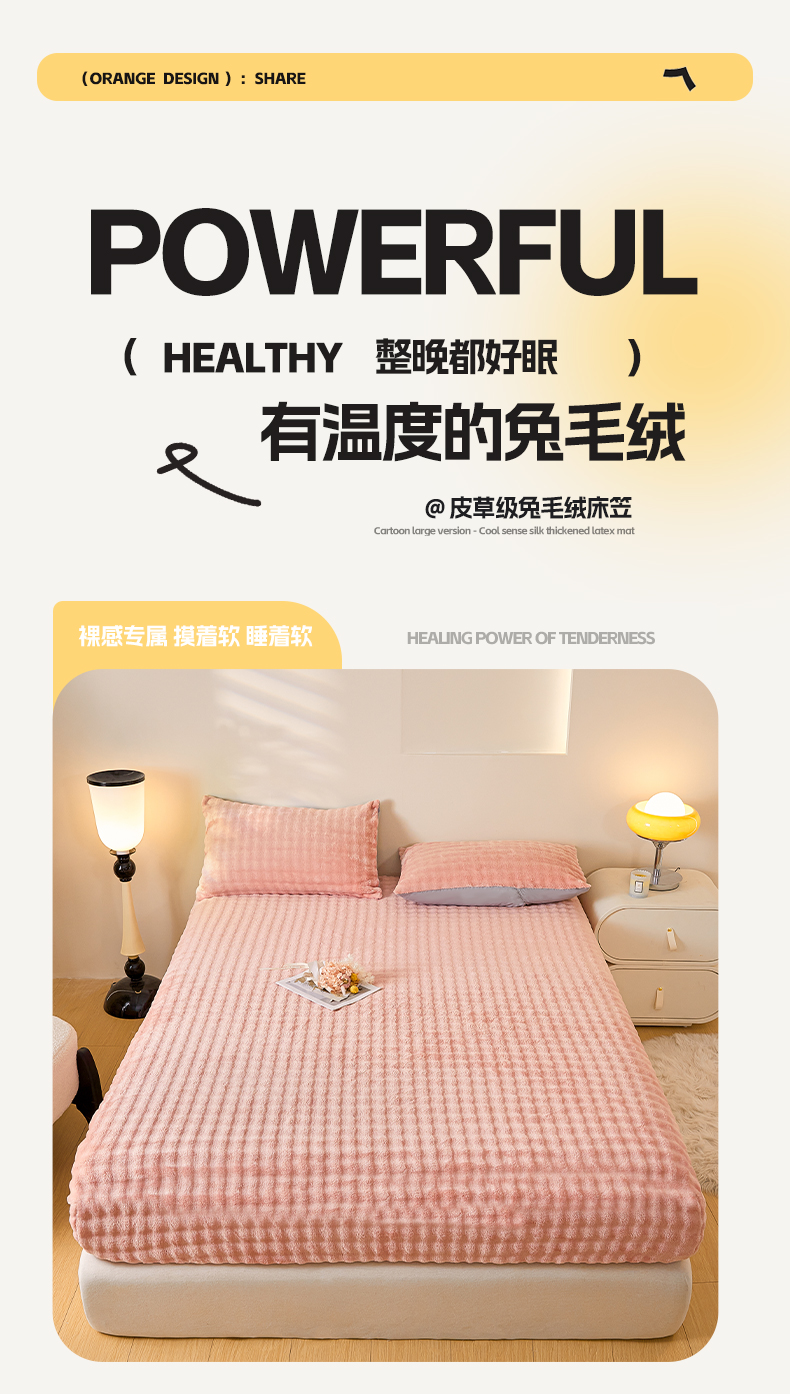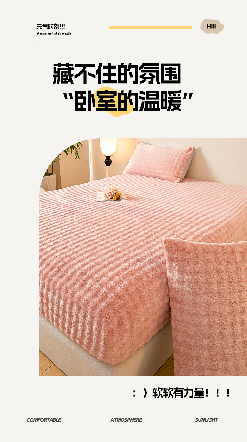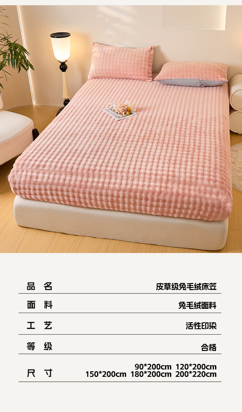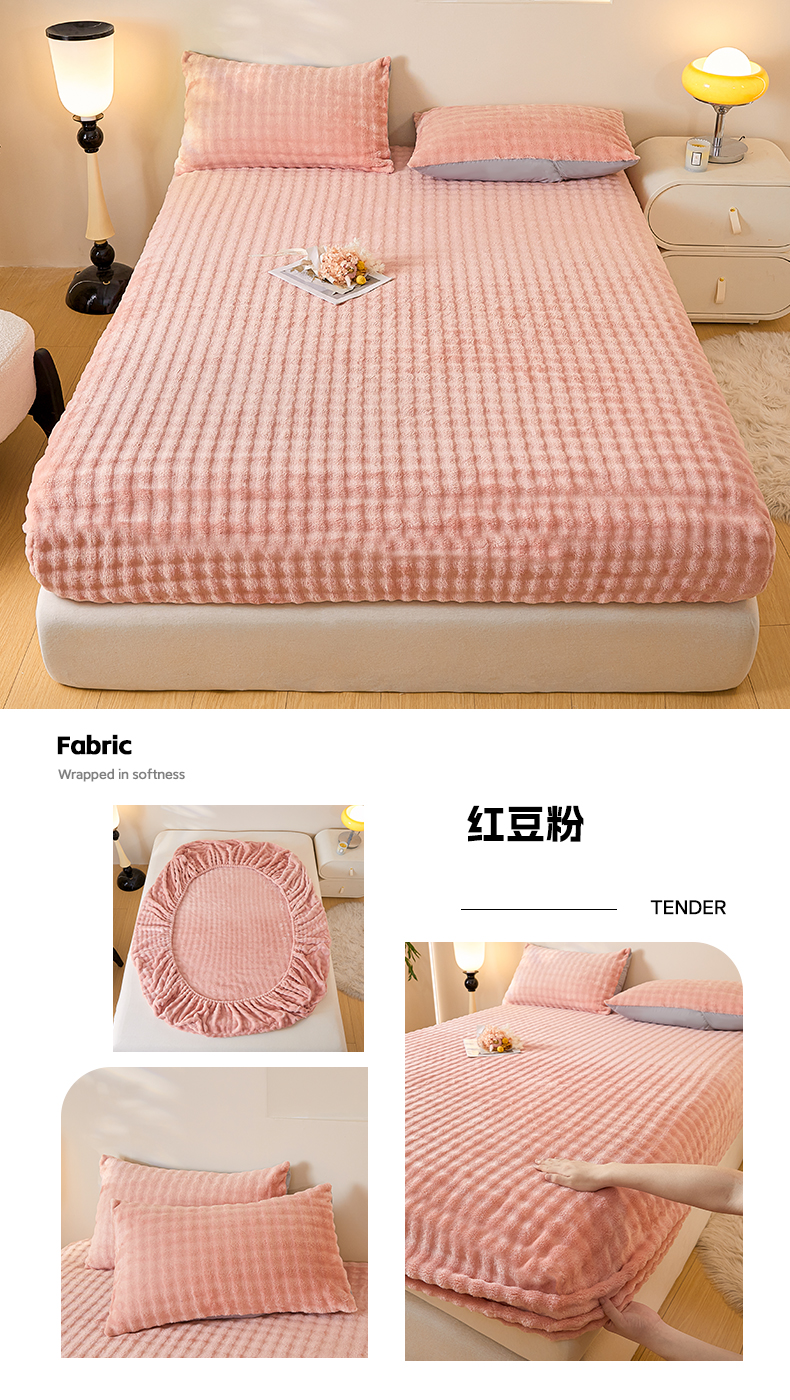 • 91家纺网 家纺一手货源 找家纺 2025新款兔毛绒高克重保暖床笠 席梦思床笠 红豆粉