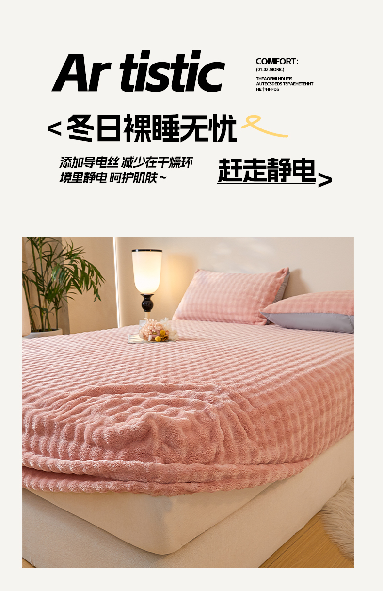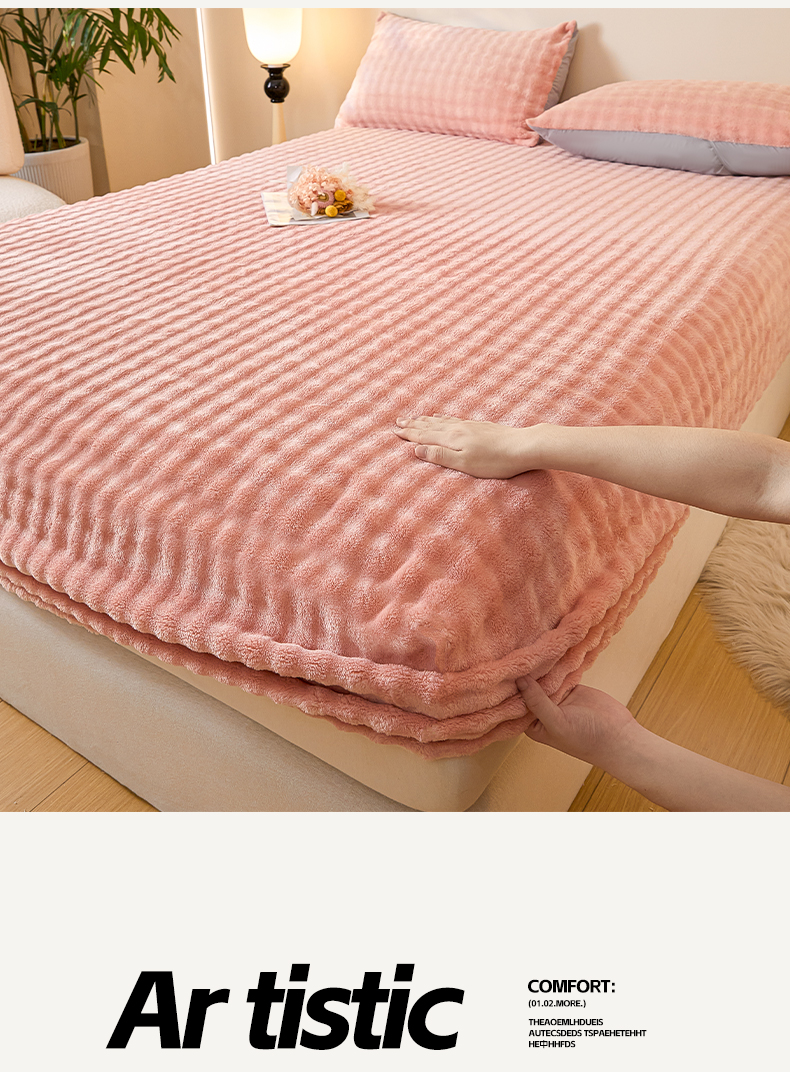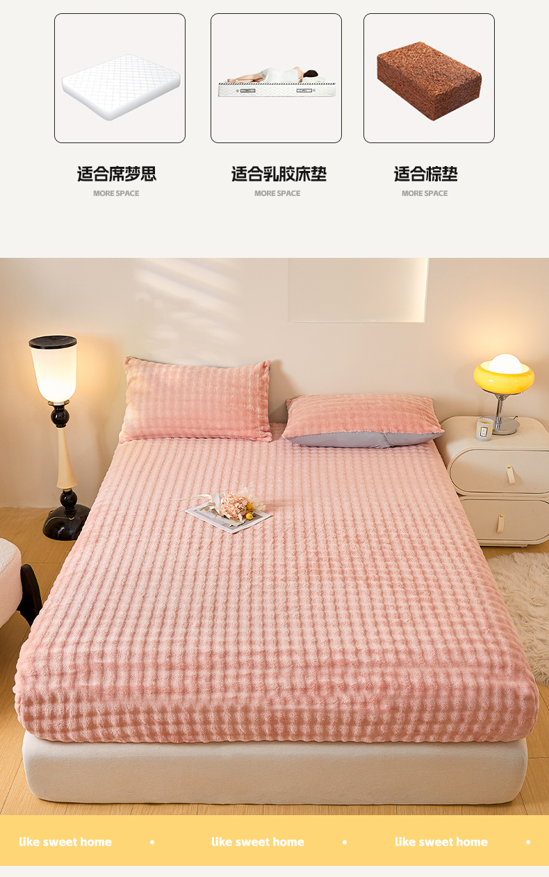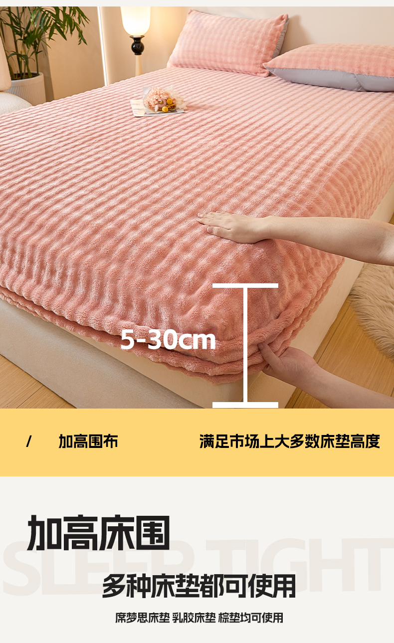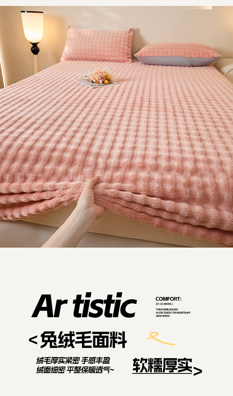 • 91家纺网 家纺一手货源 找家纺 2025新款兔毛绒高克重保暖床笠 席梦思床笠 红豆粉