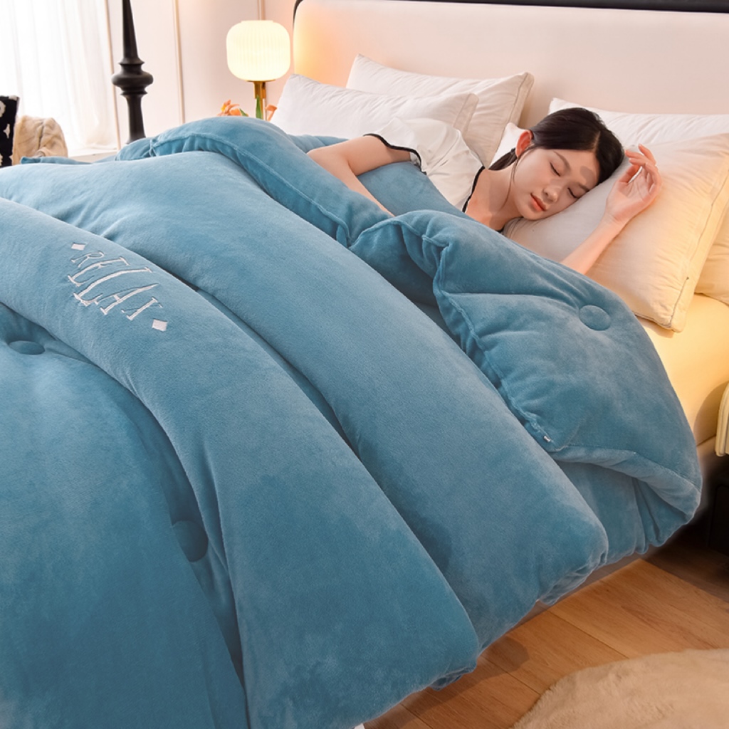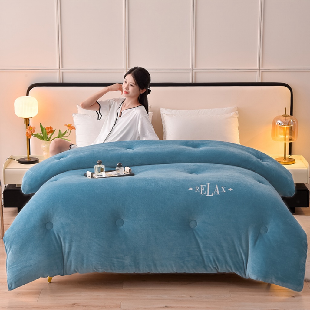商品名称:牛魔王家居 2024新款加厚牛奶绒绣花冬被春秋被大豆被被子 牛奶绒+月光蓝