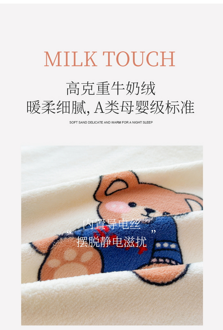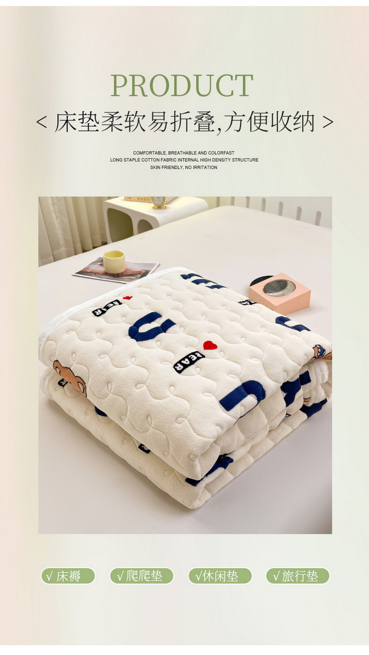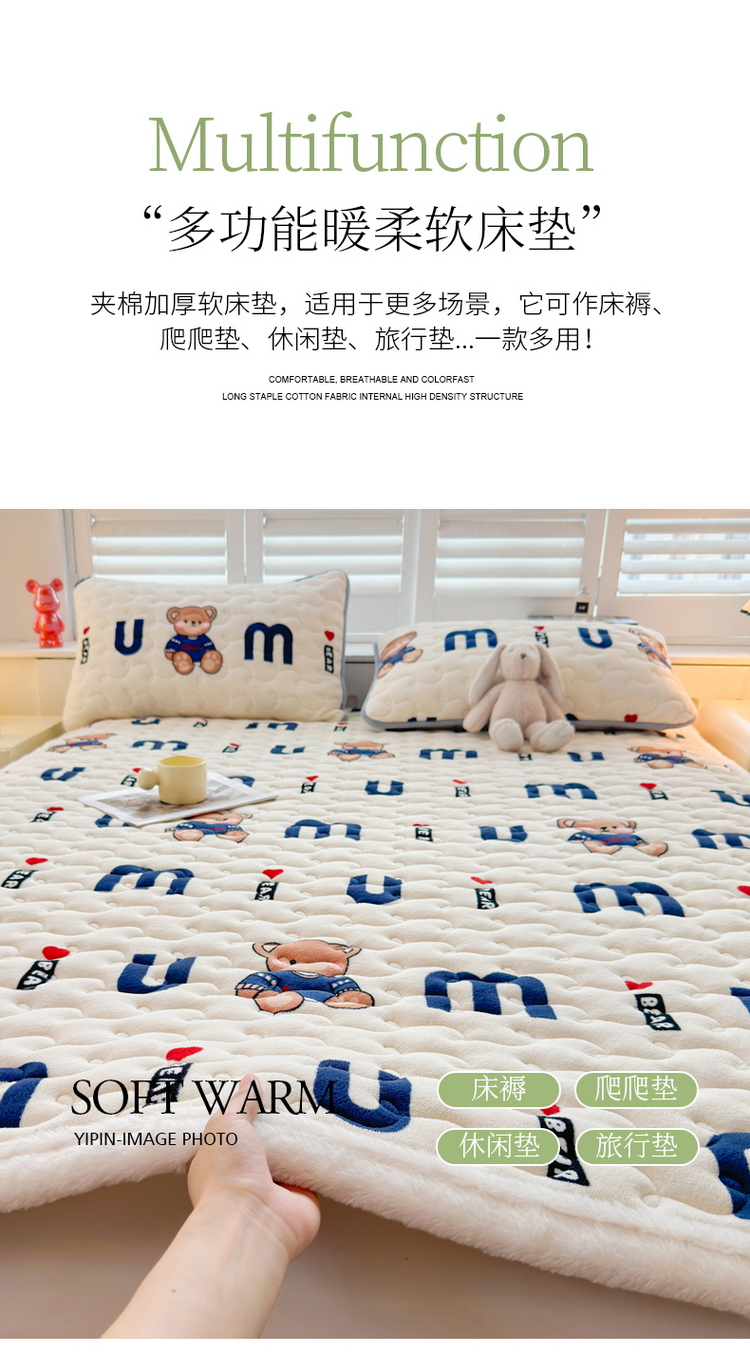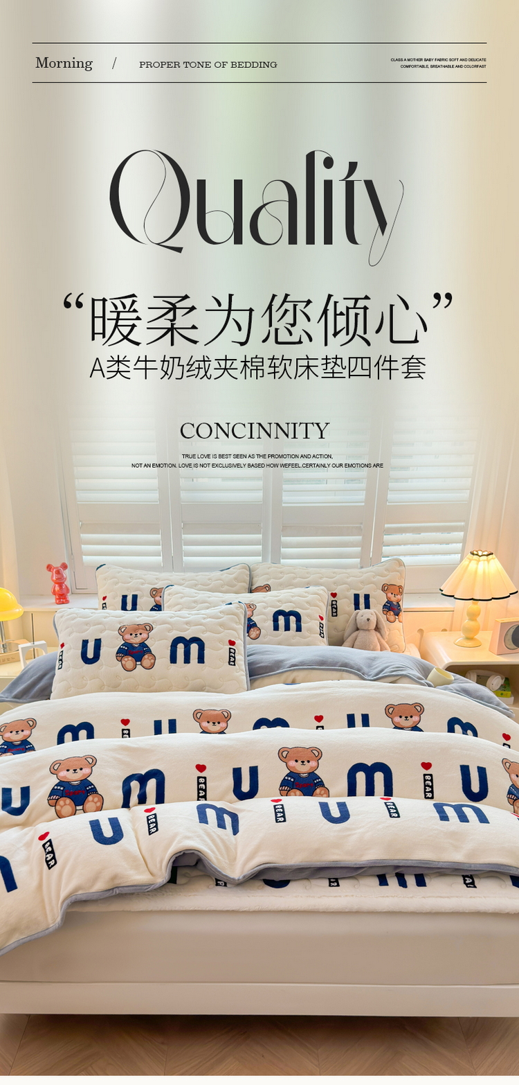 2024秋冬新款牛奶绒加厚夹棉床褥垫+牛奶绒被套四件套妙妙熊