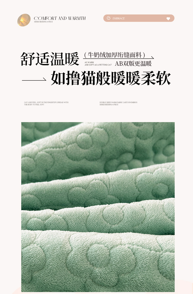 (总)恋尚 2025新款懒兔毛绒夹棉牛奶绒床笠式床裙四件套(控价238元起),爱意玫瑰,斑蝶,豹纹,蝶语,花慕,枝梦