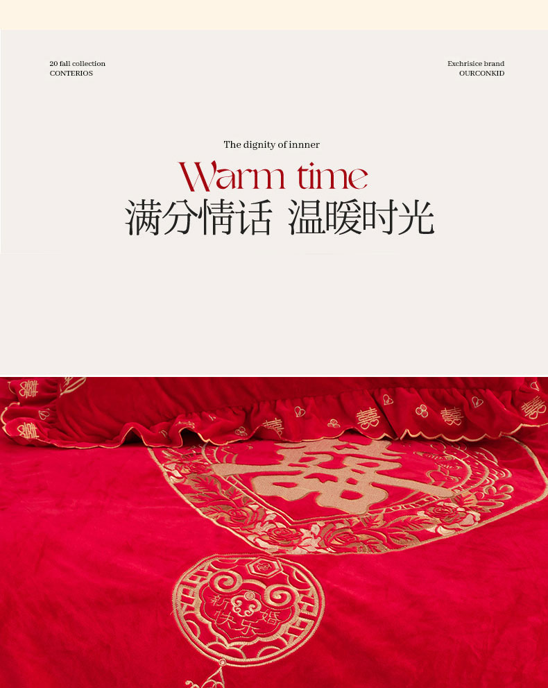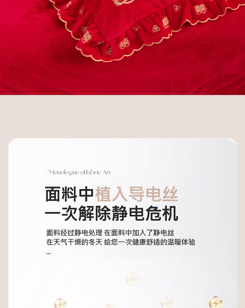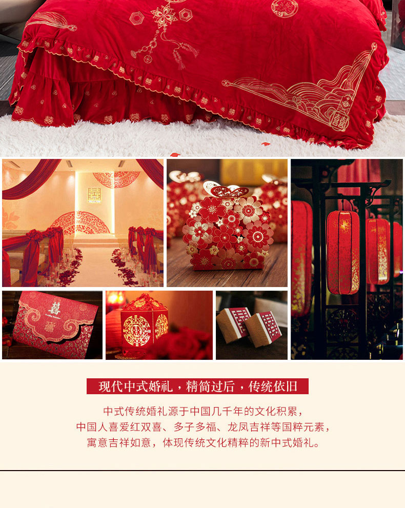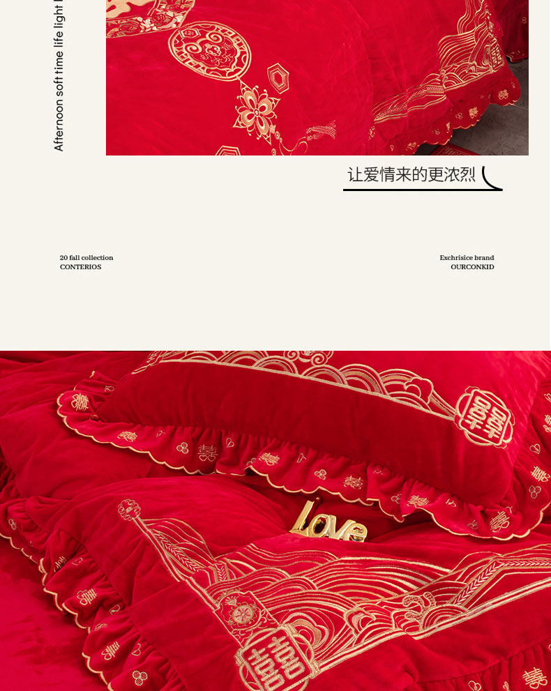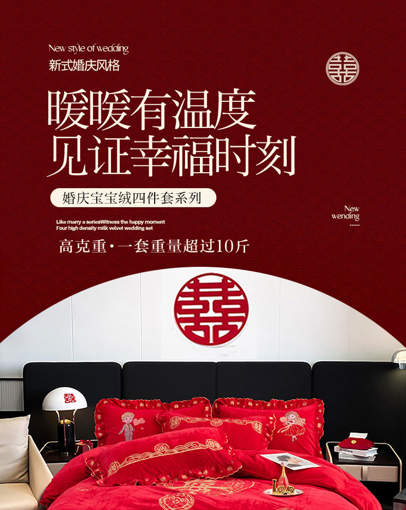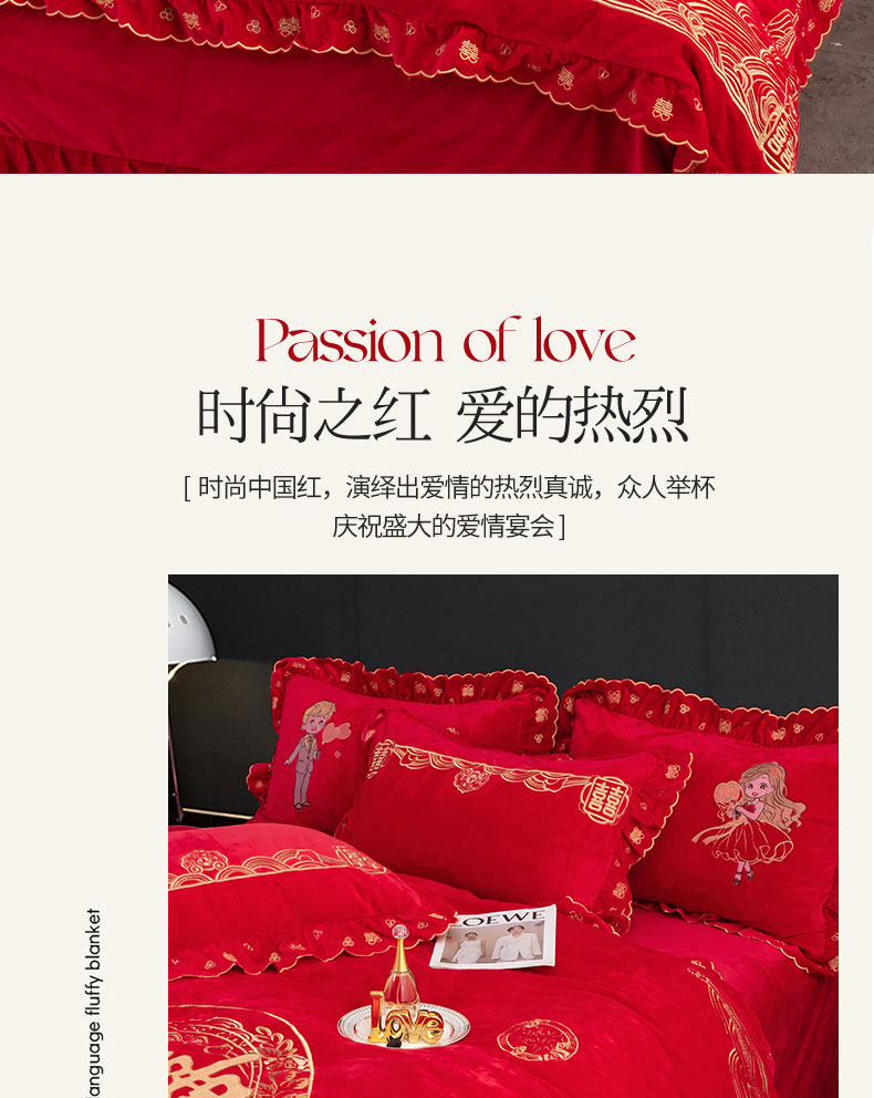 商品名称:蒂爵 全棉纯棉抗静电宝宝绒婚庆绣花四件套 新婚快乐