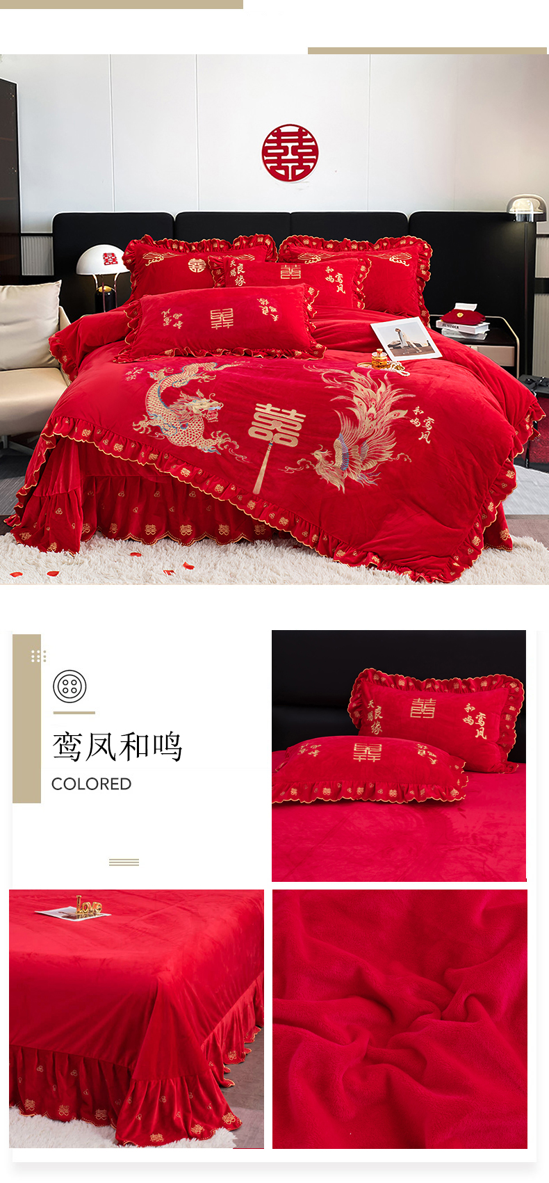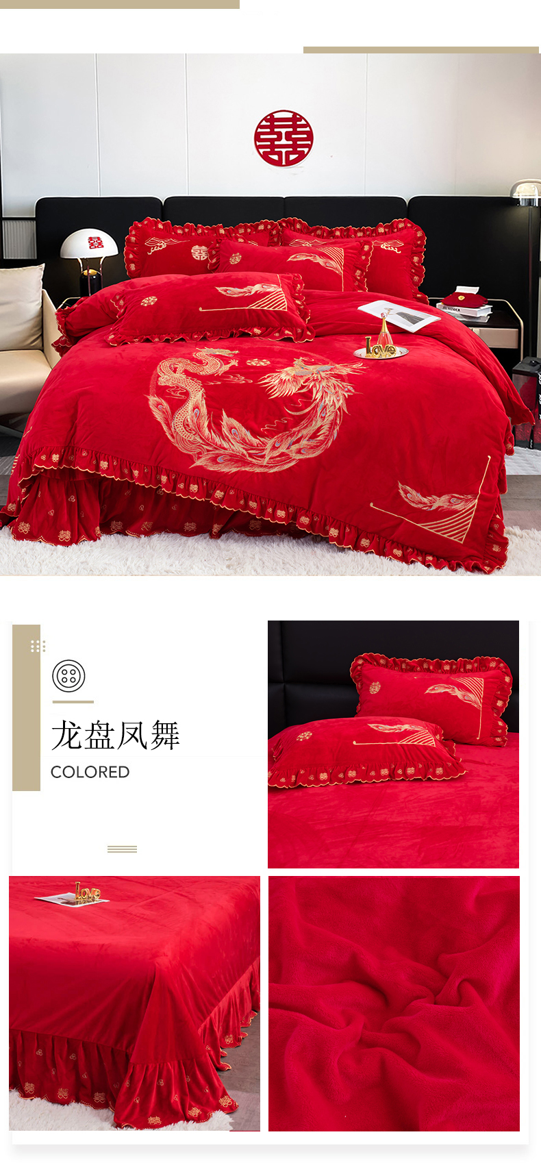 (总)蒂爵 全棉纯棉提花顶奢重工绣花工艺款婚庆四件套多件套,龙凤传奇,禧龙禧凤,缘定江山,挚爱一生