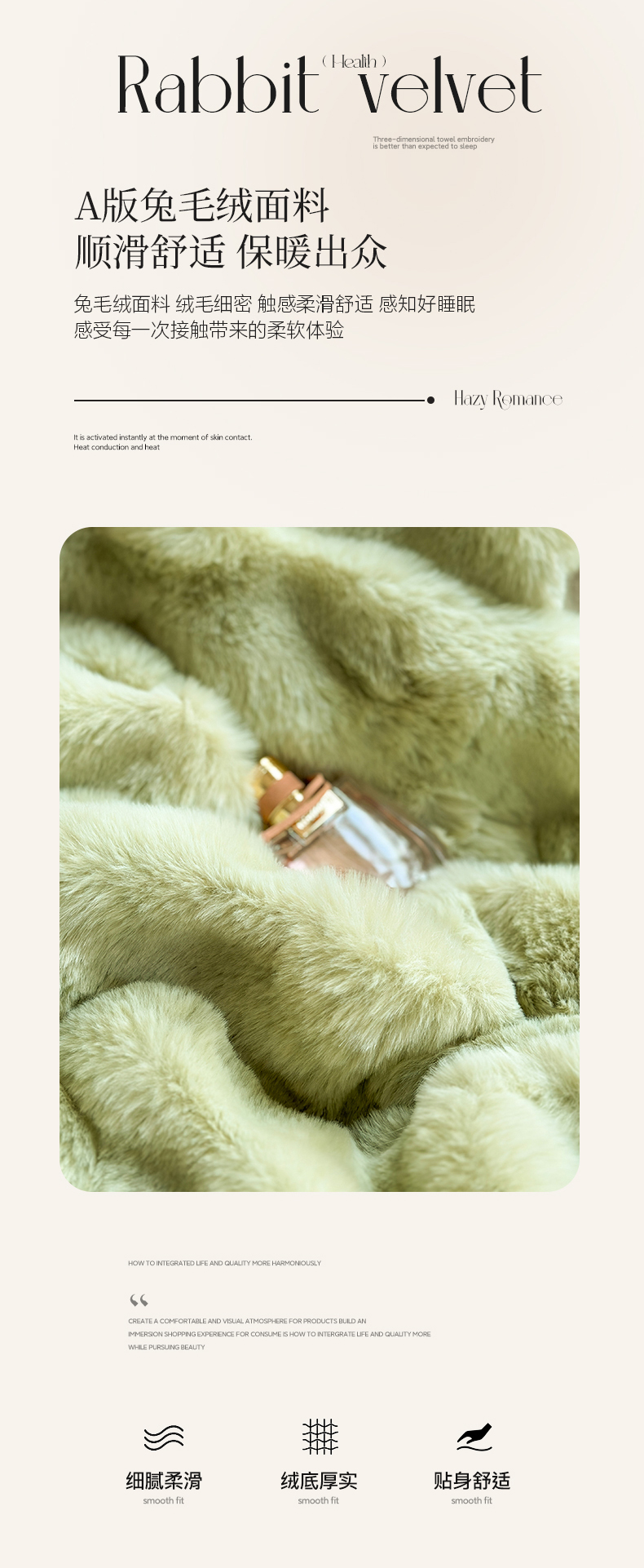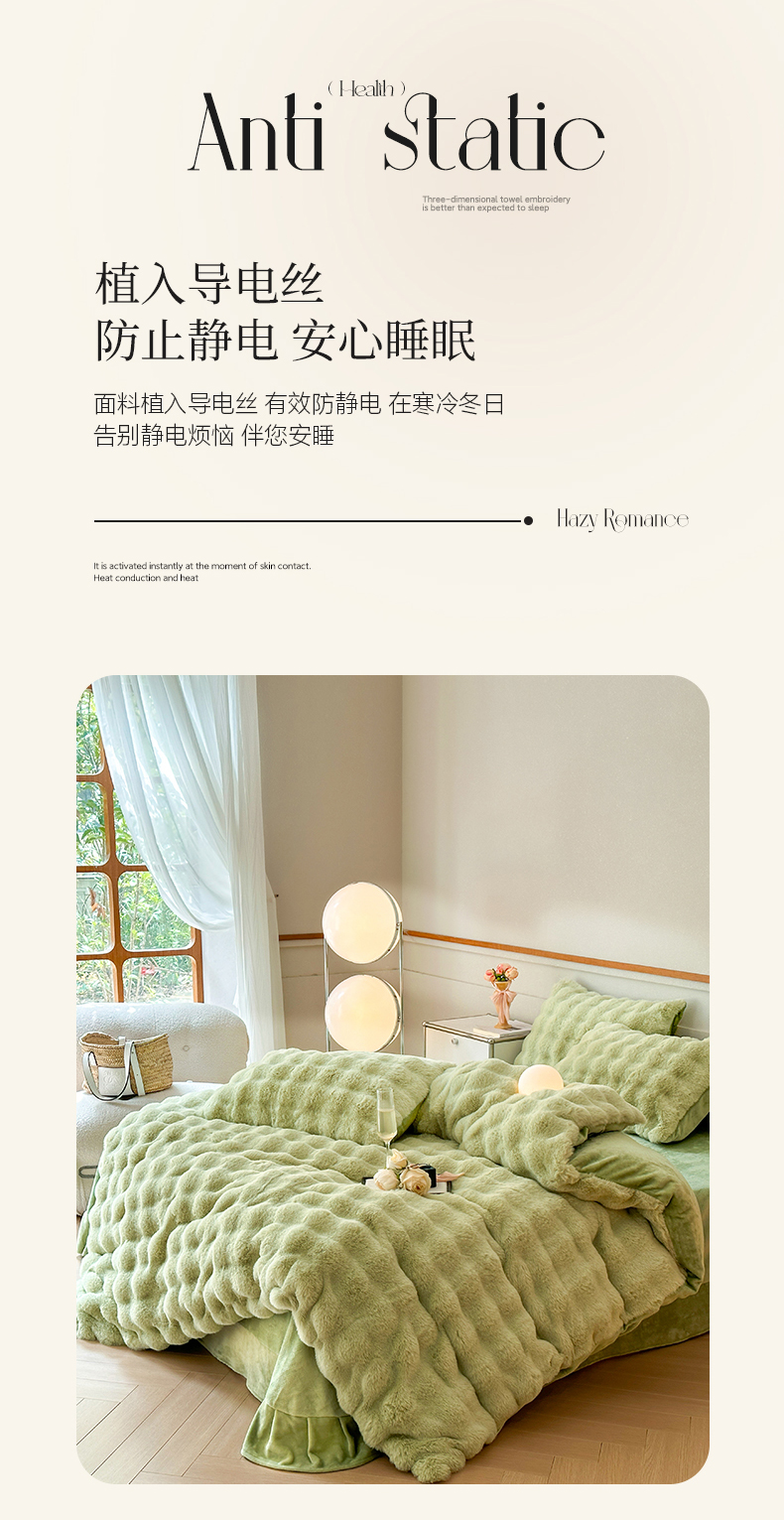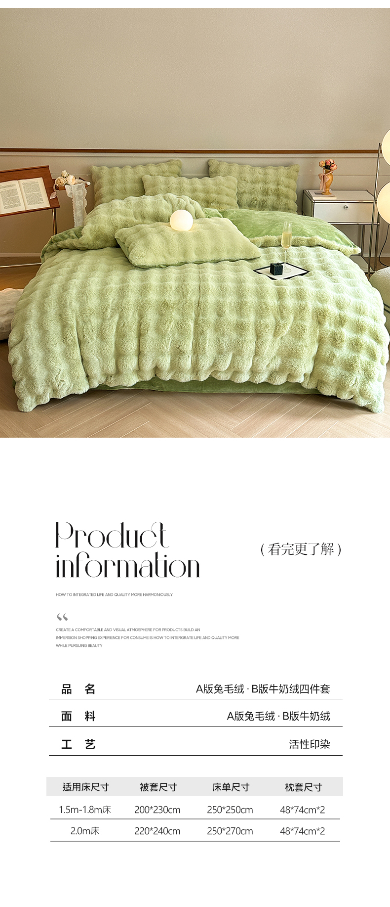 商品名称:畅畅家纺 2024新款AB版冬季纯色七彩兔兔绒兔毛绒牛奶绒四件套 抹茶绿