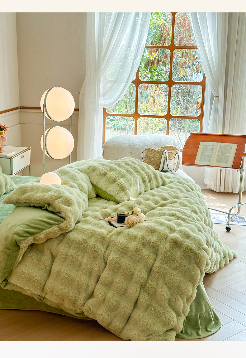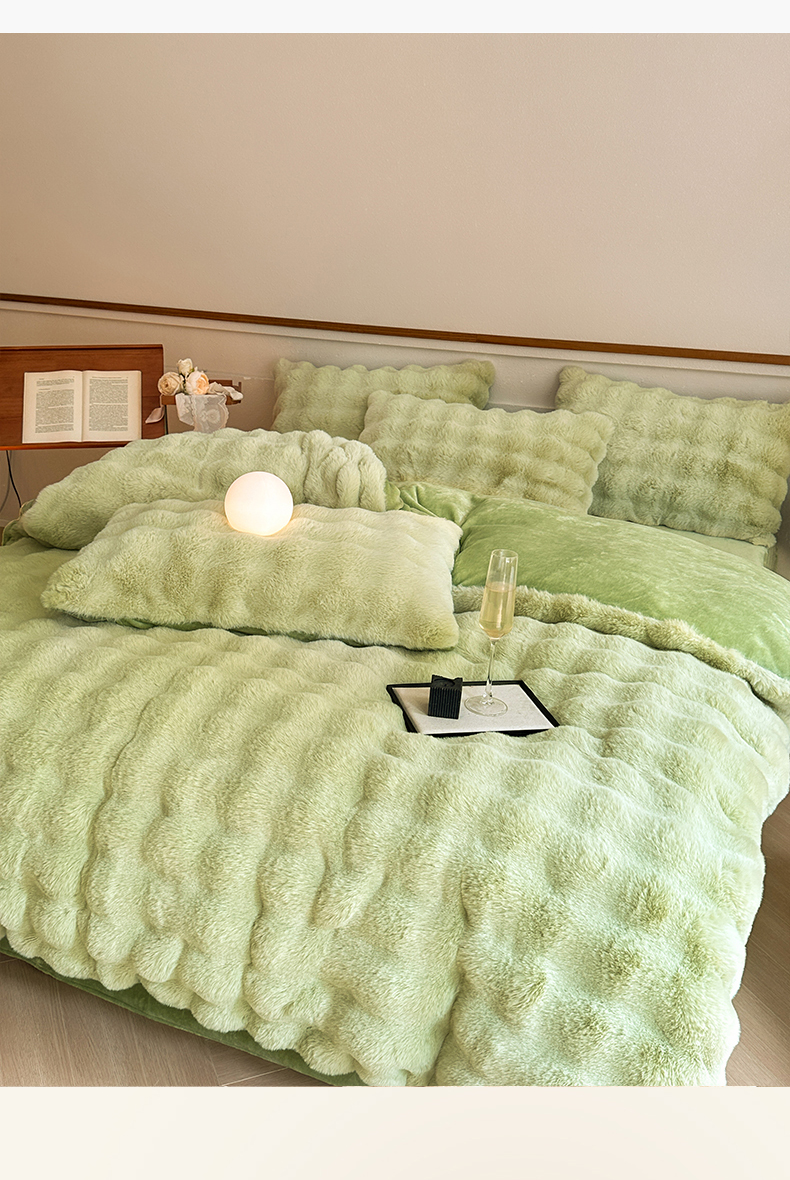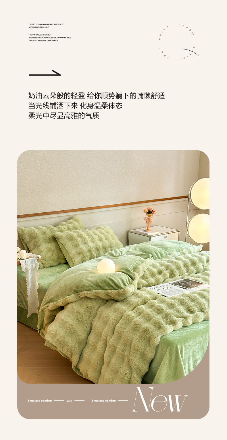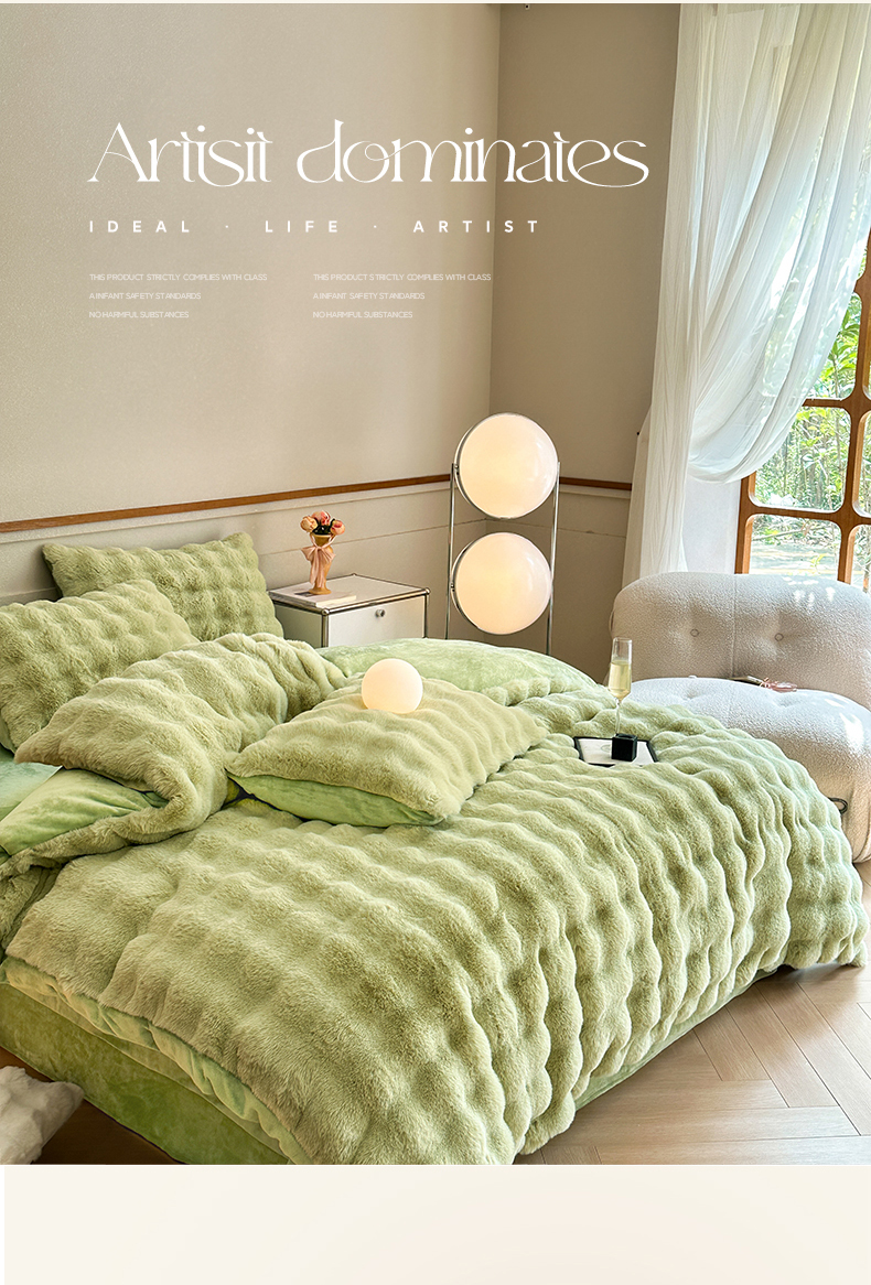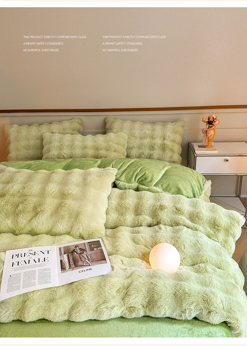 畅畅家纺 2024新款AB版冬季纯色七彩兔兔绒兔毛绒牛奶绒四件套 抹茶绿
