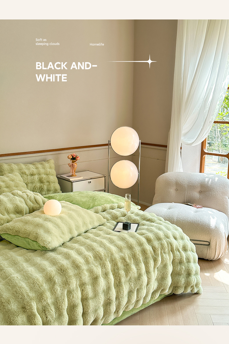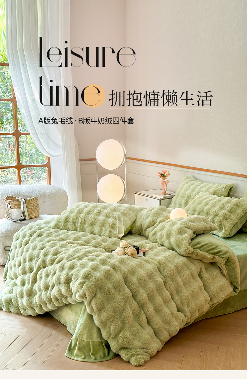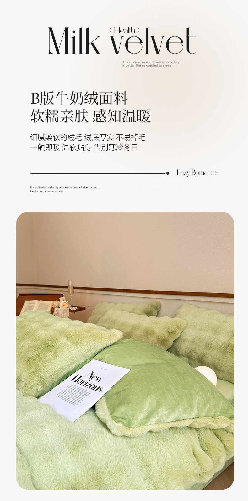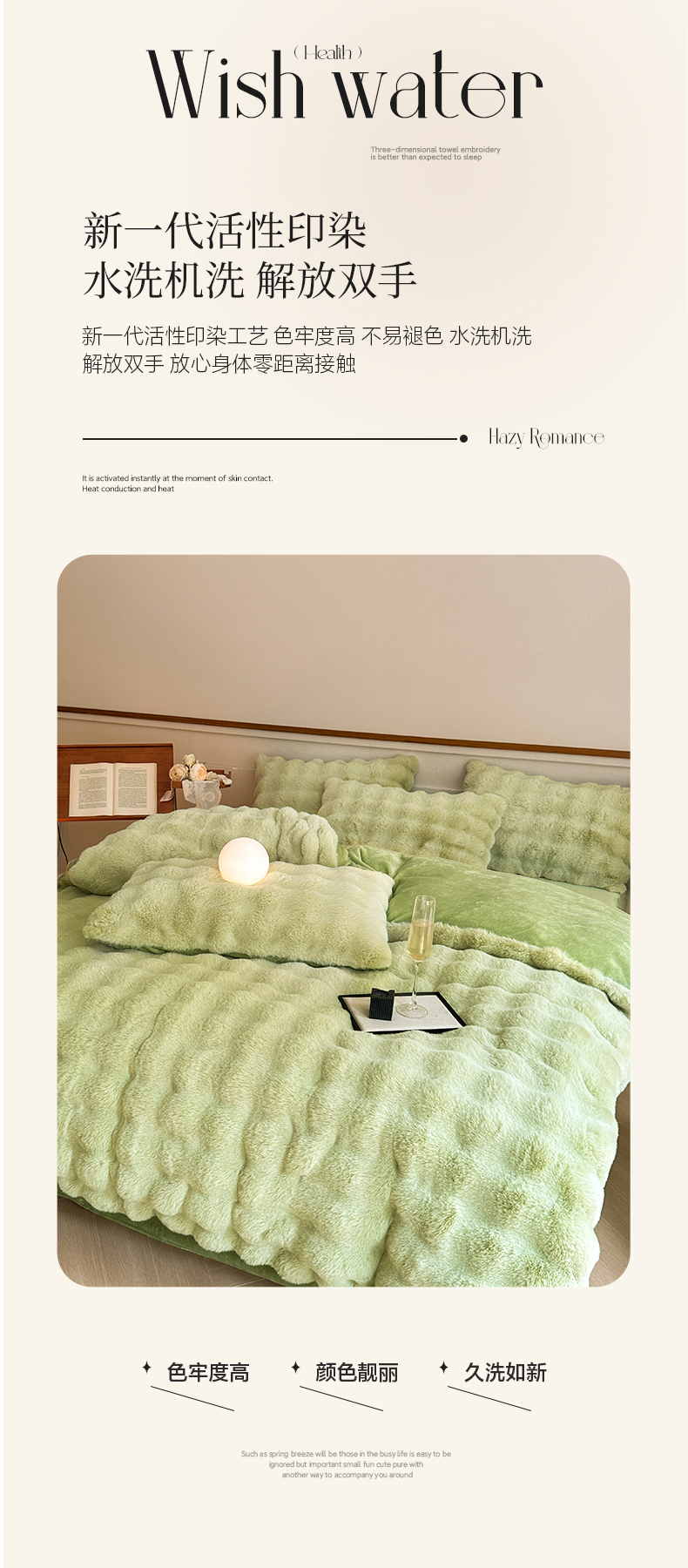 畅畅家纺 2024新款AB版冬季纯色七彩兔兔绒兔毛绒牛奶绒四件套 抹茶绿
