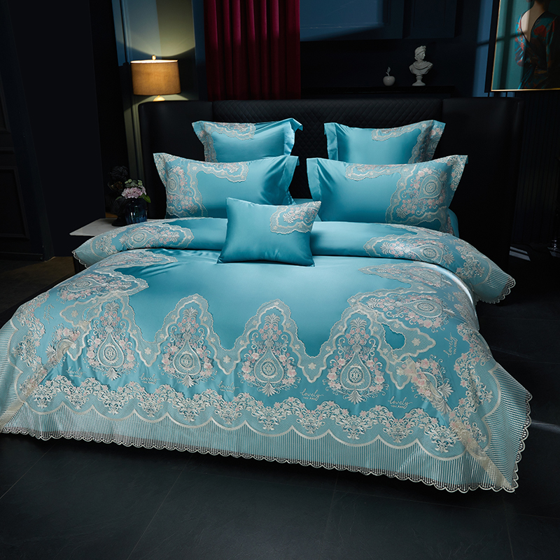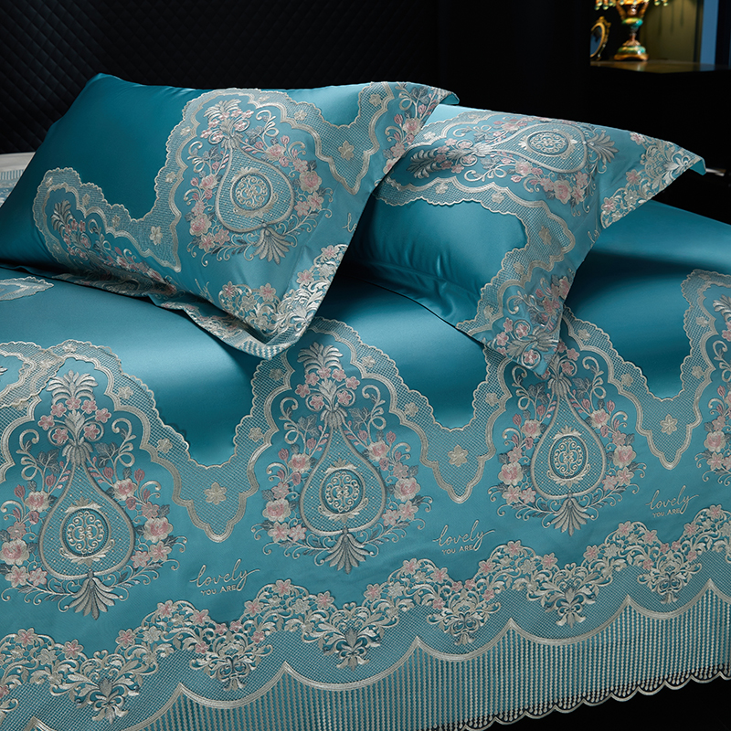 当前位置: 91家纺网 > 商品网购 > 床品套件 > 四件套 > 全棉普通四件套 > 2024新款高端蕾丝重磅真丝棉系列四件套-爱兰朵 爱兰朵炫彩绿
