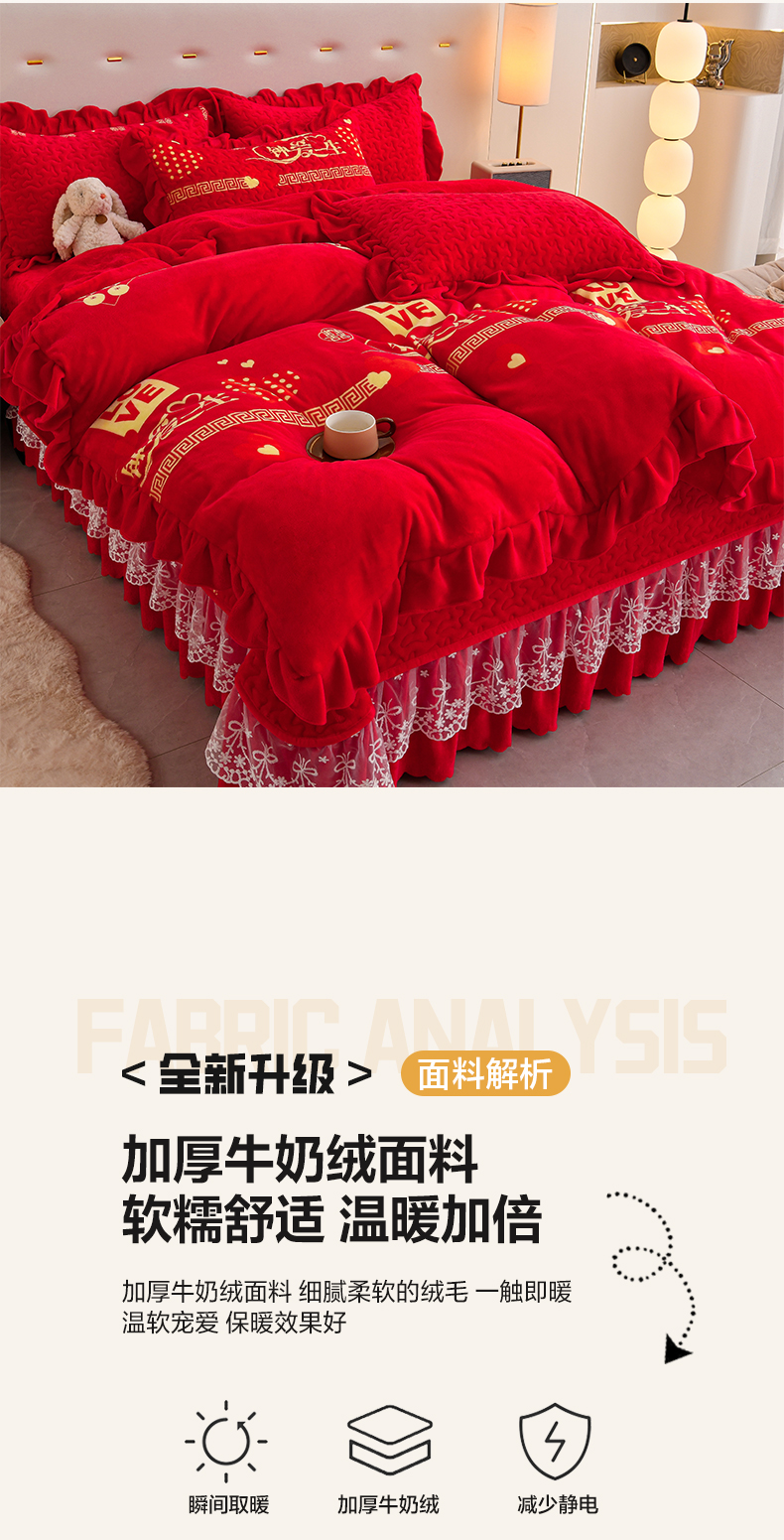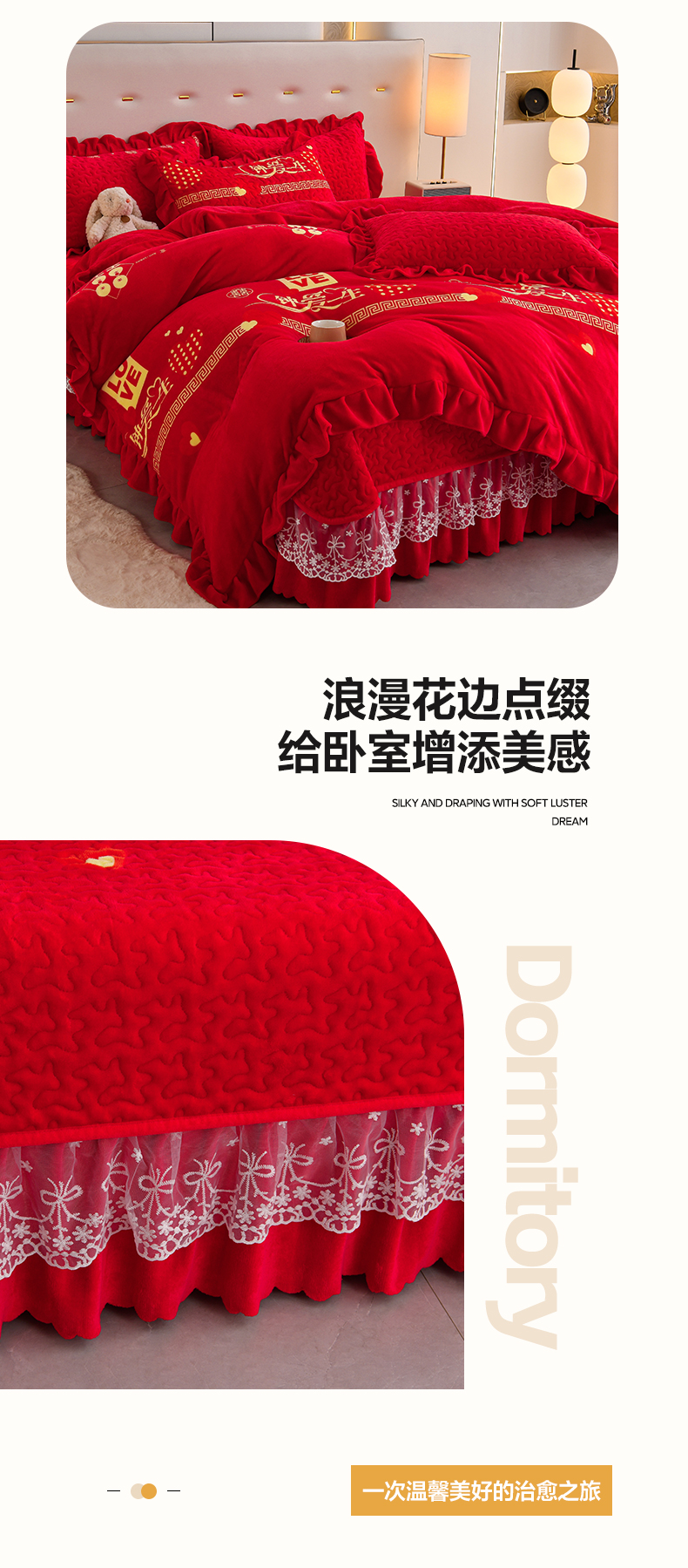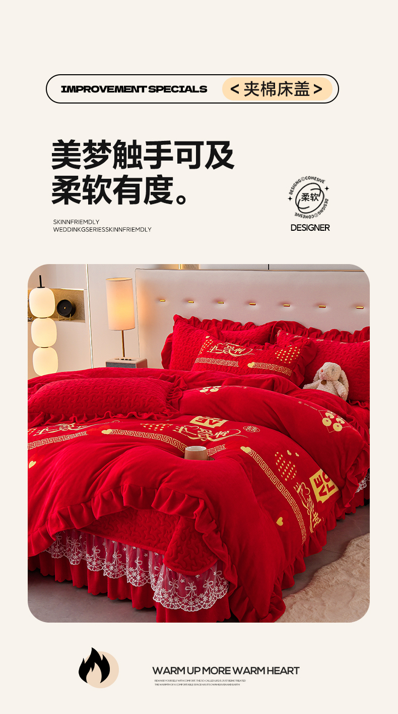 当前位置: 91家纺网 > 商品网购 > 床品套件 > 四件套 > 牛奶绒四件套 > 民新家纺 2025新款牛奶绒印花夹棉床盖四件套 钟爱一生