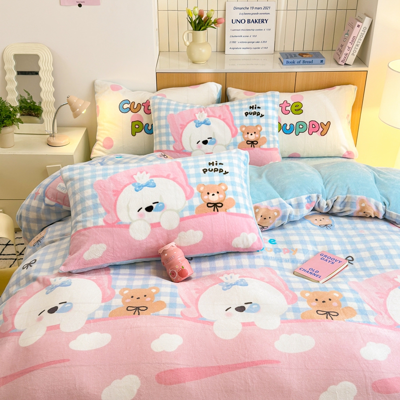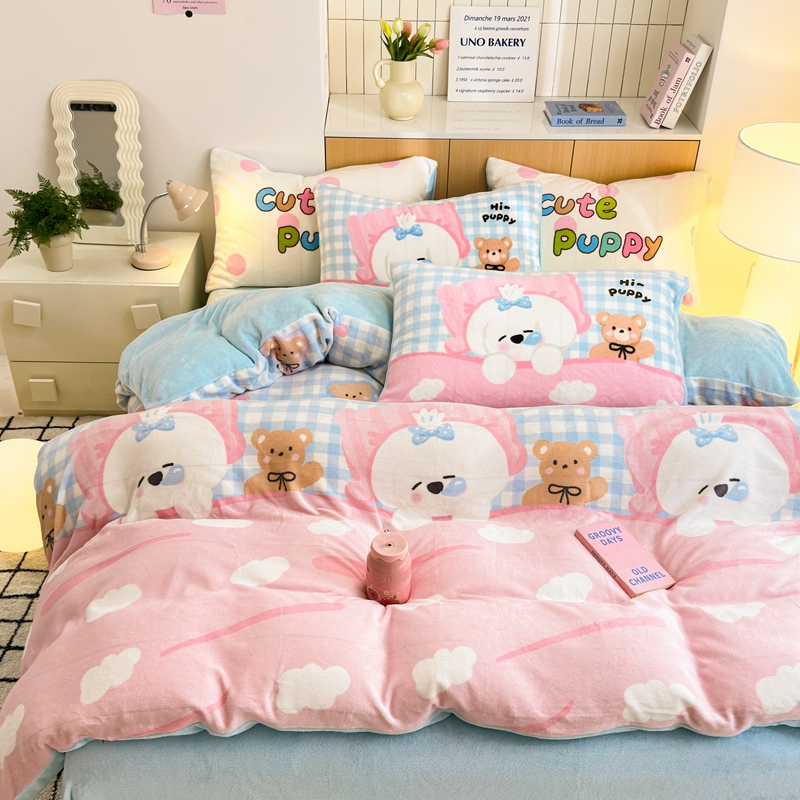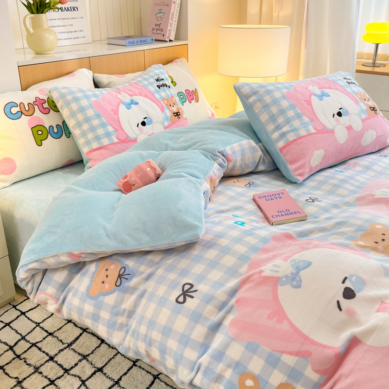 柚子YOUTH 2024新款加厚纯印花牛奶绒四件套 晚安狗