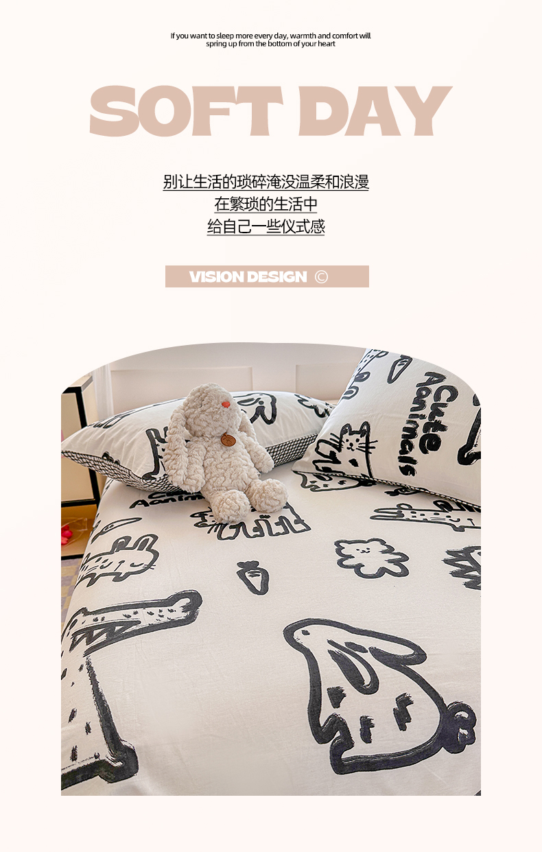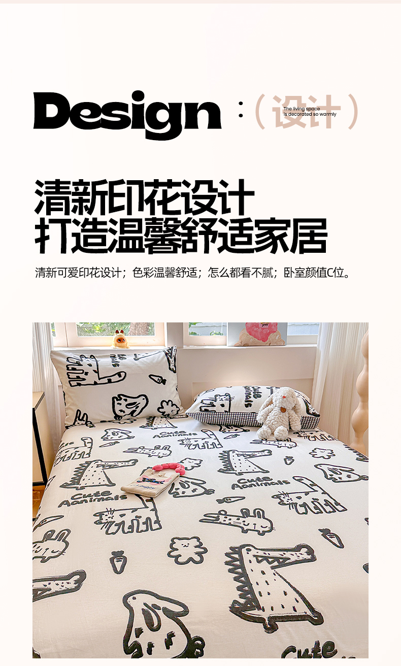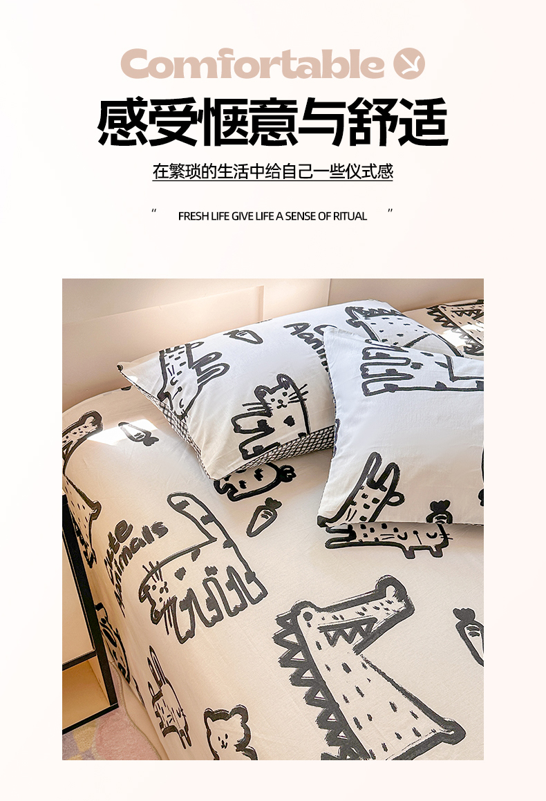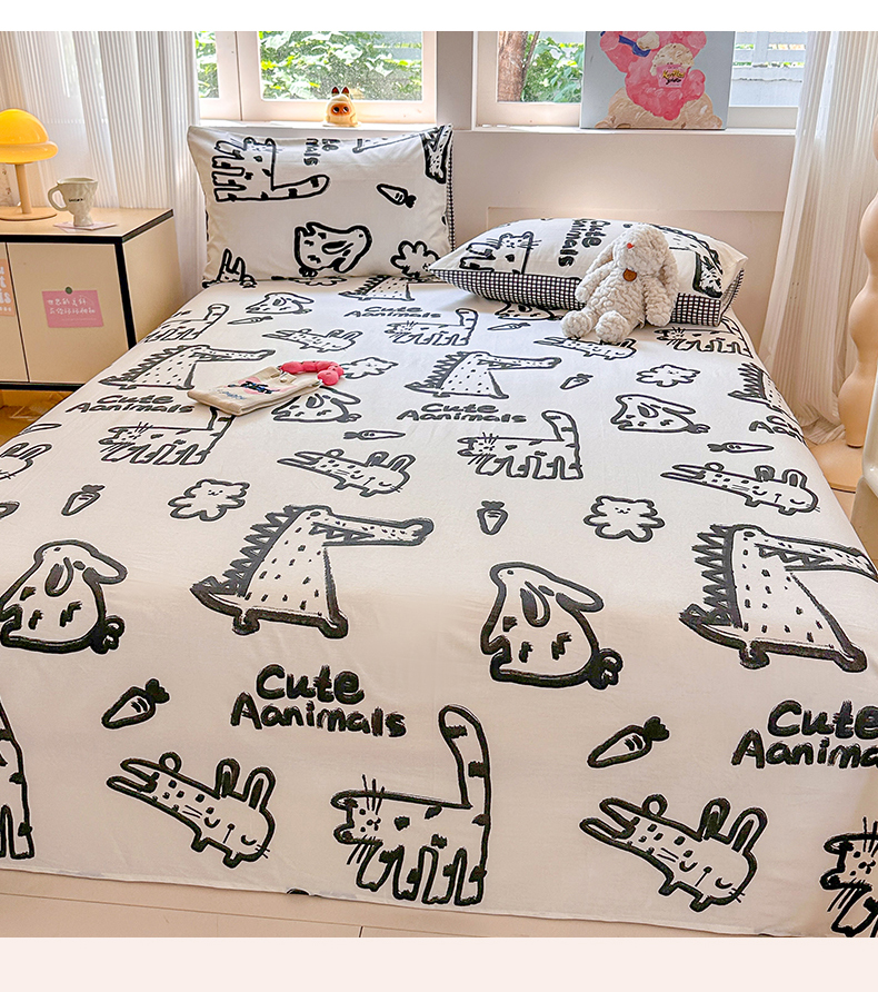 • 91家纺网 家纺一手货源 找家纺 吉象家纺 2024新款高支密全棉印花单床单 漫画家