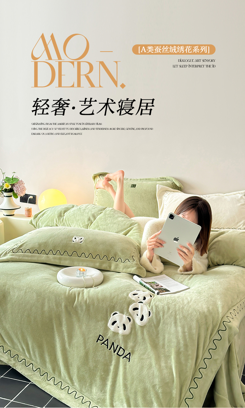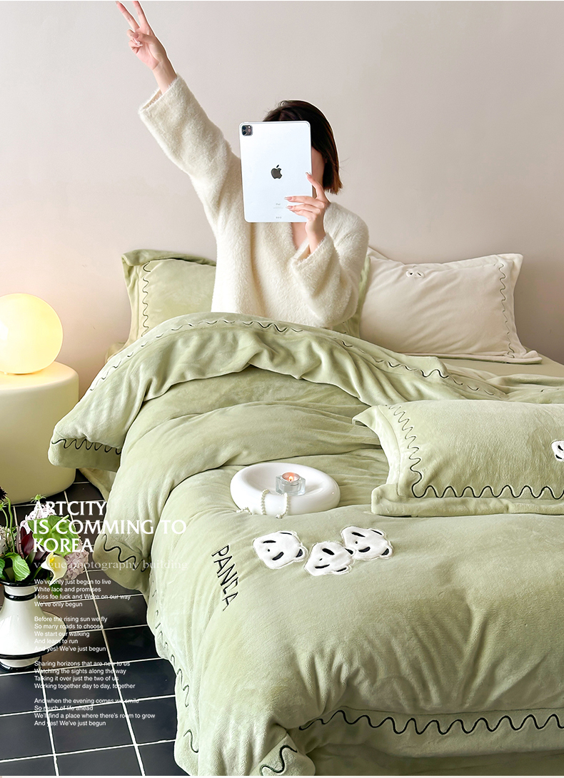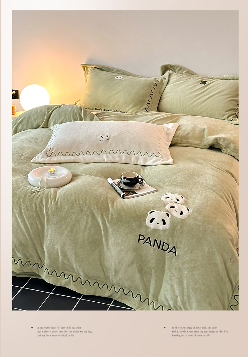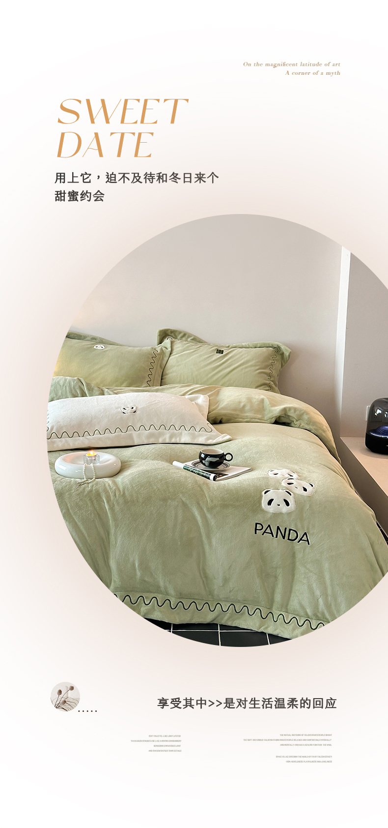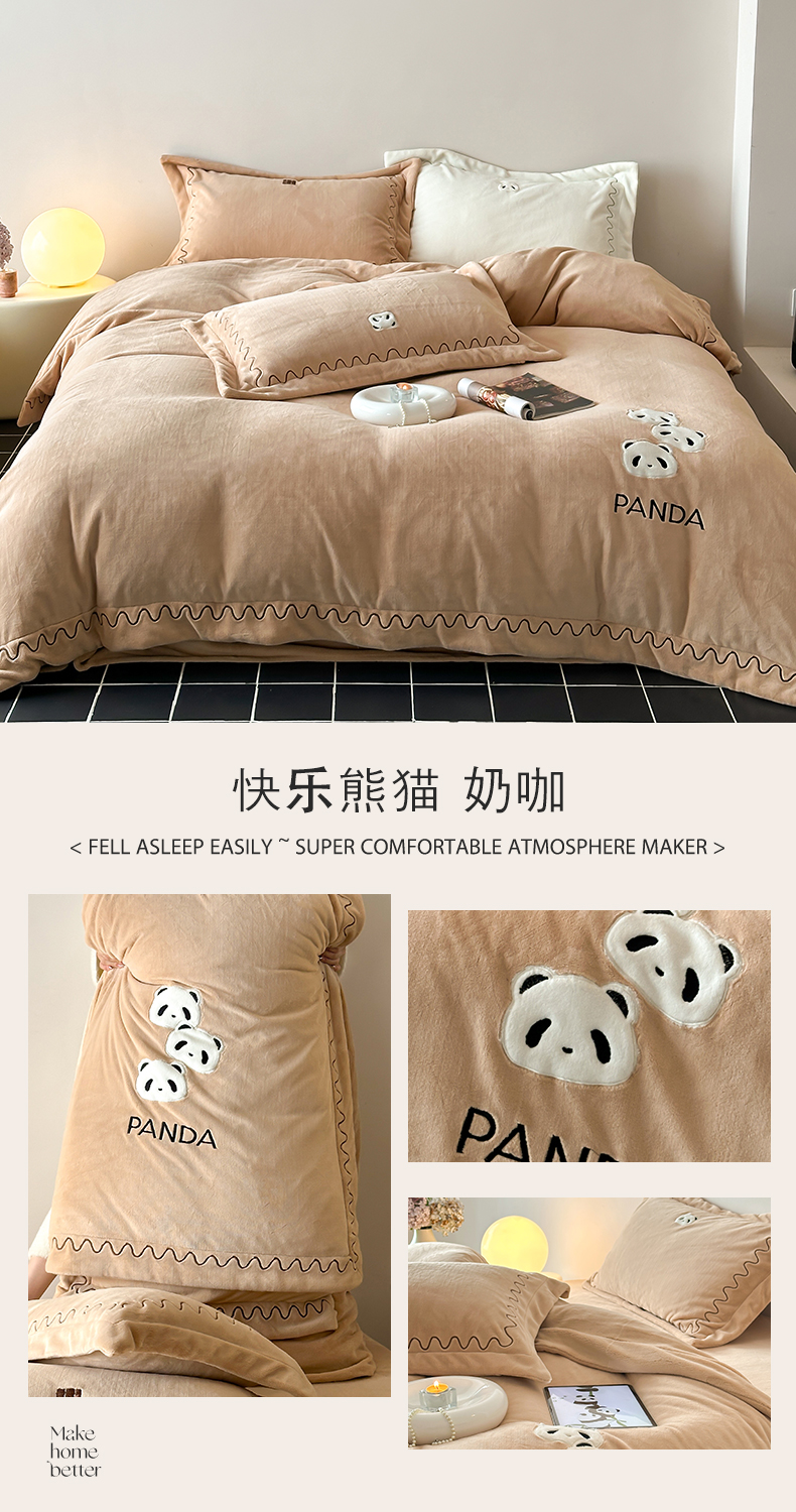 (总)名品优仓 2024新款高克重牛奶绒刺绣四件套-快乐熊猫