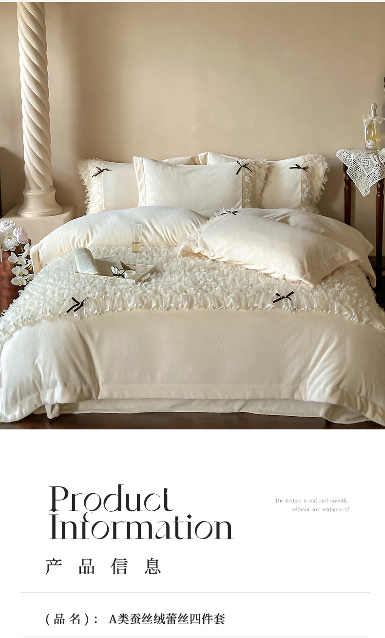 商品名称:(总)名品优仓 2024新款高克重牛奶绒蕾丝四件套-爱瑞丝的梦