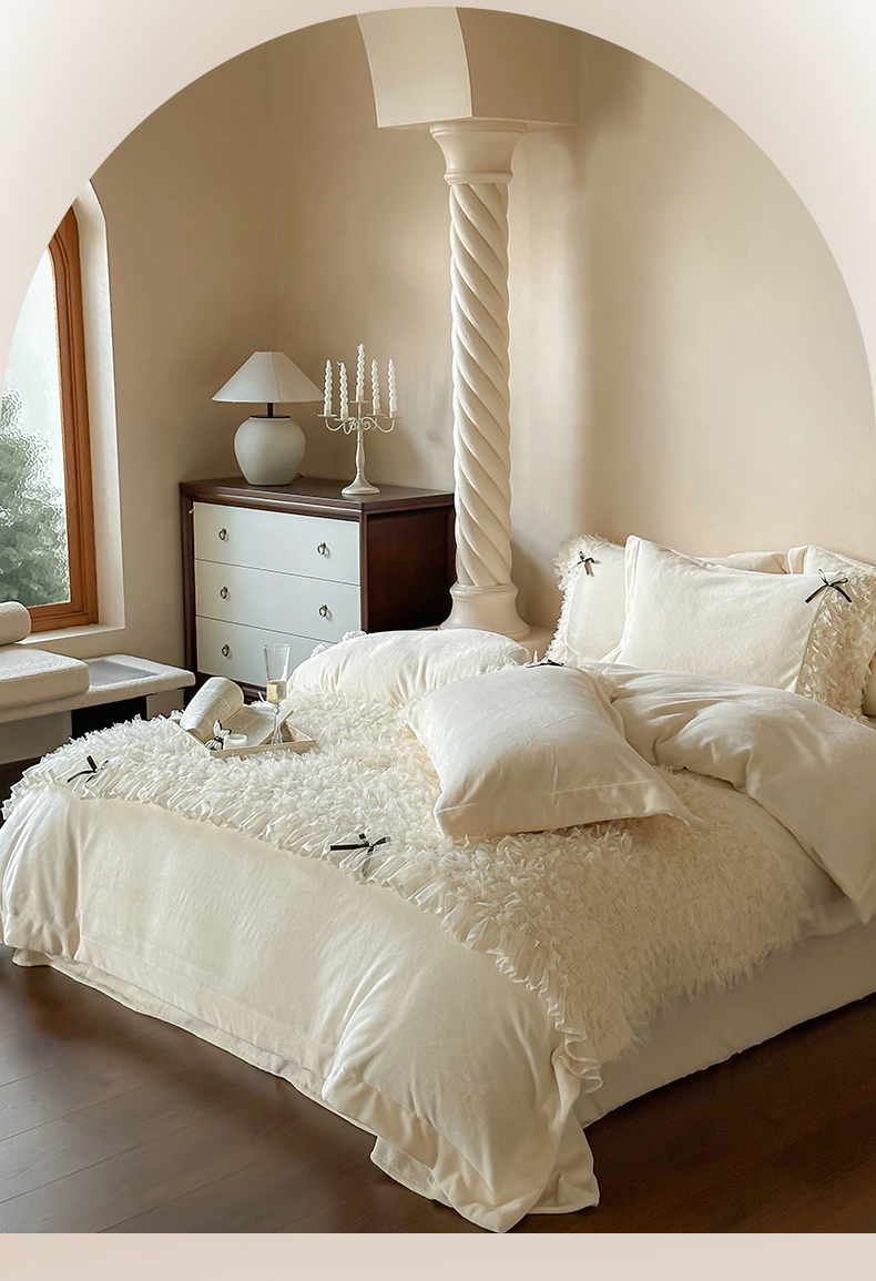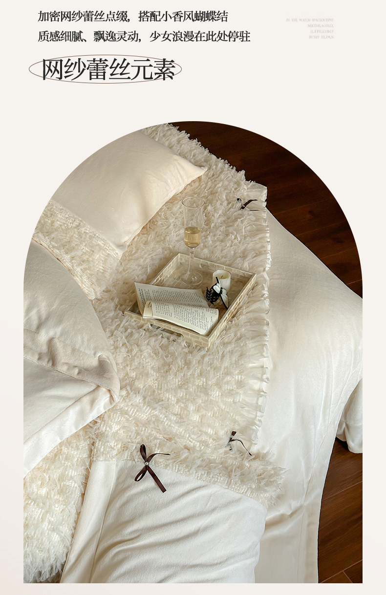 (总)名品优仓 2024新款高克重牛奶绒蕾丝四件套-爱瑞丝的梦