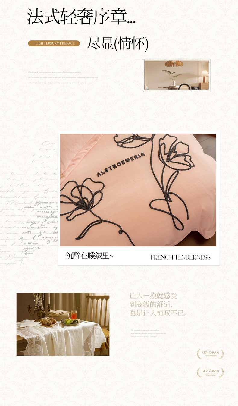 (总)名品优仓 2025新款240克奶肤绒刺绣四件套-丽莎,丽莎-粉色,丽莎-姜黄,丽莎-米杏,丽莎-沐粉,丽莎-深卡