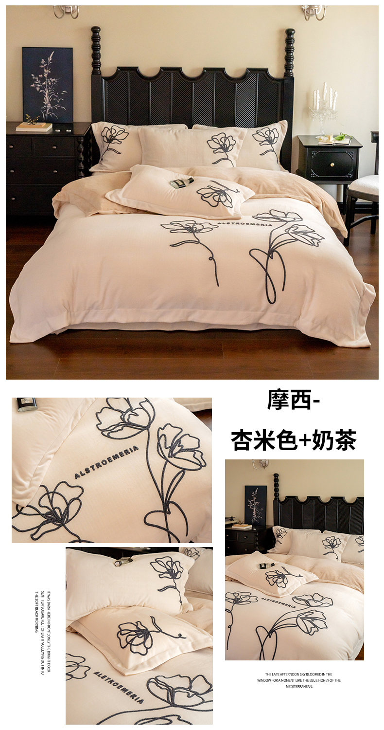 (总)名品优仓 2025新款220克牛奶绒绣花四件套-珊瑚,珊瑚-宝石蓝,珊瑚-粉色,珊瑚-姜黄,珊瑚-米杏,珊瑚-沫粉,珊瑚-杏粉