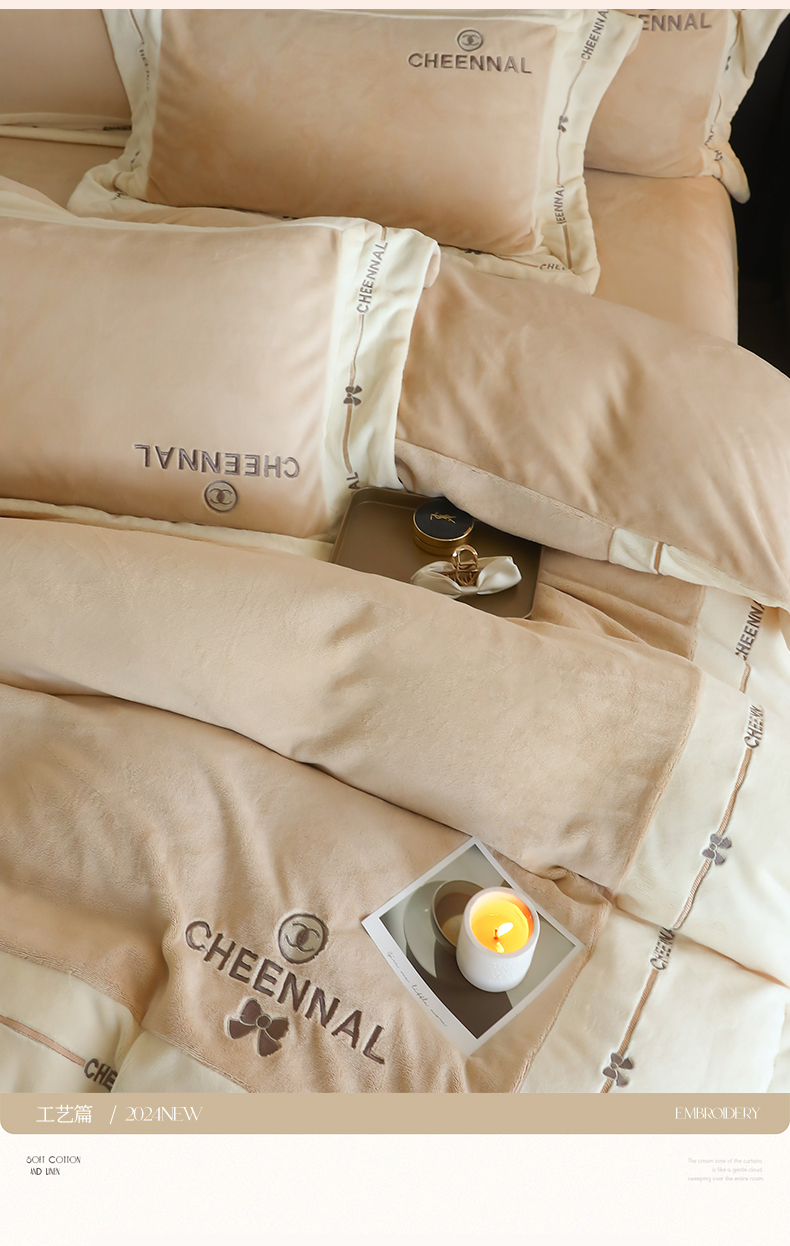 名品优仓 2024新款高克重高克重牛奶绒四件套-希娜尔 希娜尔-杏咖