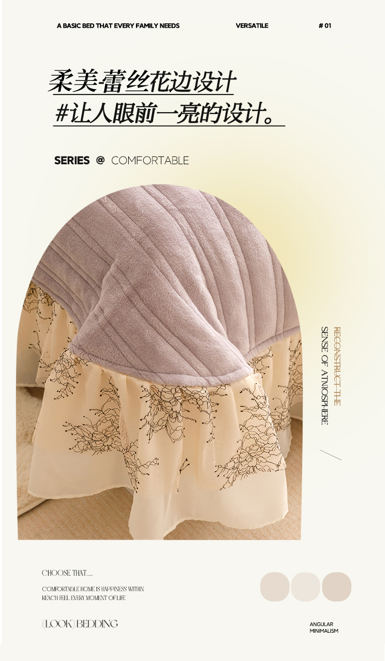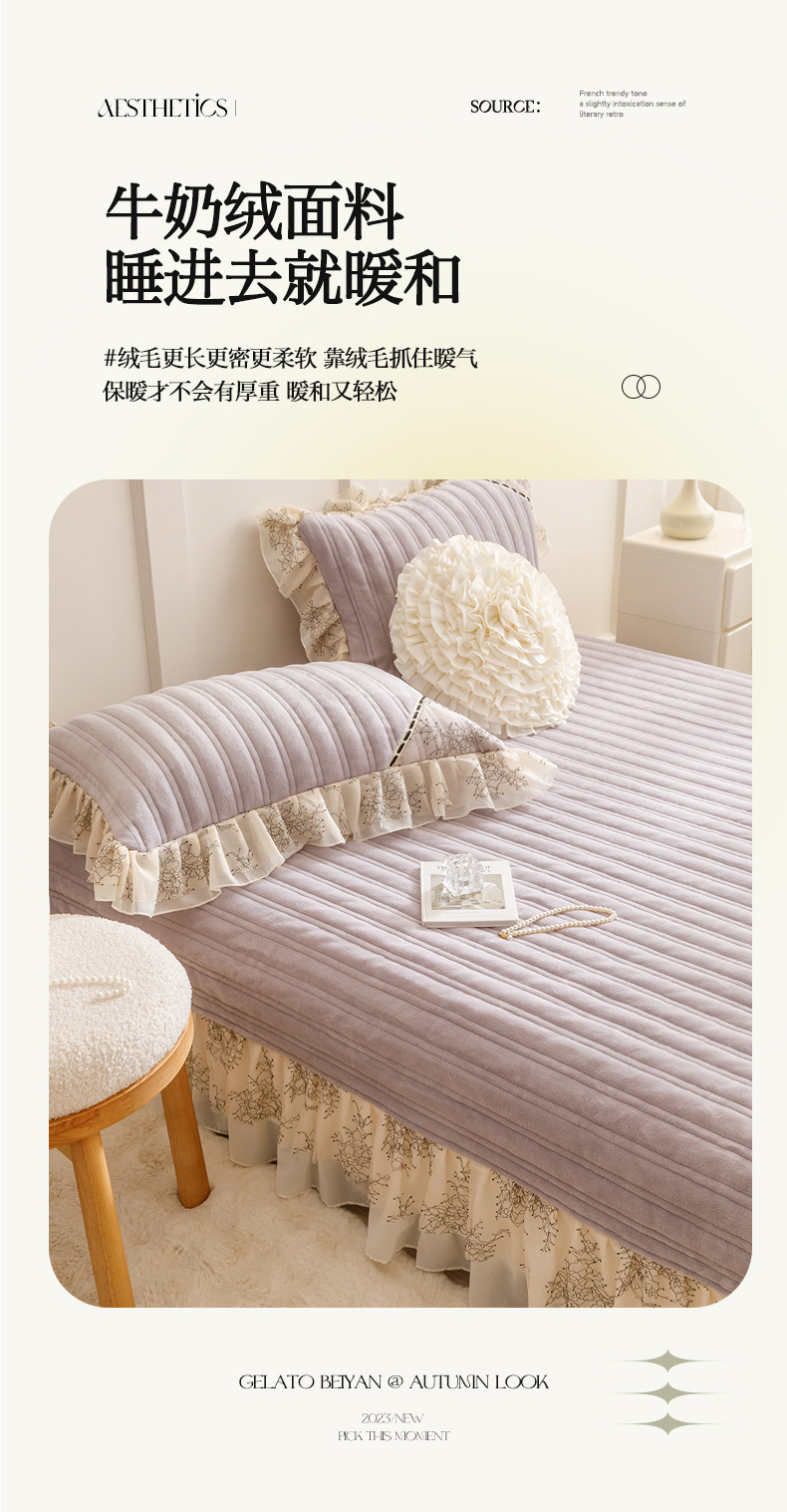 (总)胜权家纺 2024新款小香风牛奶绒夹棉床盖四件套-芭莎系列,芭莎-粉,芭莎-绿,芭莎-紫,芭莎-米