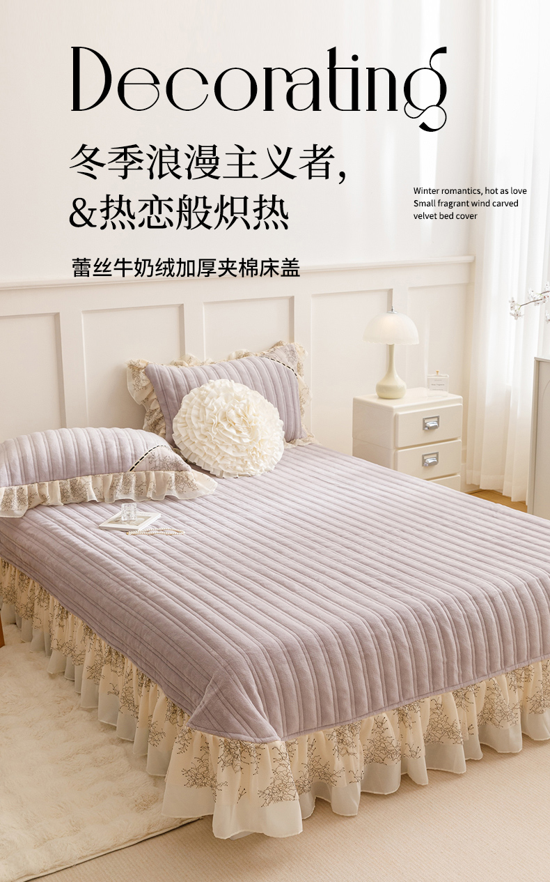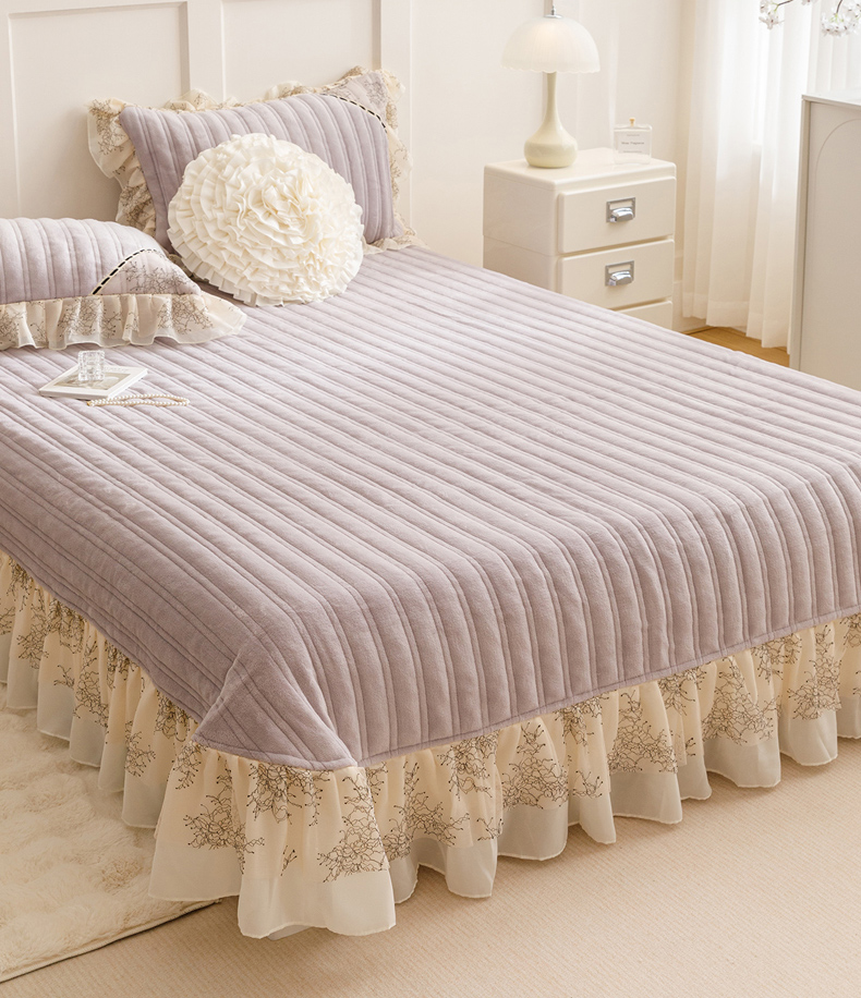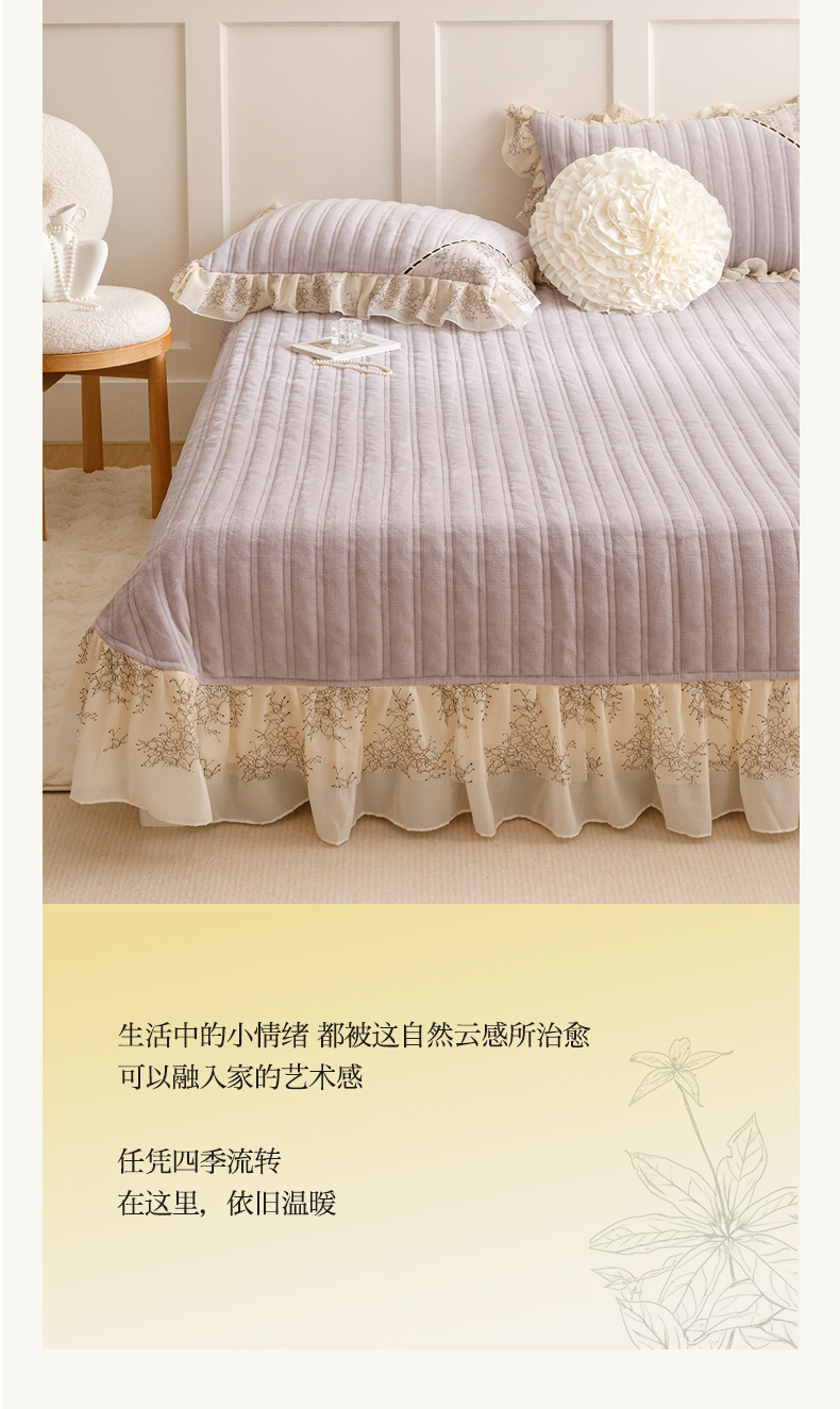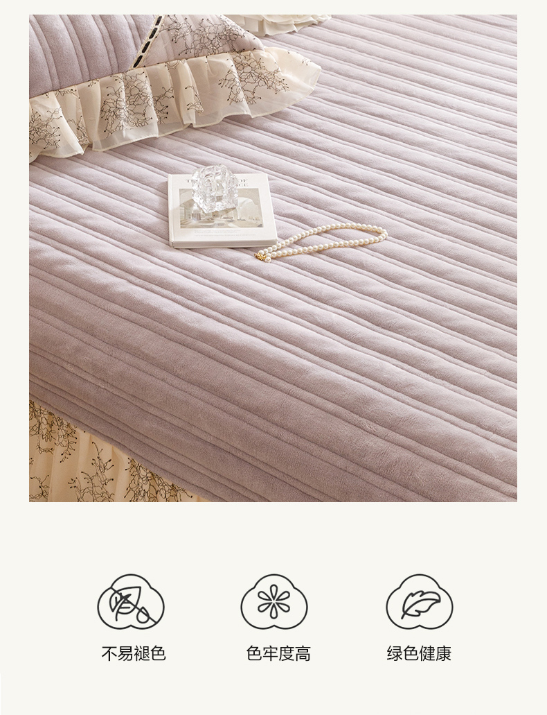 商品名称:胜权家纺 2024新款小香风牛奶绒夹棉单品床盖-芭莎系列 芭莎-紫