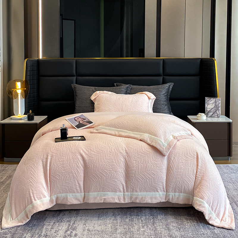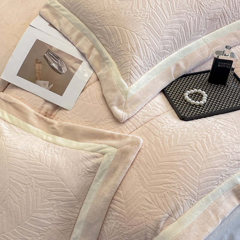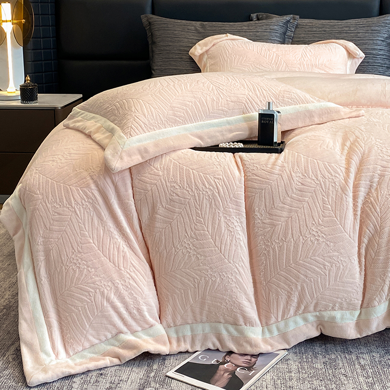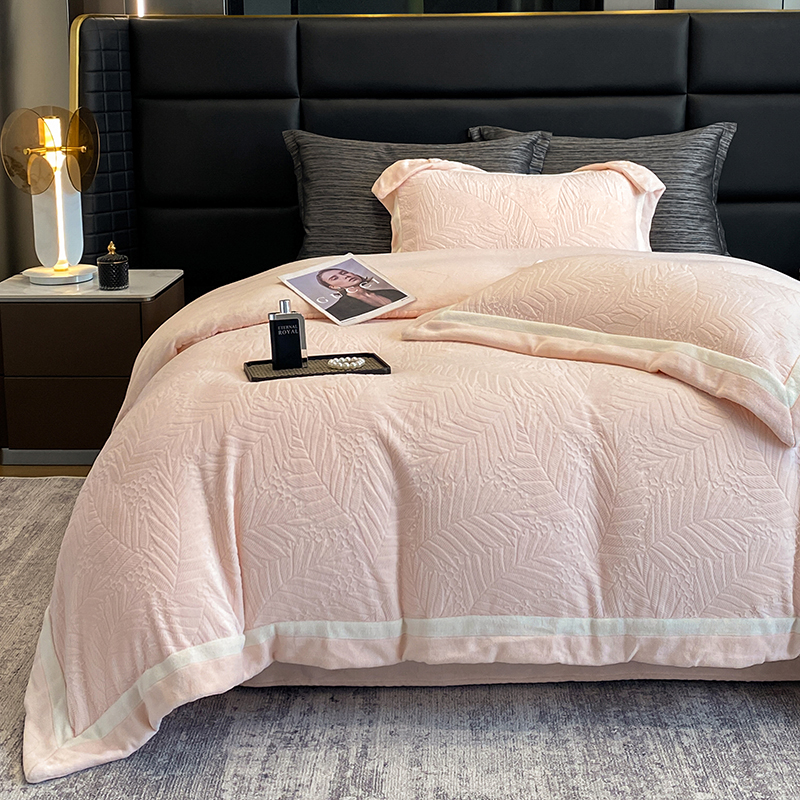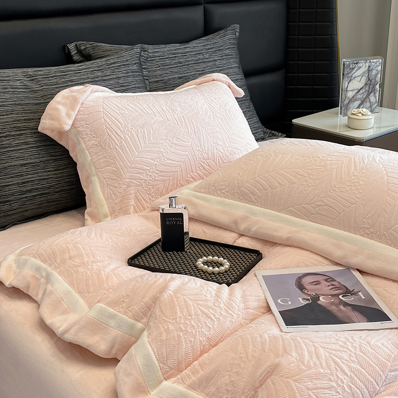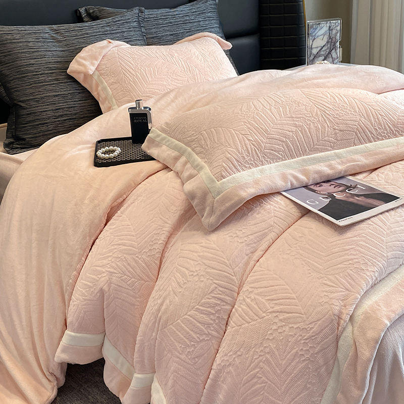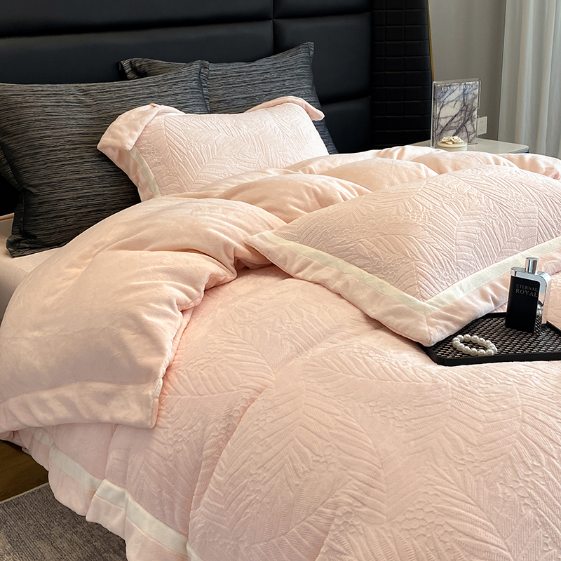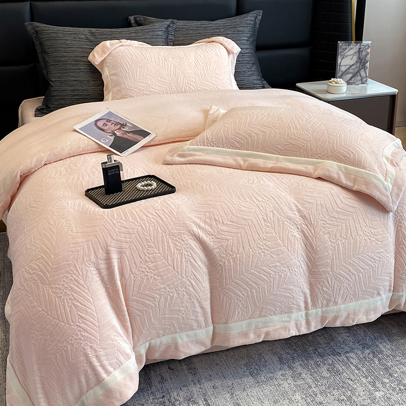 商品名称:2025新款秋冬AB版250克全消光立体雕花烂花牛奶绒双拼角四件套-一叶知秋 一叶知秋 白桃粉