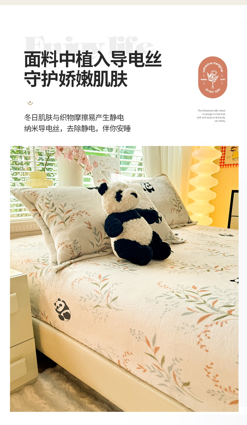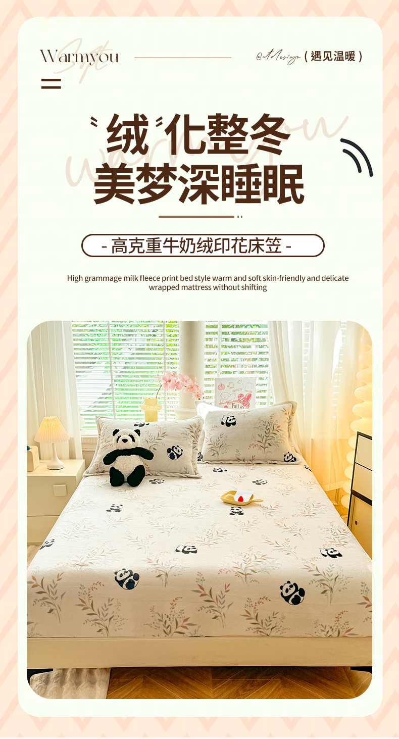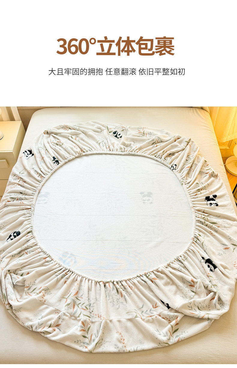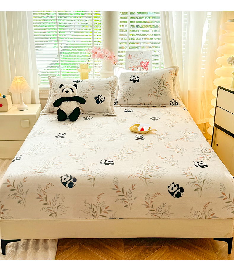 妖妖家纺 2024新款200克牛奶绒单床笠 panda乐园