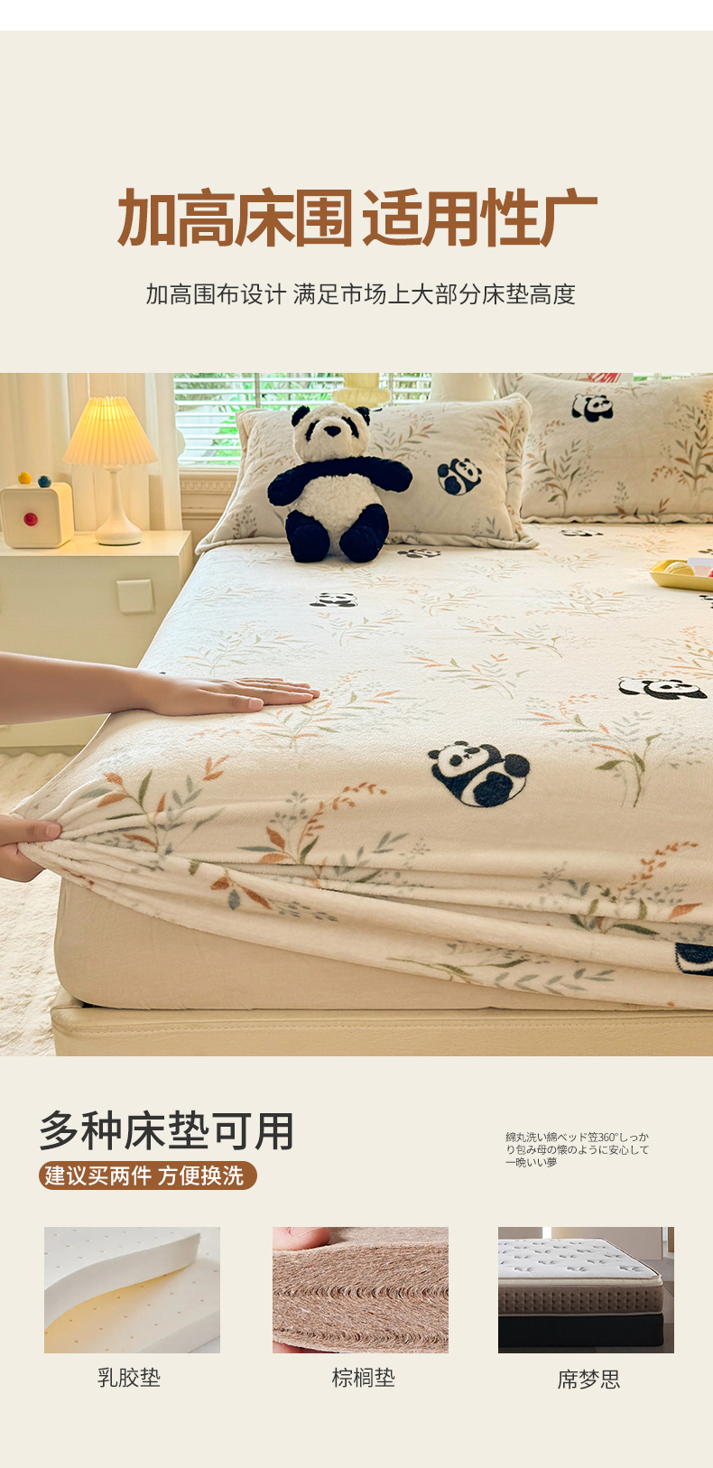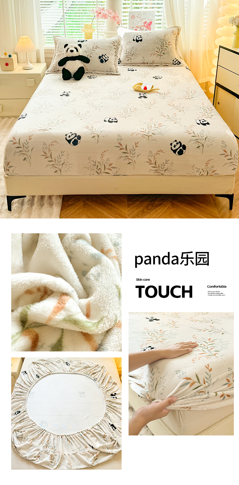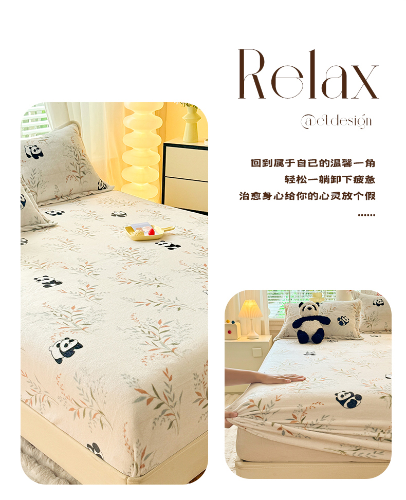 妖妖家纺 2024新款200克牛奶绒单床笠 panda乐园