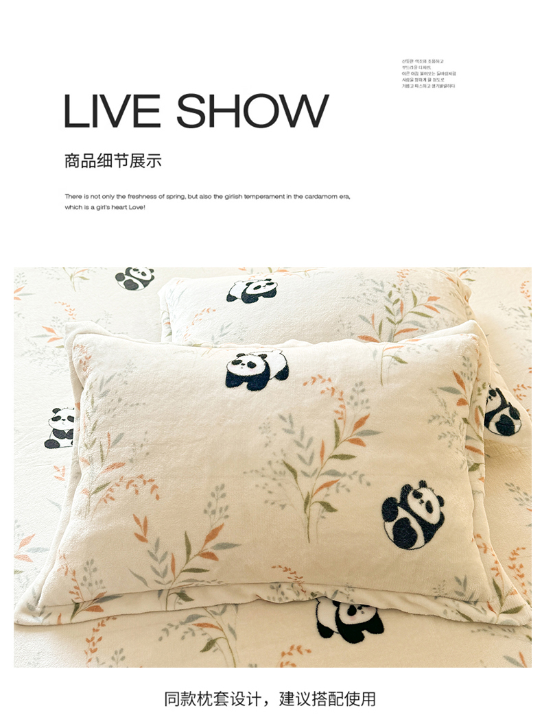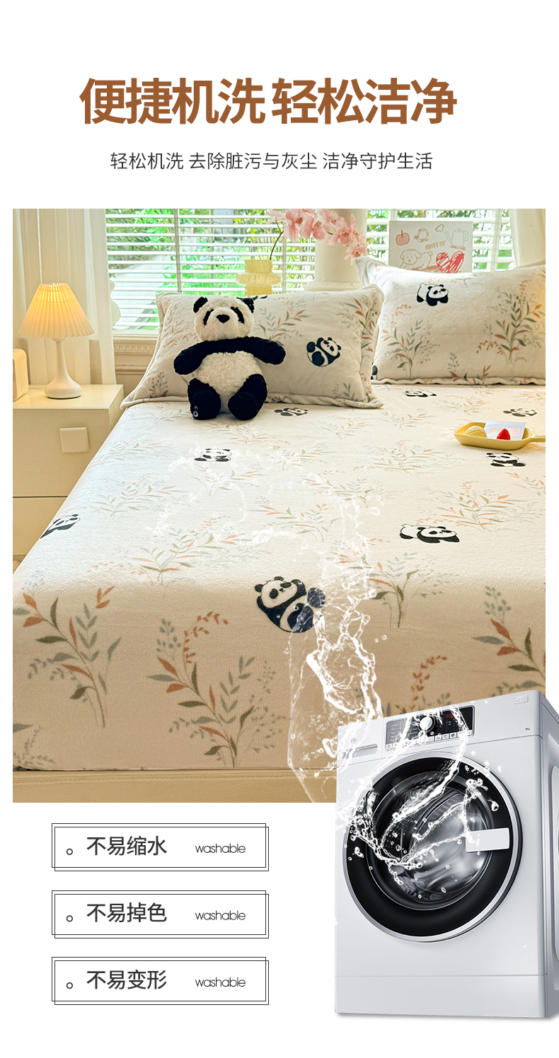 商品名称:妖妖家纺 2024新款200克牛奶绒单床笠 panda乐园