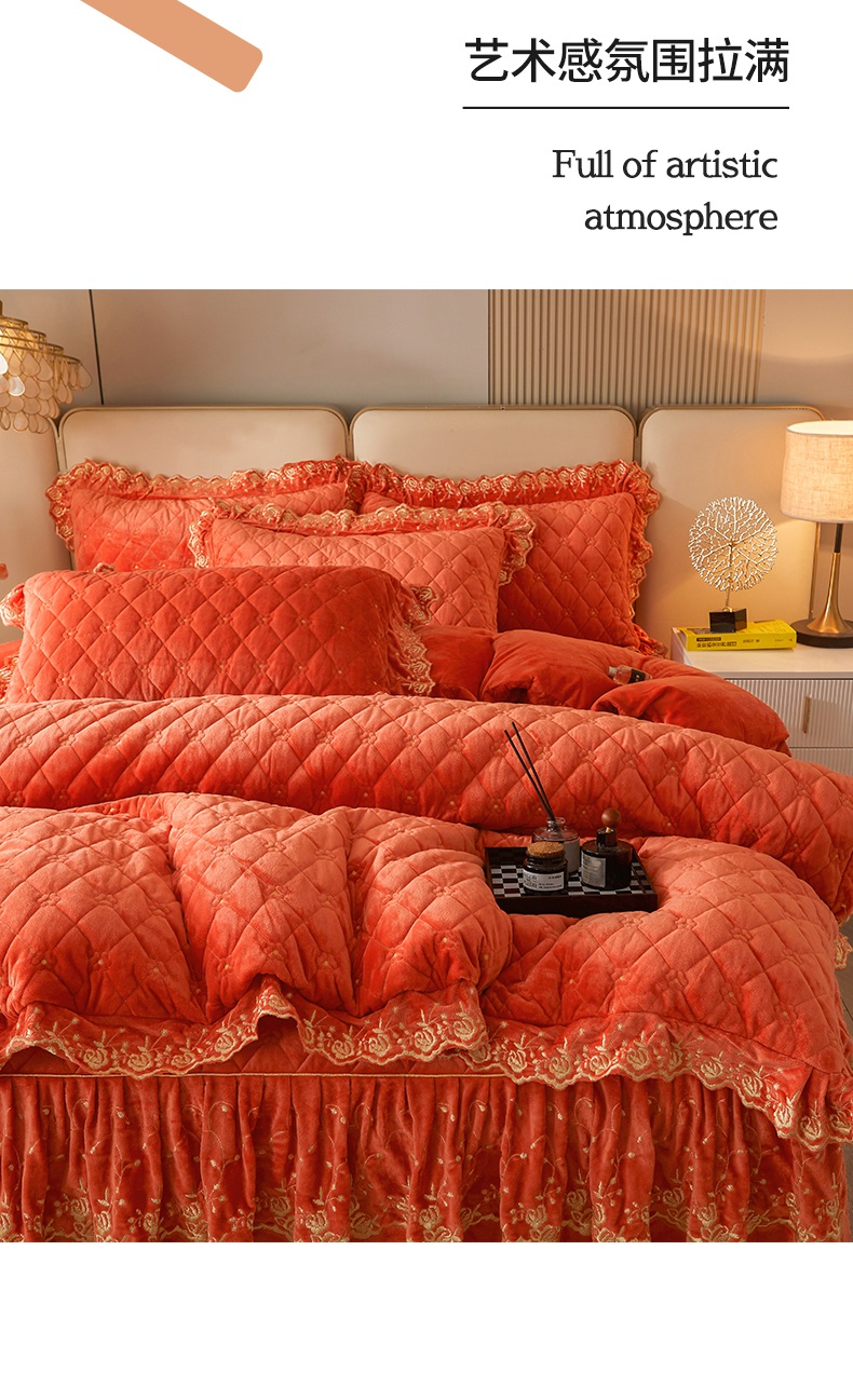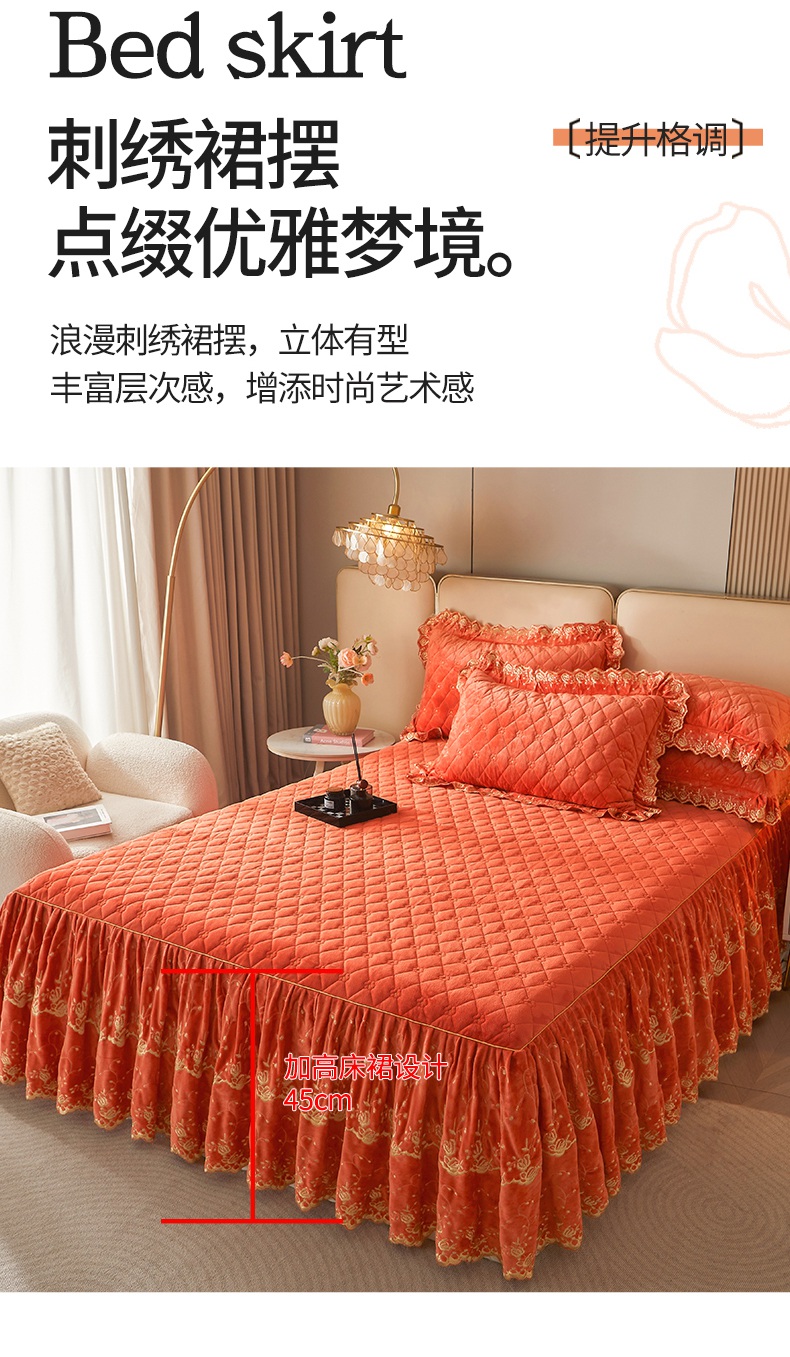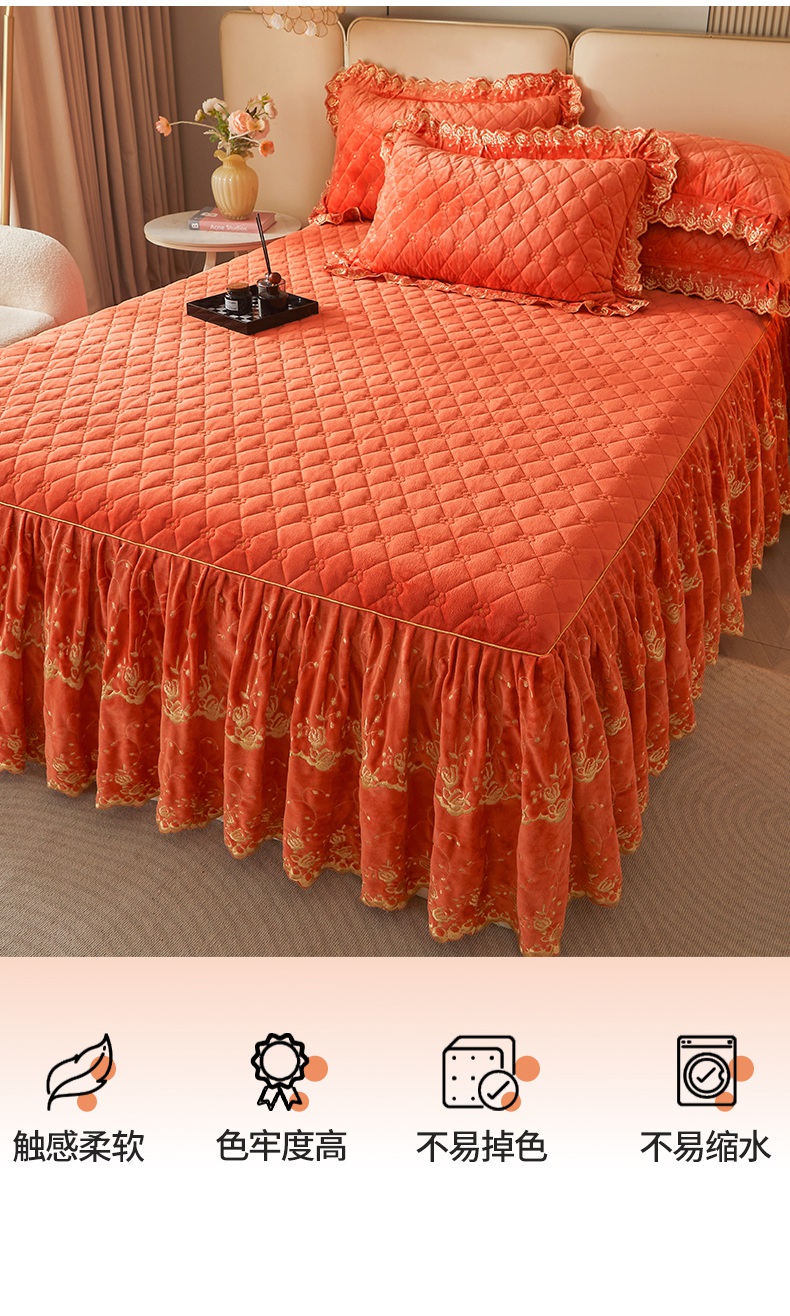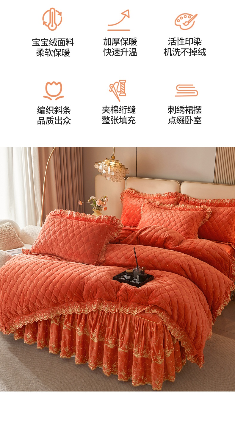 当前位置: 91家纺网 > 商品网购 > 床品套件 > 四件套 > 其它四件套 > 罗艺轩 2024新款加厚宝宝绒夹棉床裙四件套-梦幻星辰 爱玛橙