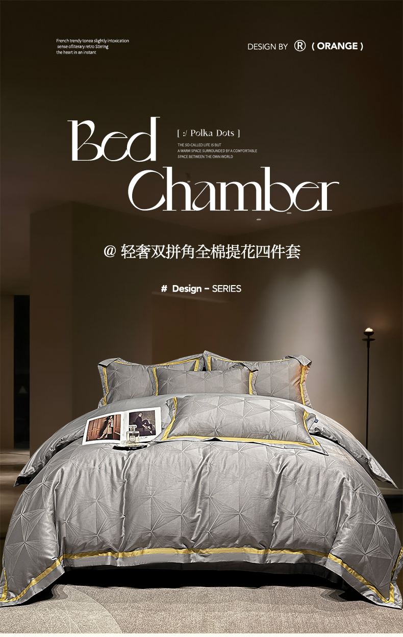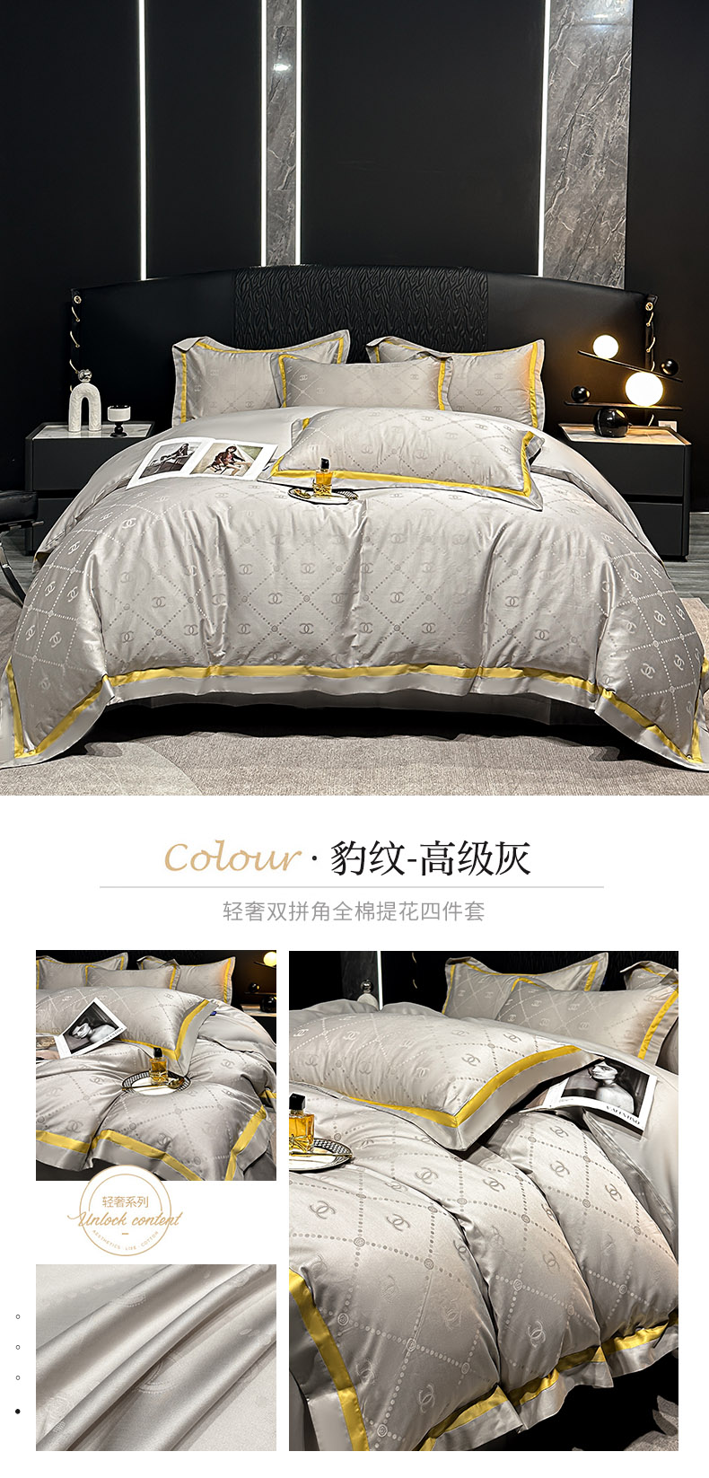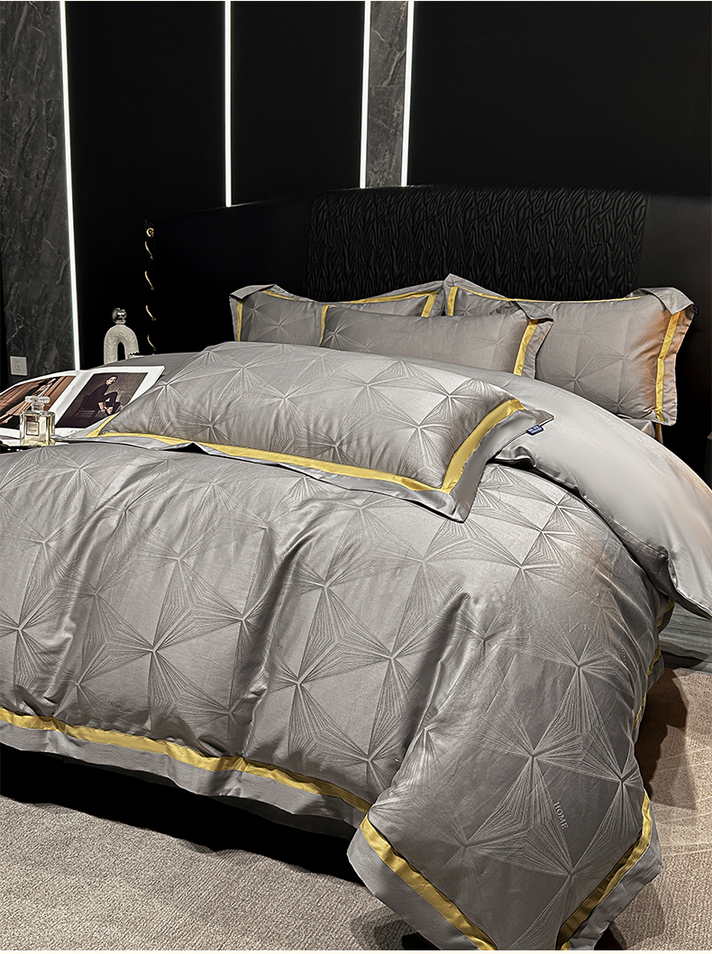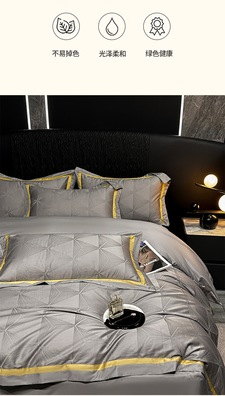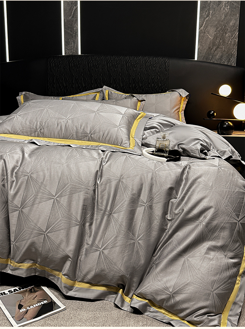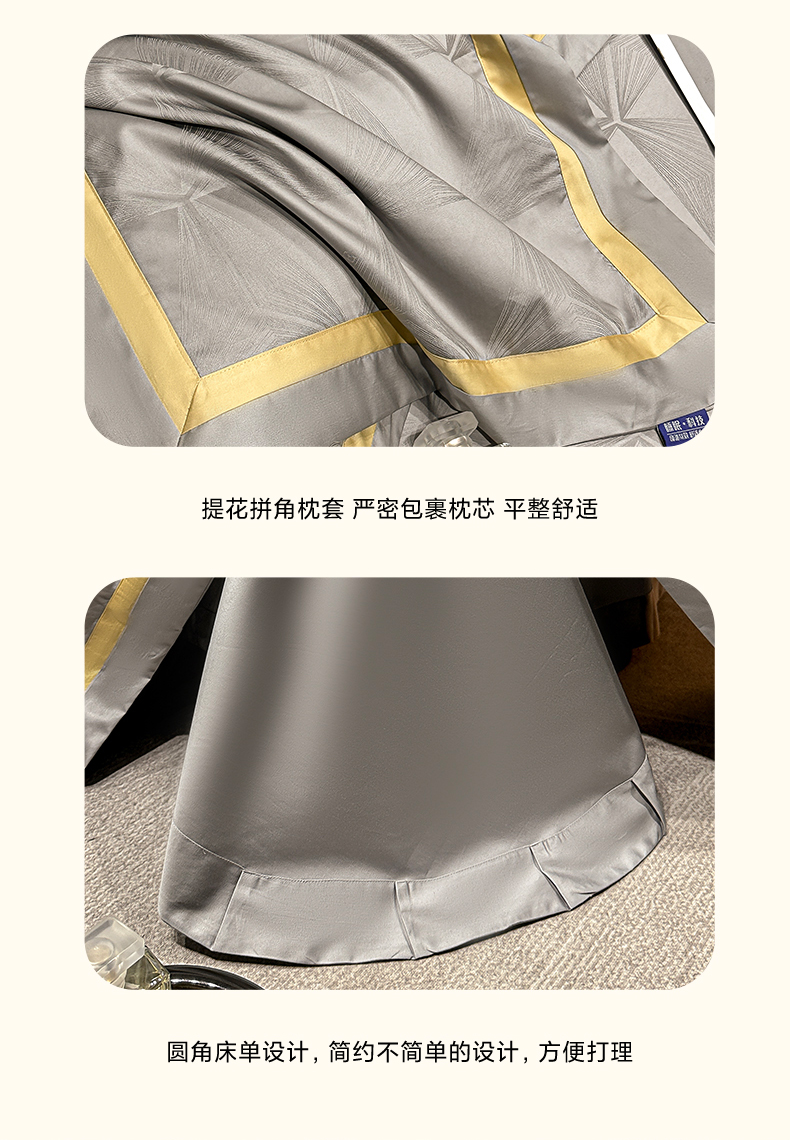 商品名称:雲归梦 2024新款轻奢双拼角全棉提花四件套 格拉斯-黎明灰