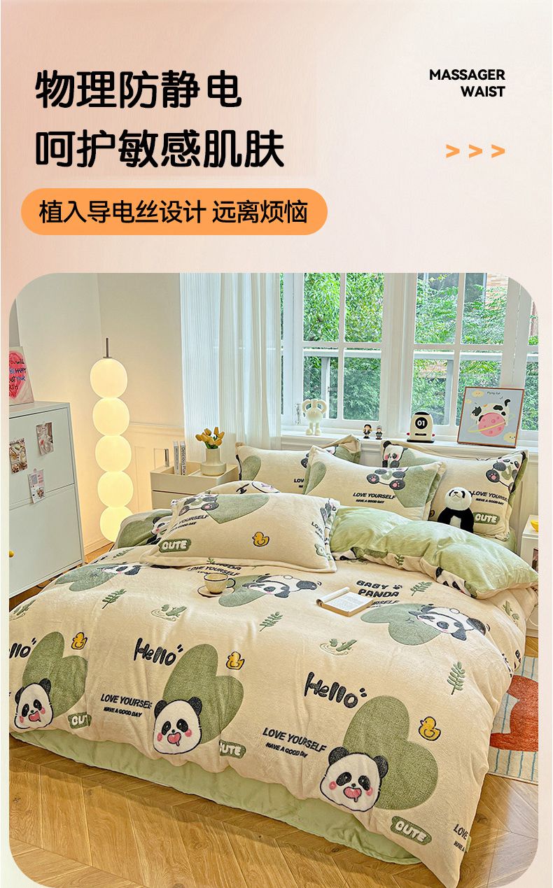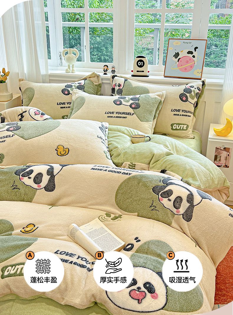 当前位置: 91家纺网 > 商品网购 > 床品套件 > 四件套 > 牛奶绒四件套 > 韩巢家纺 2024新款加厚雪花绒牛奶绒珊瑚绒四件套-新品(提供卖家秀) 快乐熊猫