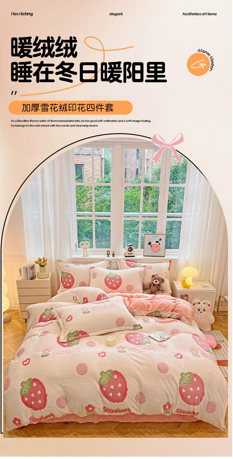 当前位置: 91家纺网 > 商品网购 > 床品套件 > 四件套 > 牛奶绒四件套 > 韩巢家纺 2024新款加厚雪花绒牛奶绒珊瑚绒四件套-新品(提供卖家秀) 甜蜜