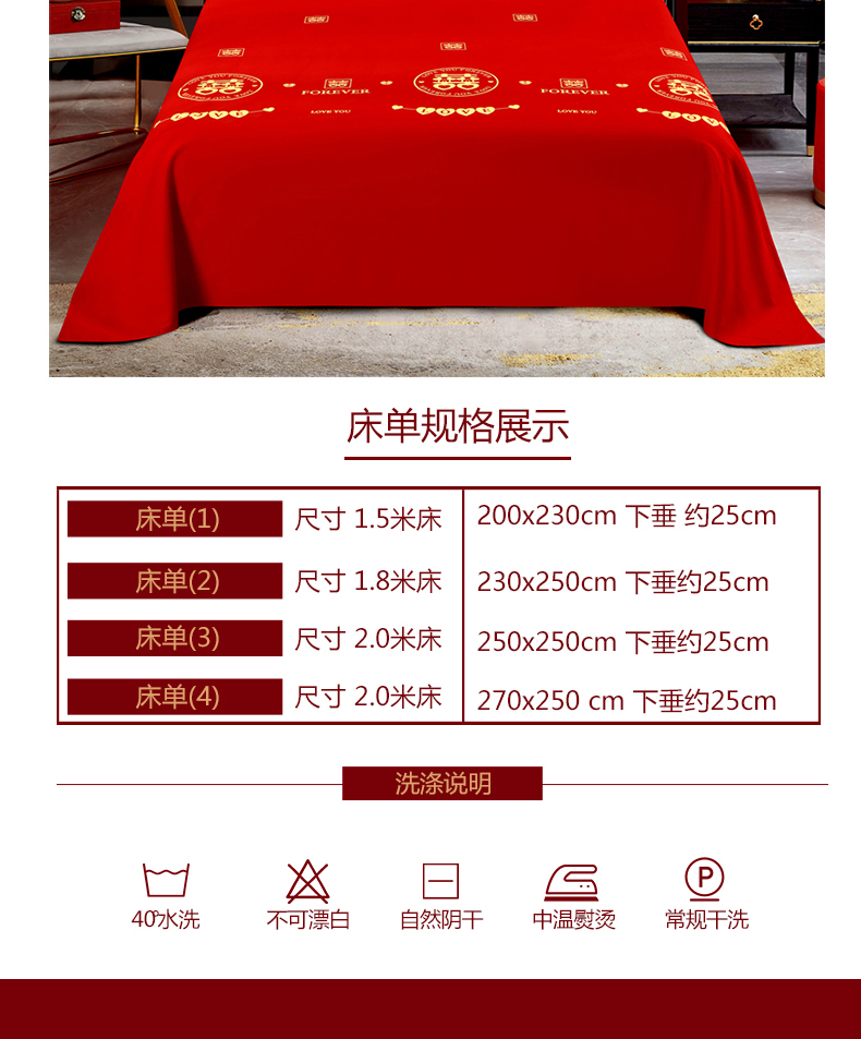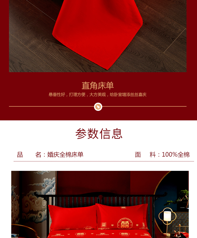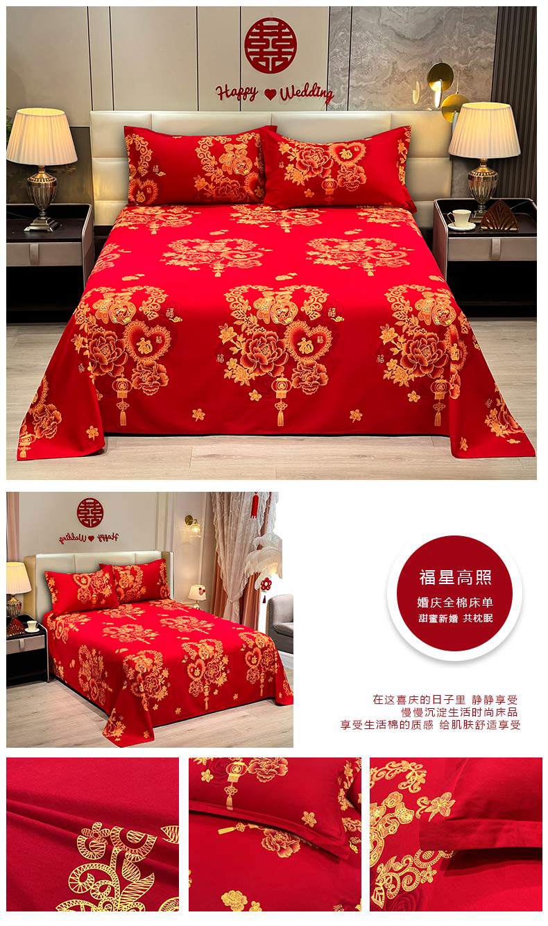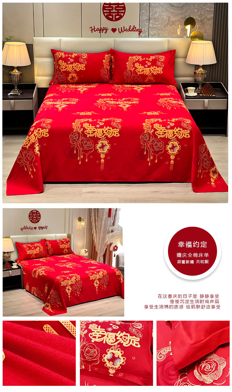 (总)居美良品 2025新款大红色床单全棉磨毛床单结婚婚庆纯棉床单,花好月圆,花开富贵,浪漫情缘,龙凤呈祥,相亲相爱,幸福时刻,永结同心,中国结