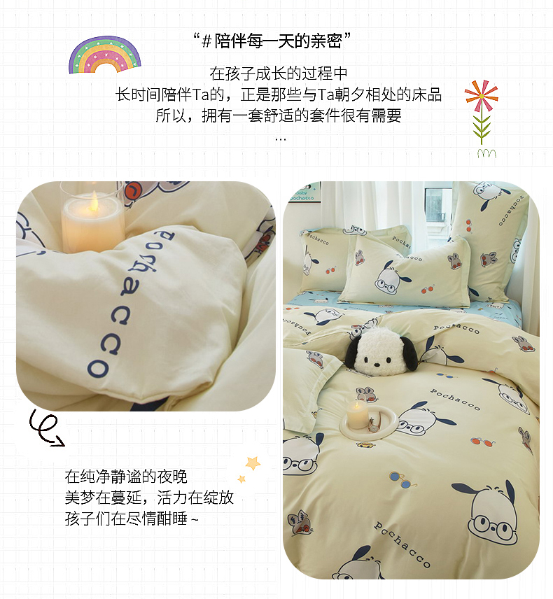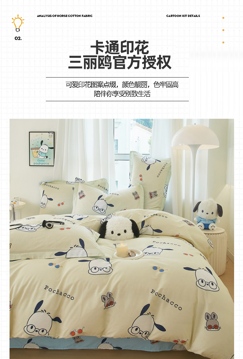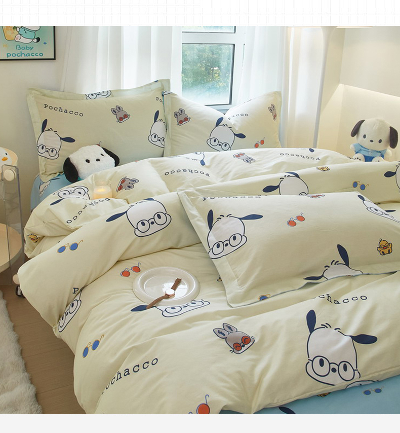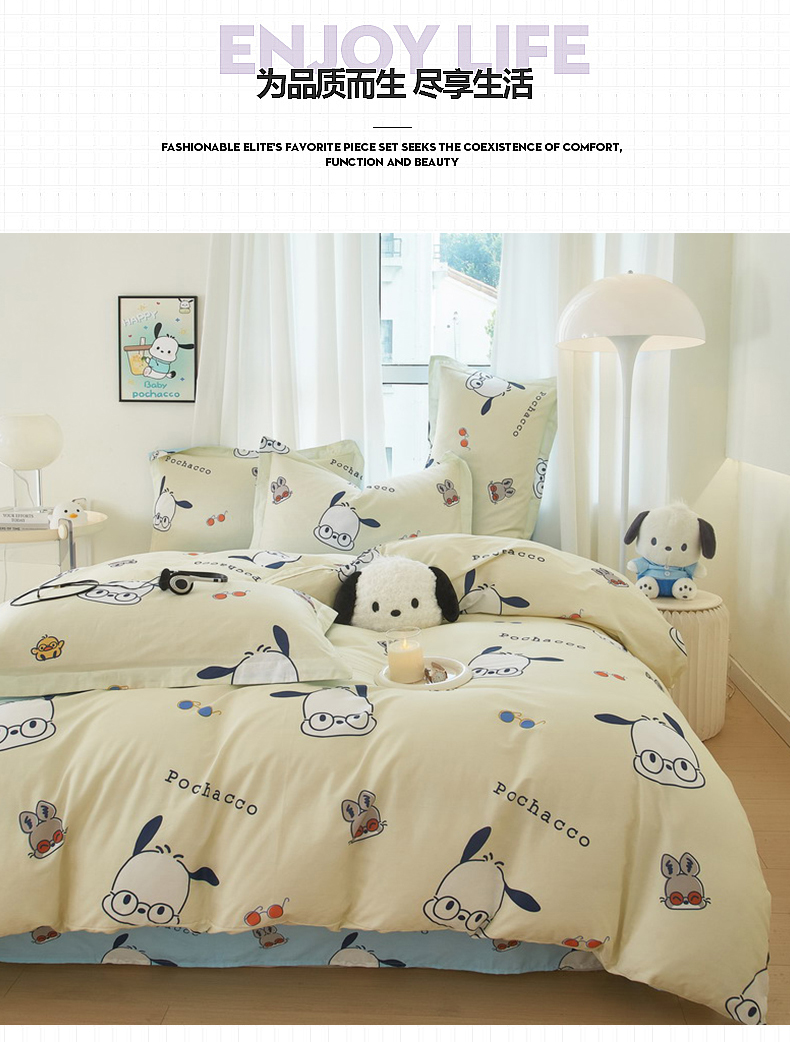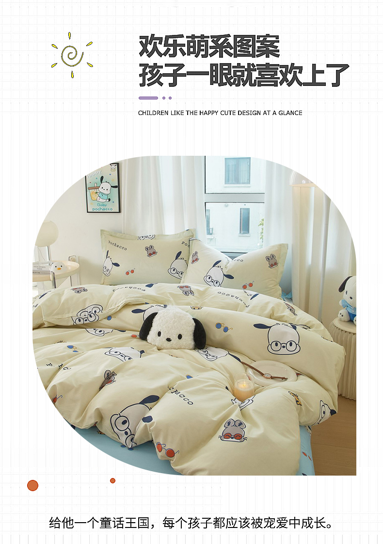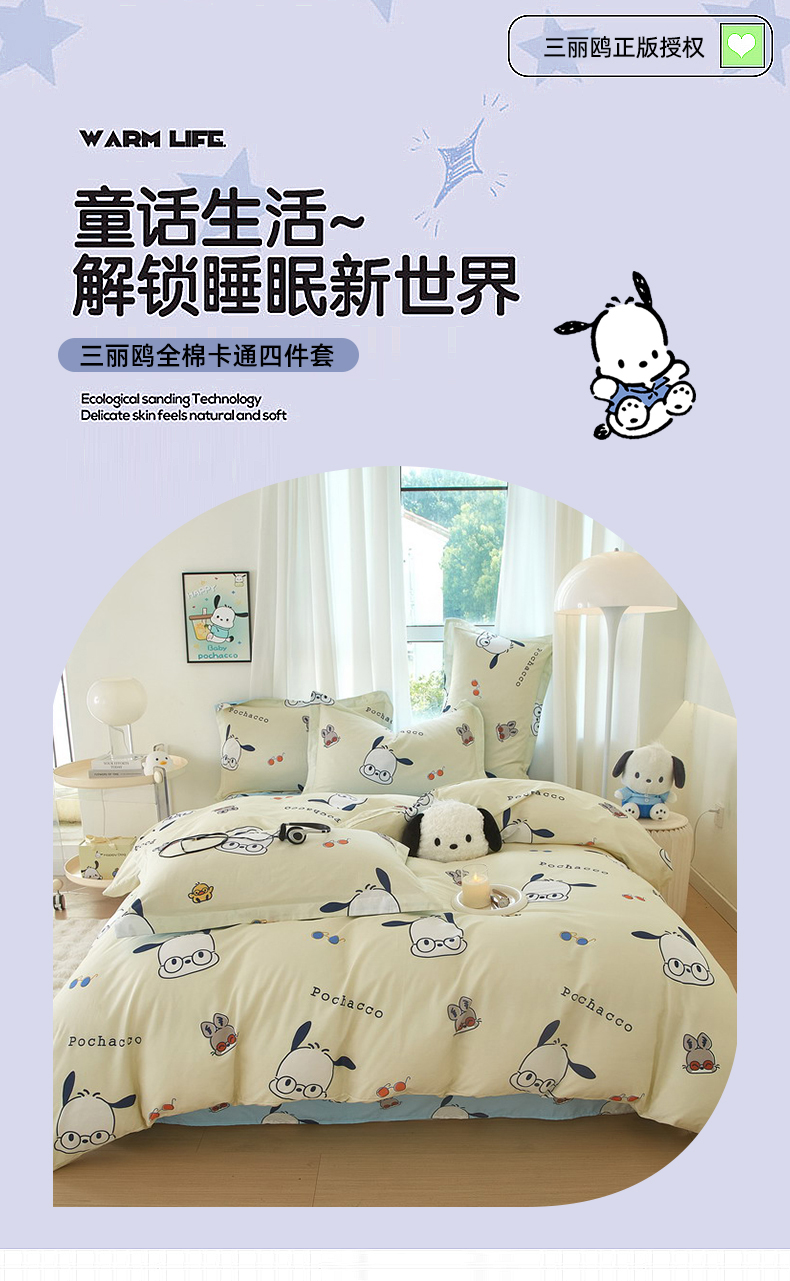 当前位置: 91家纺网 > 商品网购 > 床品套件 > 四件套 > 全棉普通四件套 > 蘭菲家纺 2024新款全棉小版卡通三丽鸥四件套 大眼睛狗.米