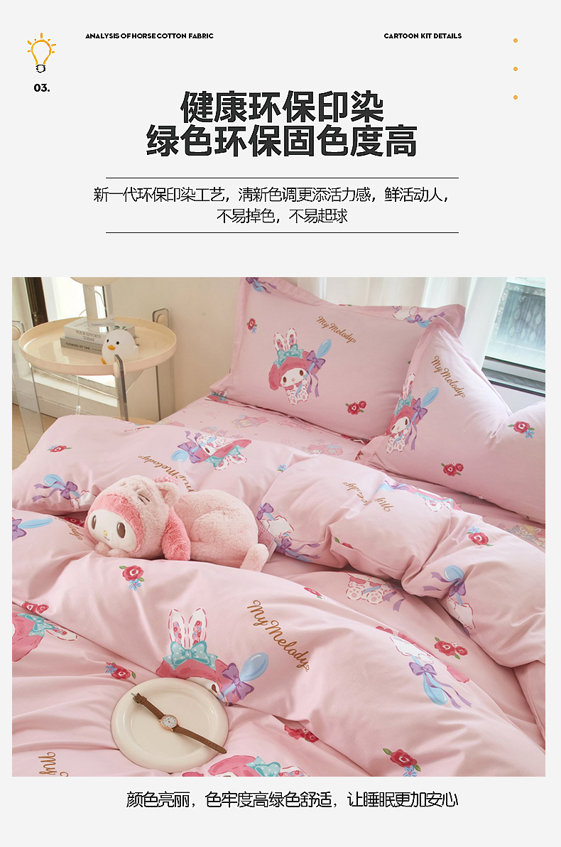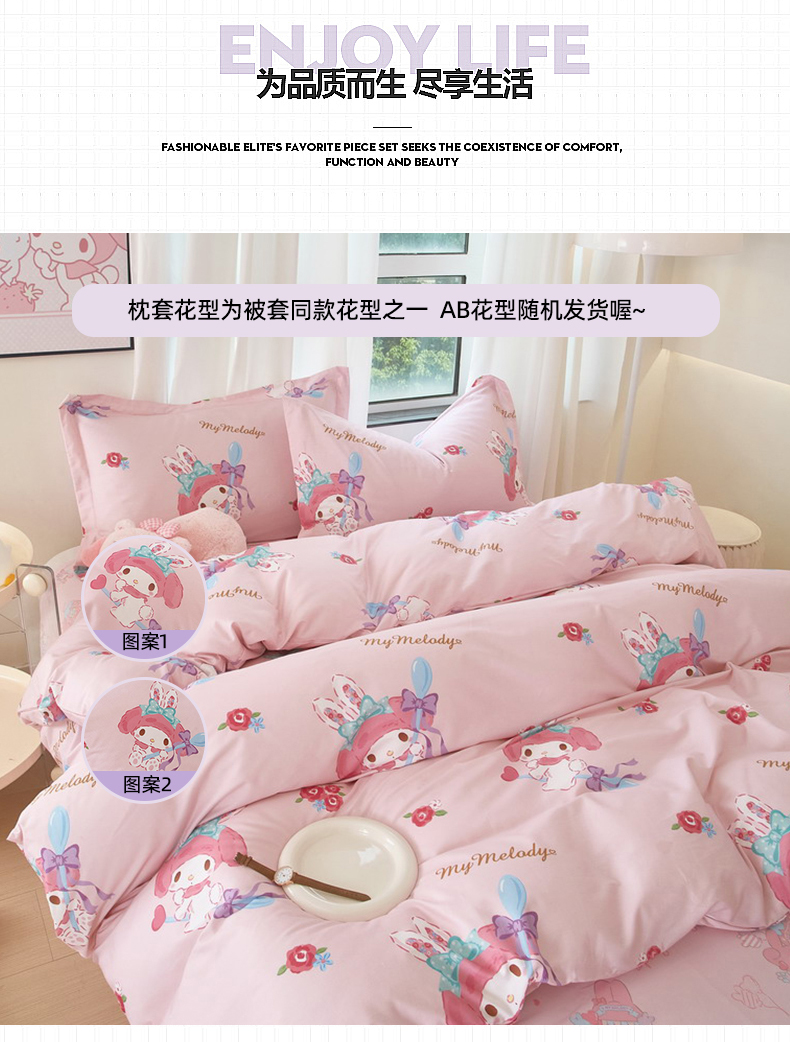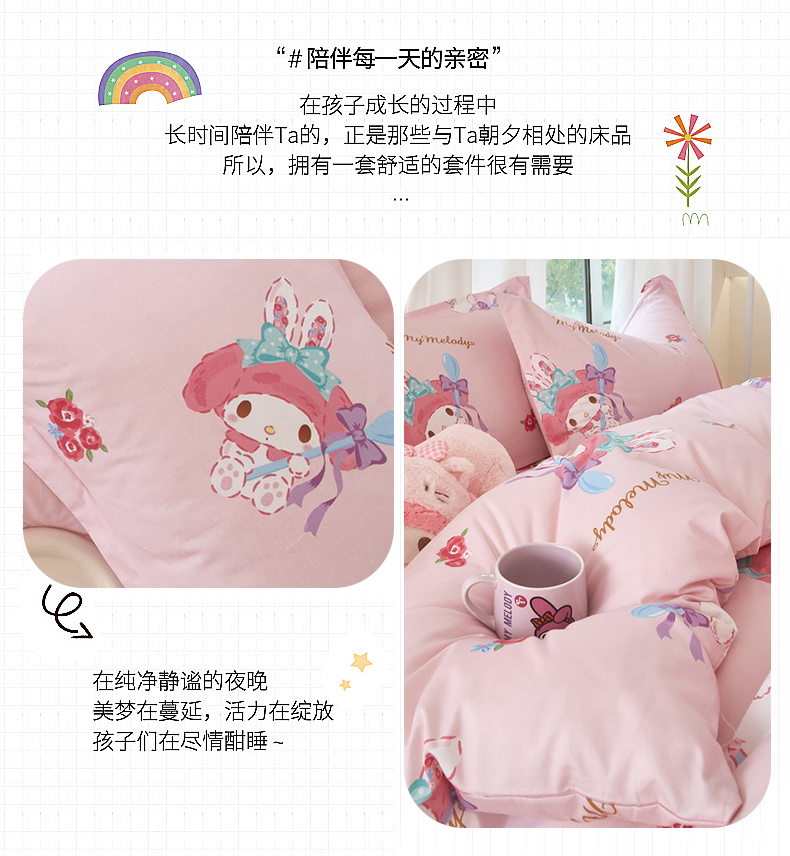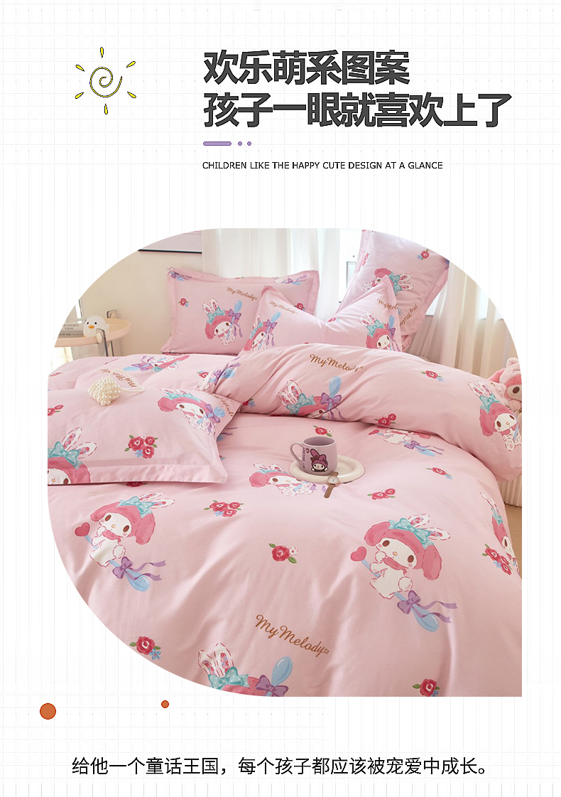 当前位置: 91家纺网 > 商品网购 > 床品套件 > 四件套 > 全棉普通四件套 > 蘭菲家纺 2024新款全棉小版卡通三丽鸥四件套 小美(圆)