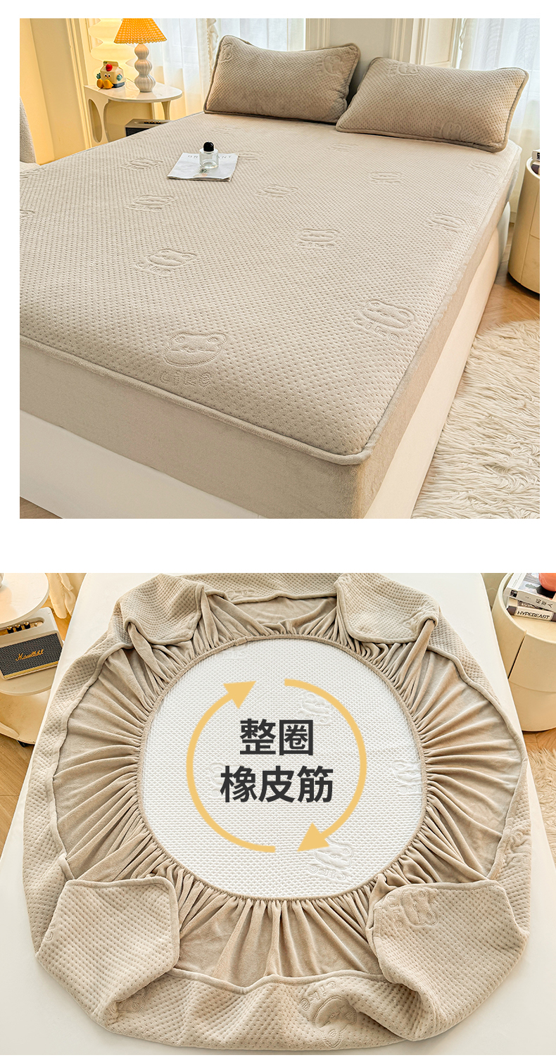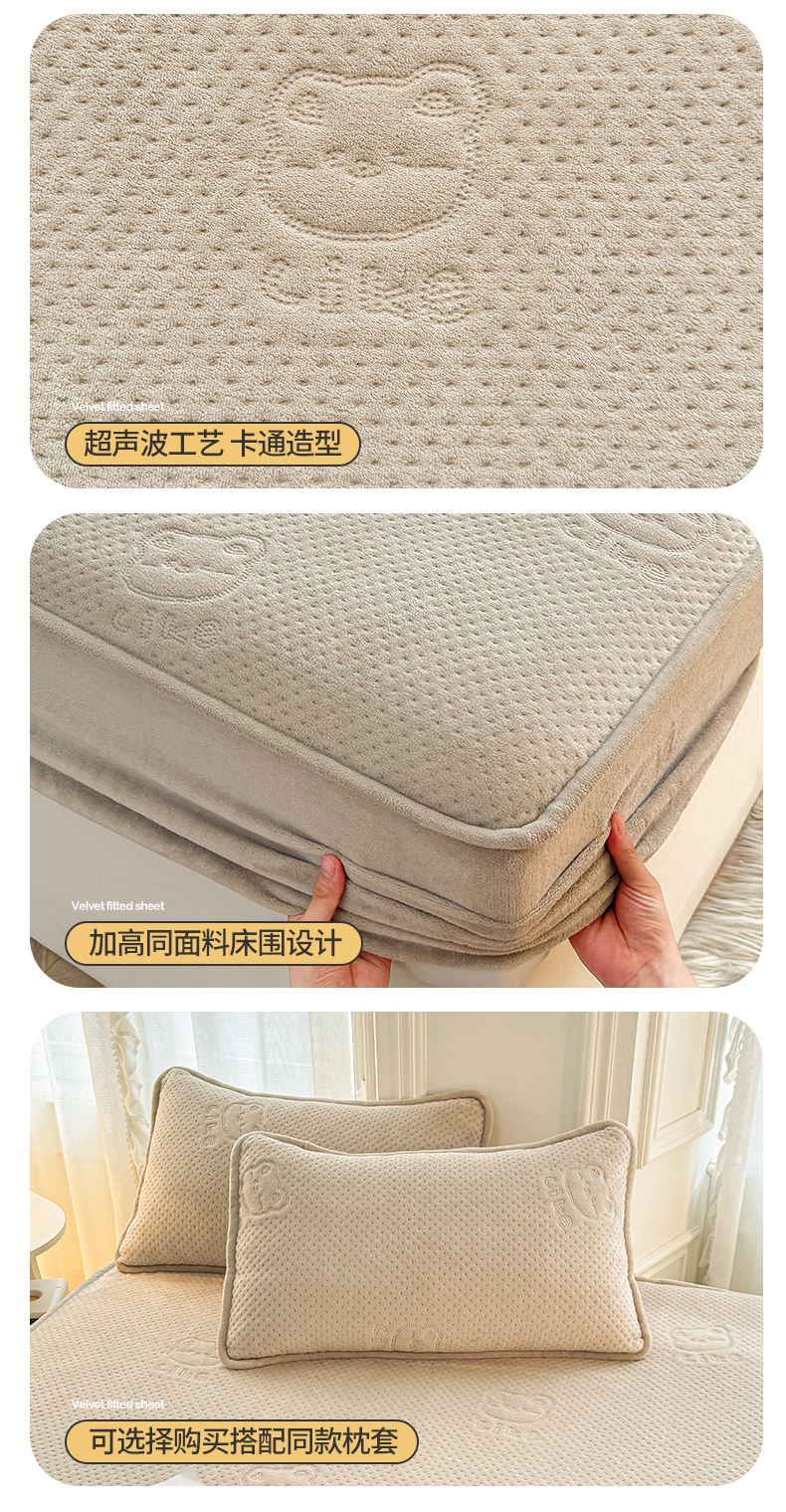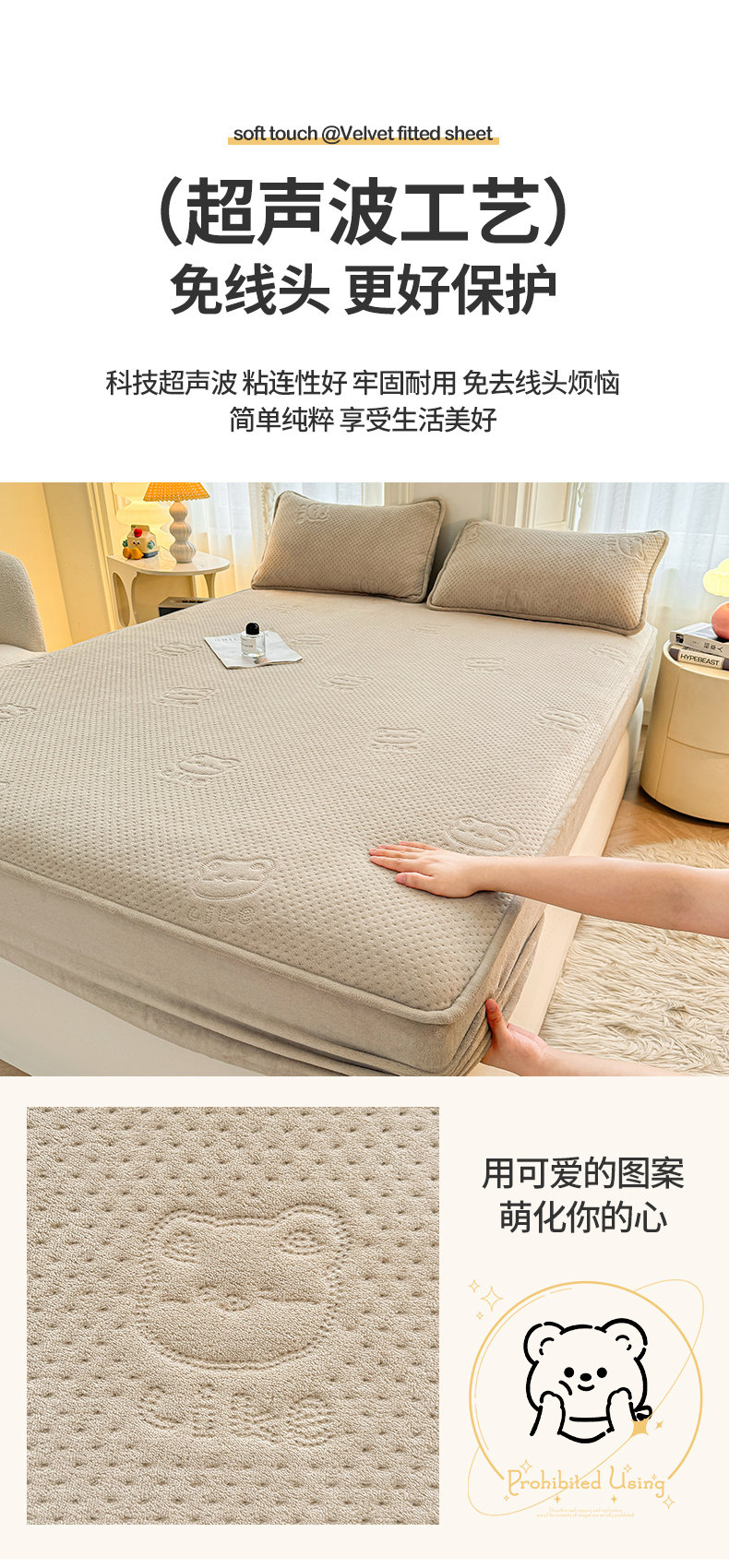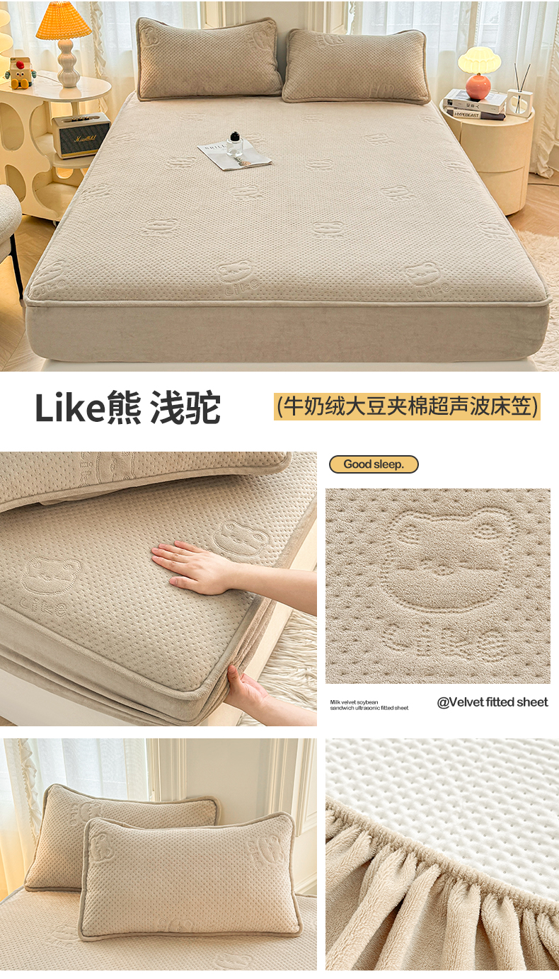 商品名称:居眠 2024新款牛奶绒超声波like小熊夹棉大豆床笠 Like熊-浅驼