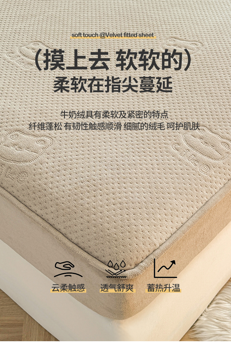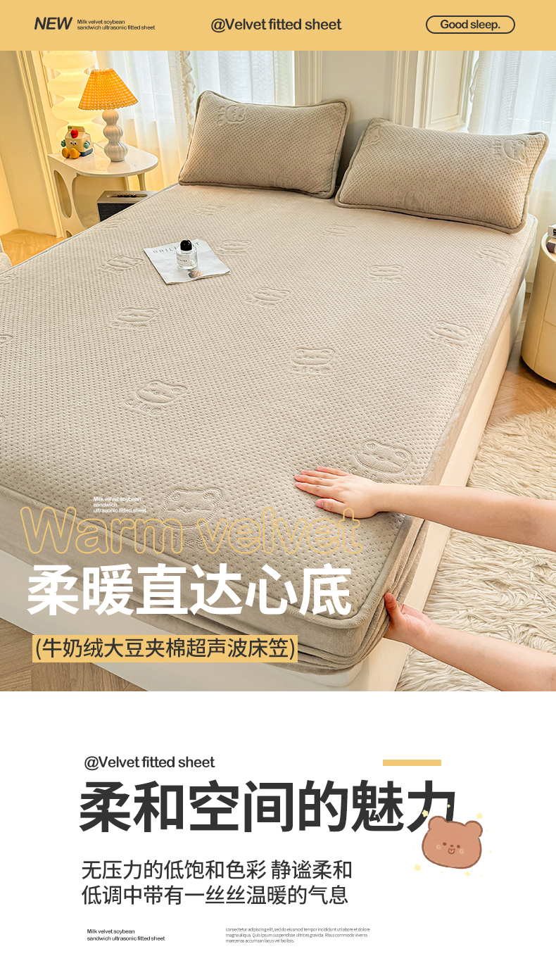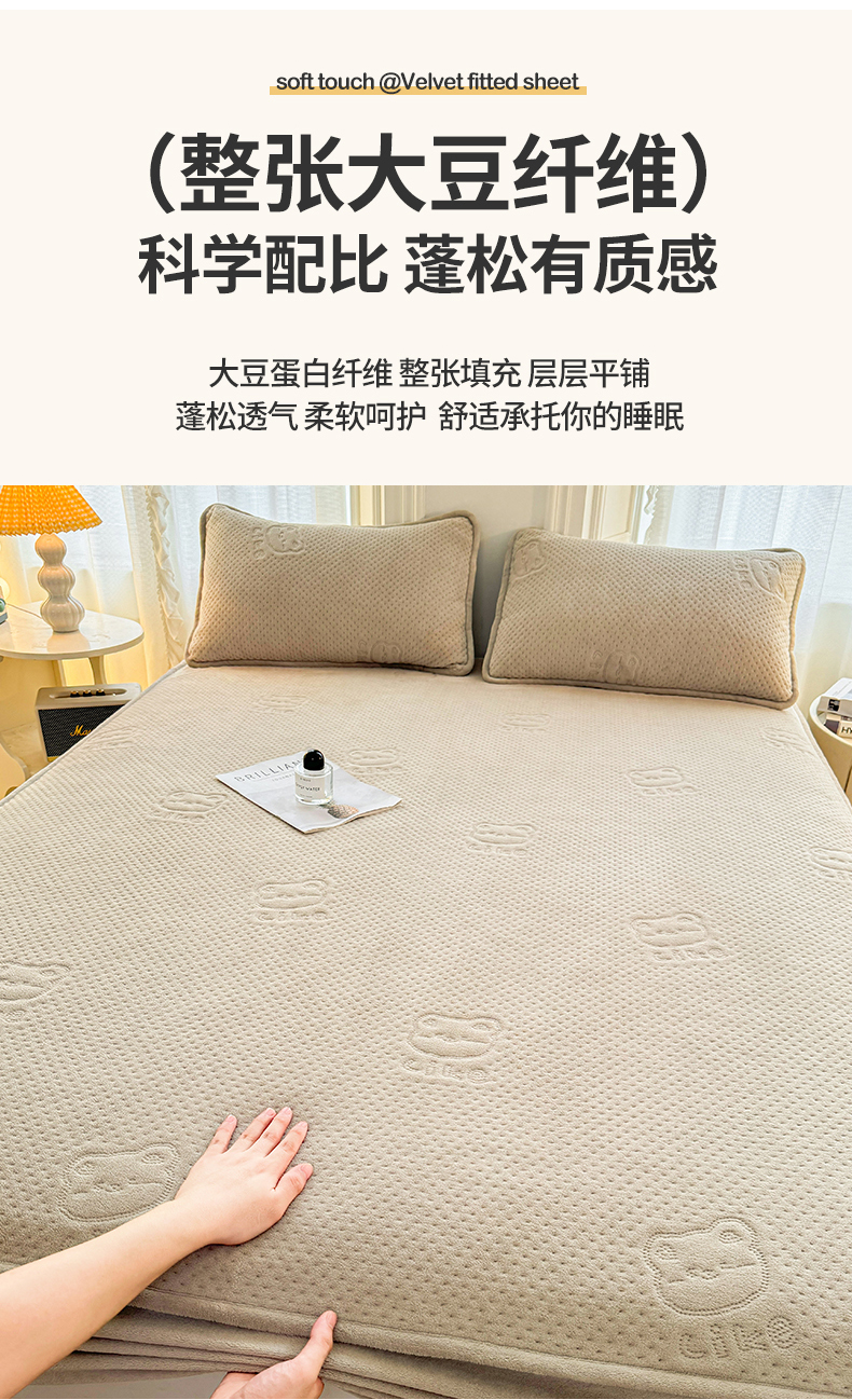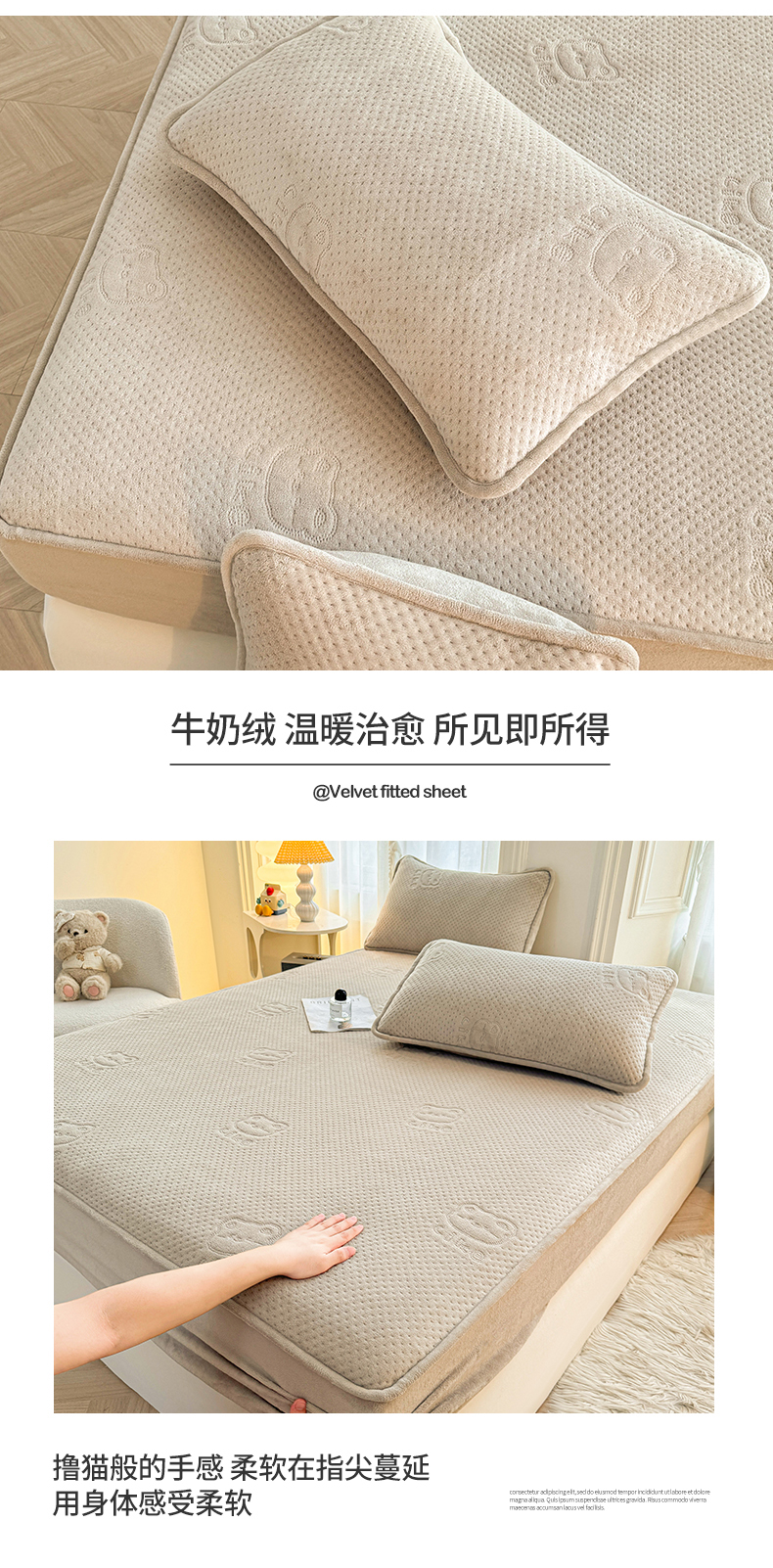 商品名称:居眠 2024新款牛奶绒超声波like小熊夹棉大豆床笠 Like熊-浅驼