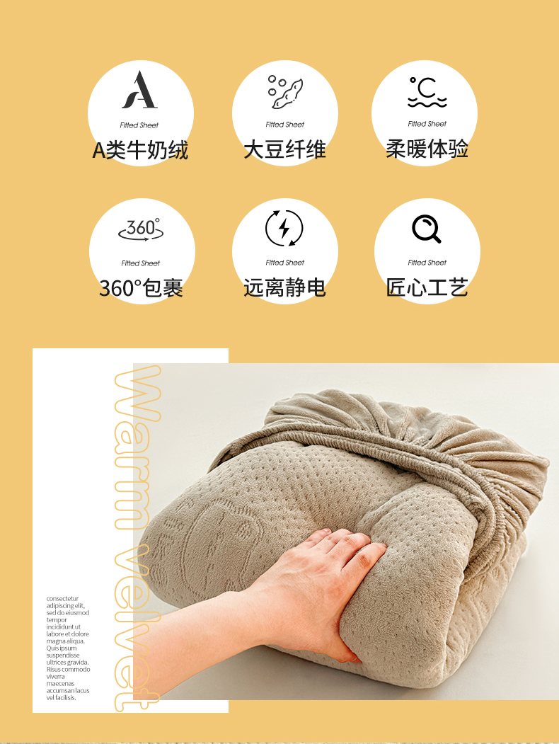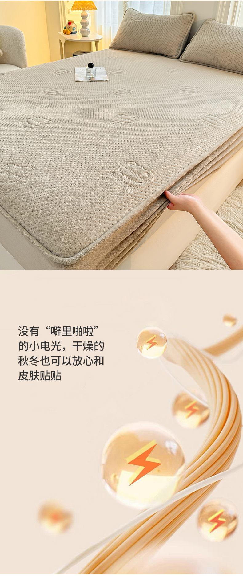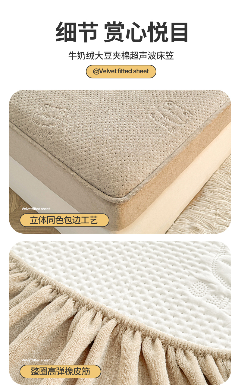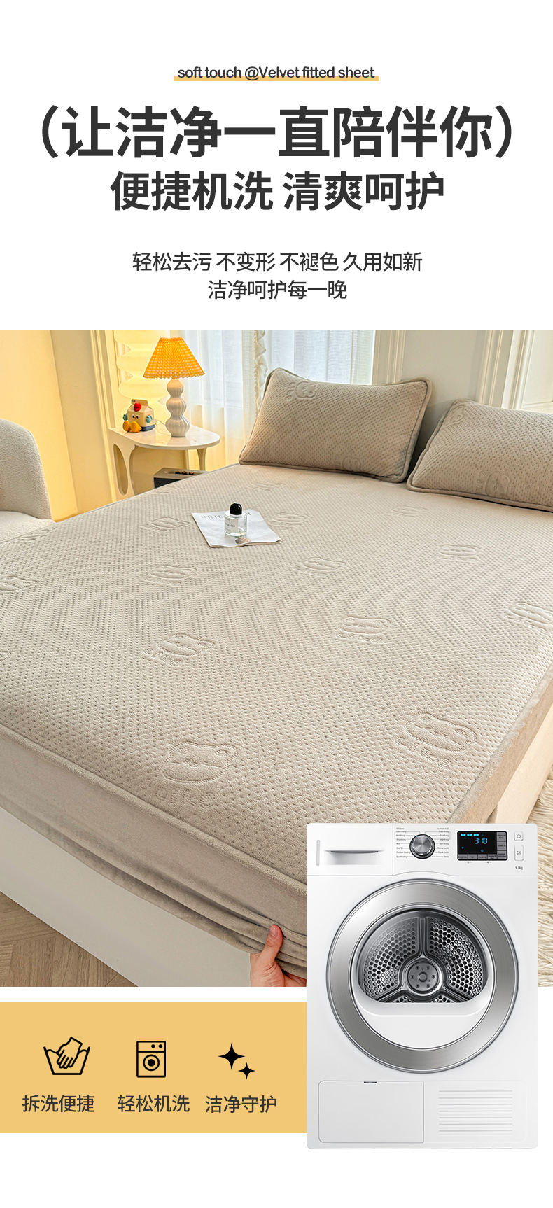 商品名称:居眠 2024新款牛奶绒超声波like小熊夹棉大豆床笠 Like熊-浅驼