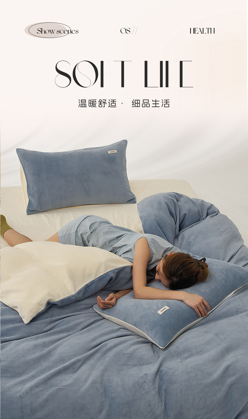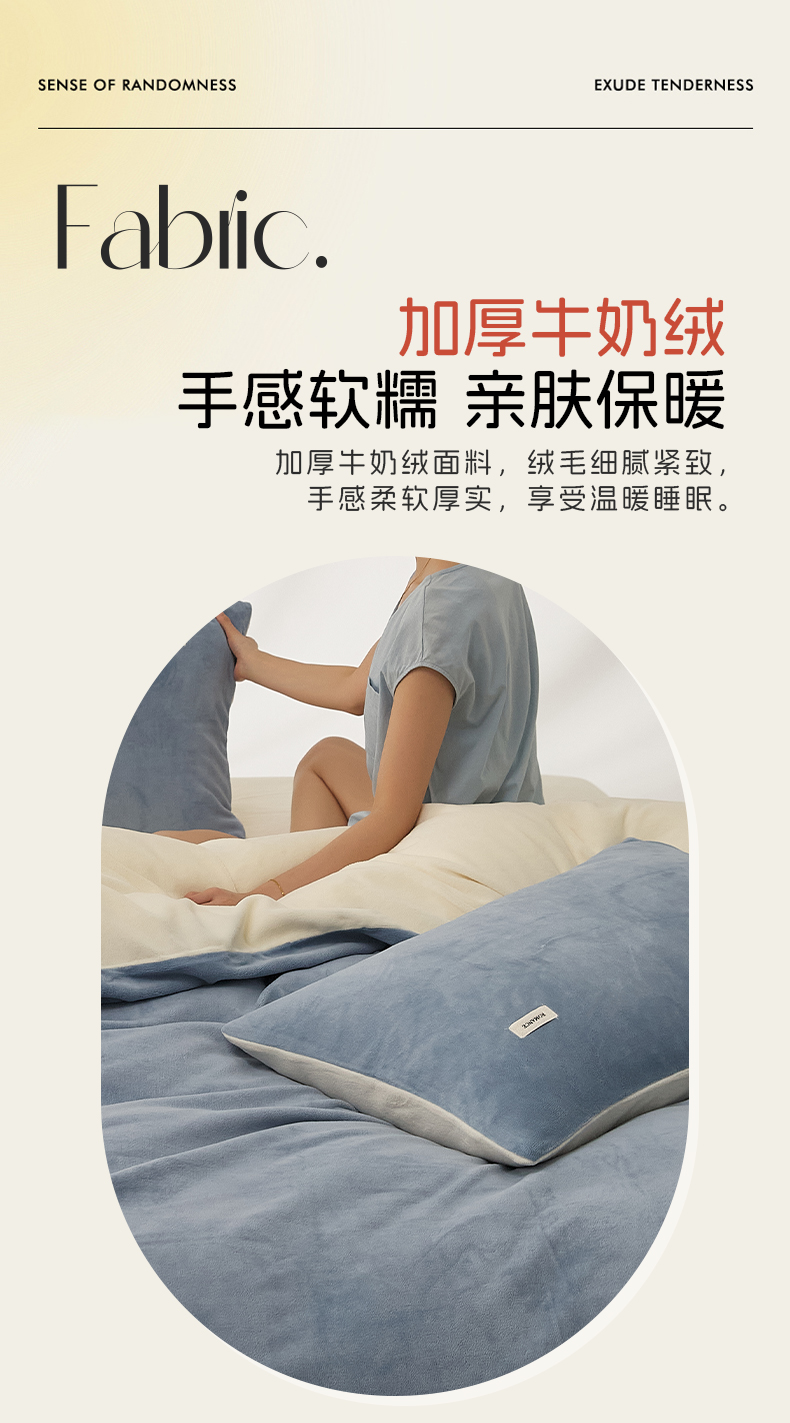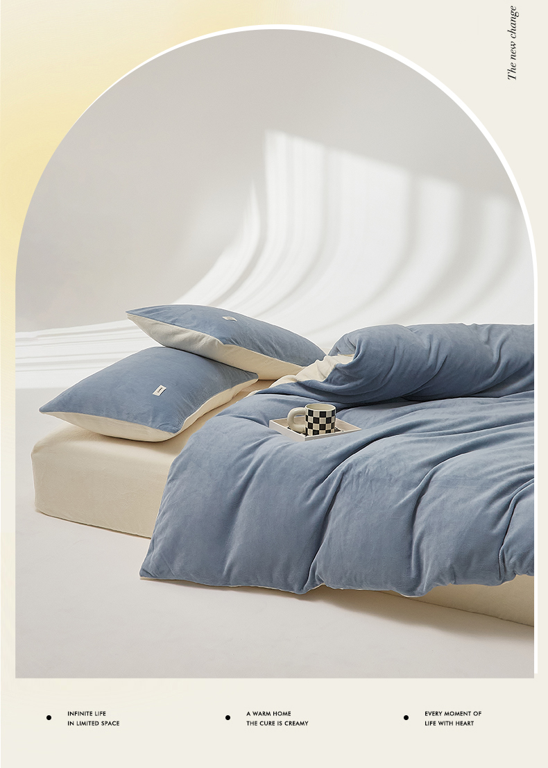 当前位置: 91家纺网 > 商品网购 > 床品套件 > 四件套 > 牛奶绒四件套 > 时光里 2024新款牛奶绒纯色双拼四件套 复古蓝拼奶白