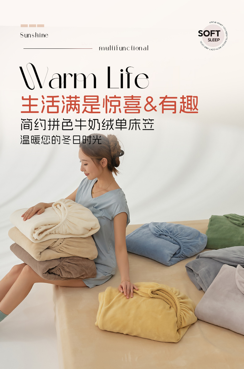 (总)时光里 2024新款牛奶绒纯色双拼单床笠