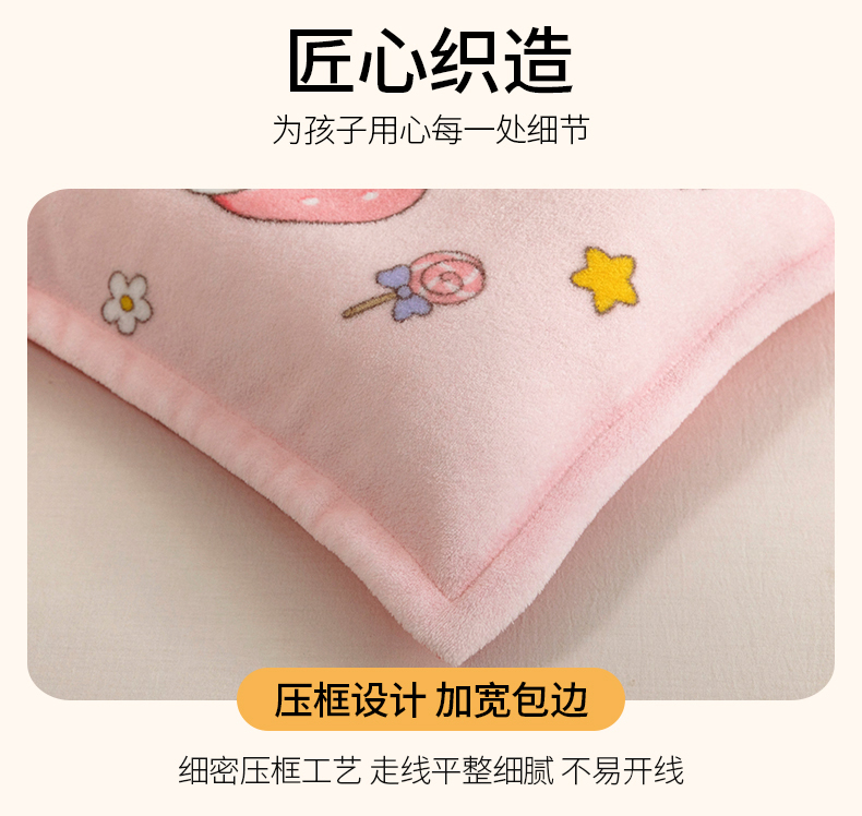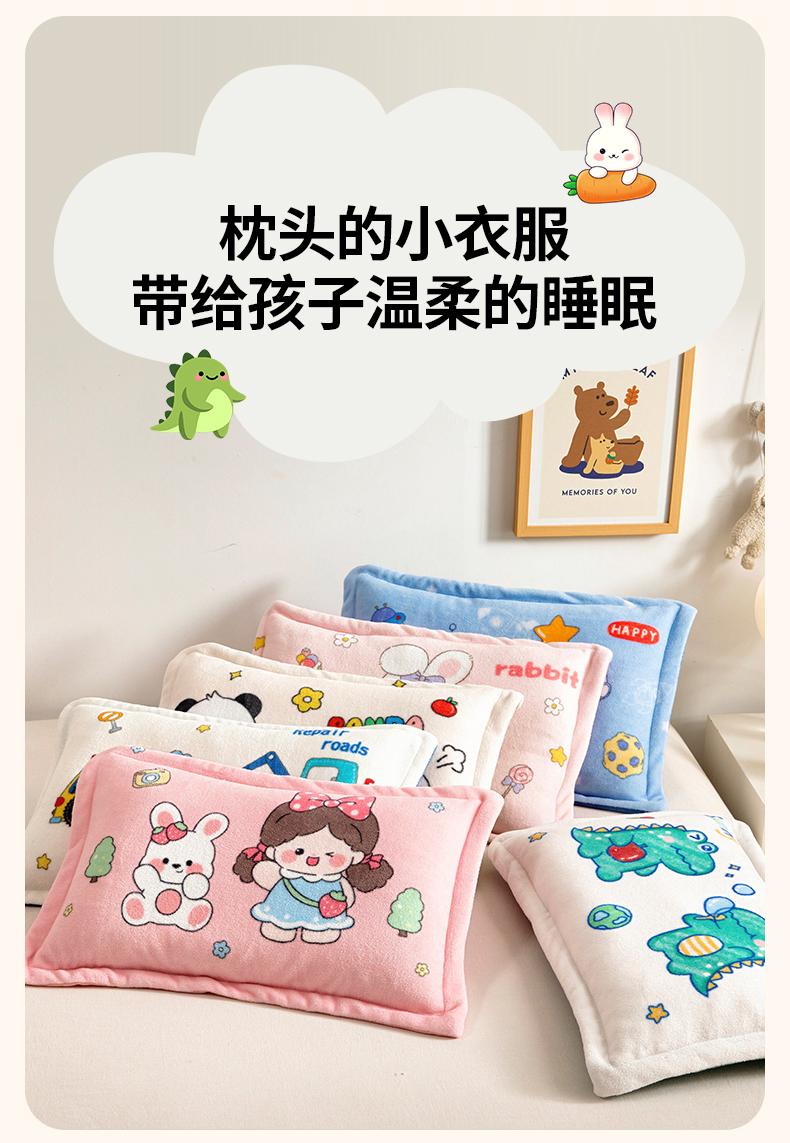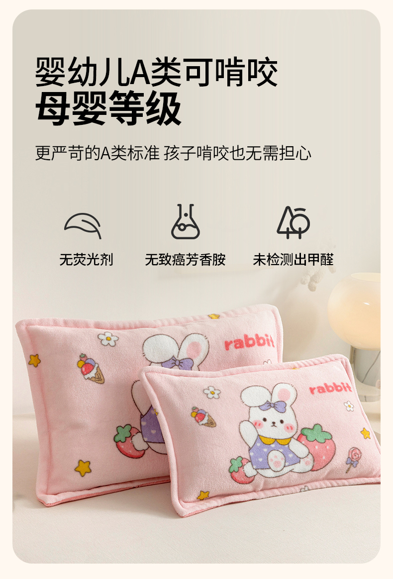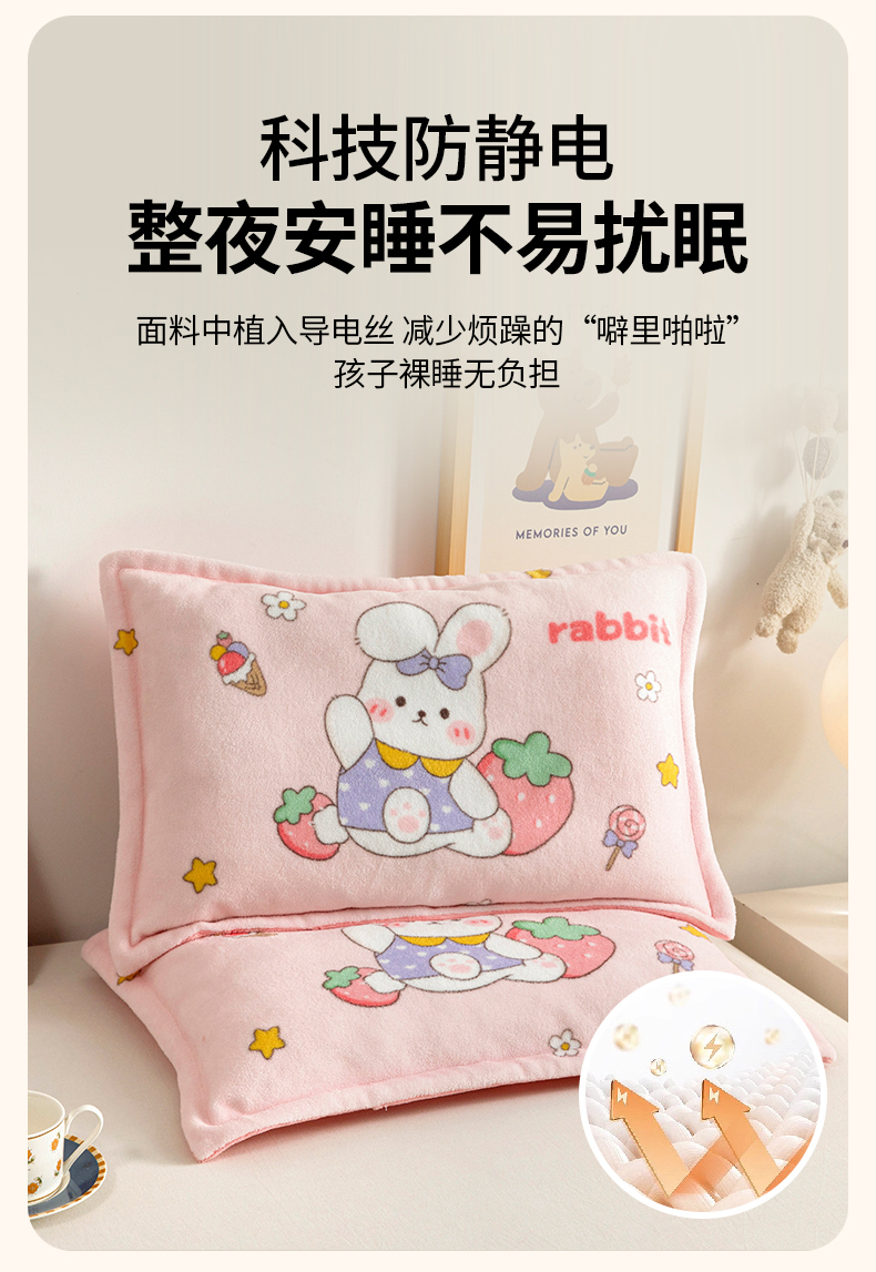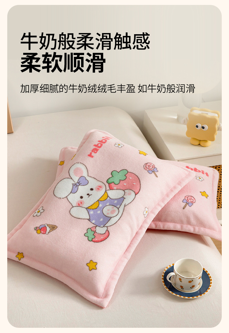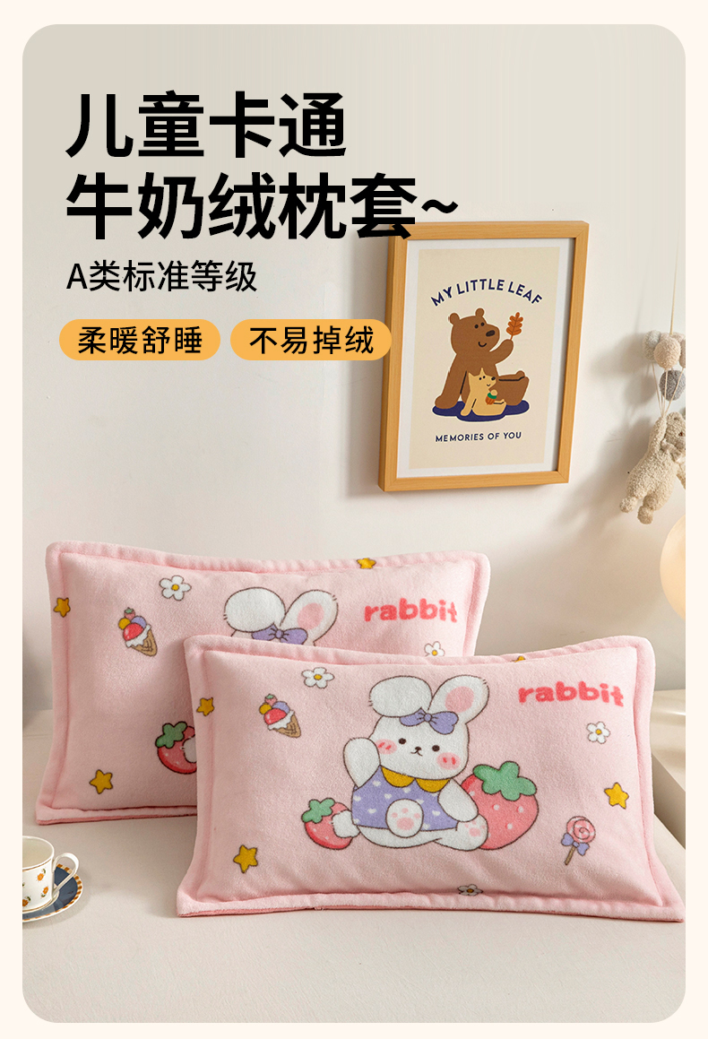 吉咪兔家纺 25年新款大版定位图案儿童卡通牛奶绒枕套加厚秋冬季宝宝枕头套幼儿园枕芯套 草莓兔子